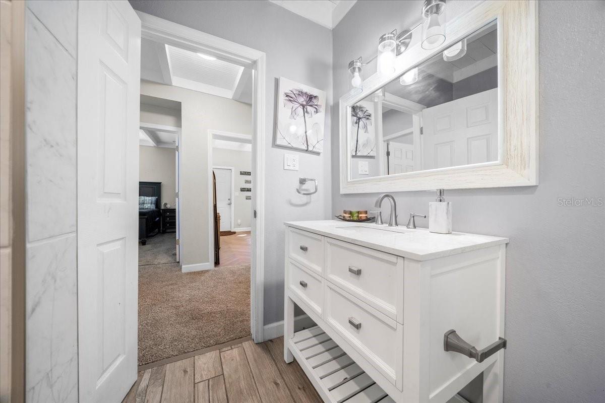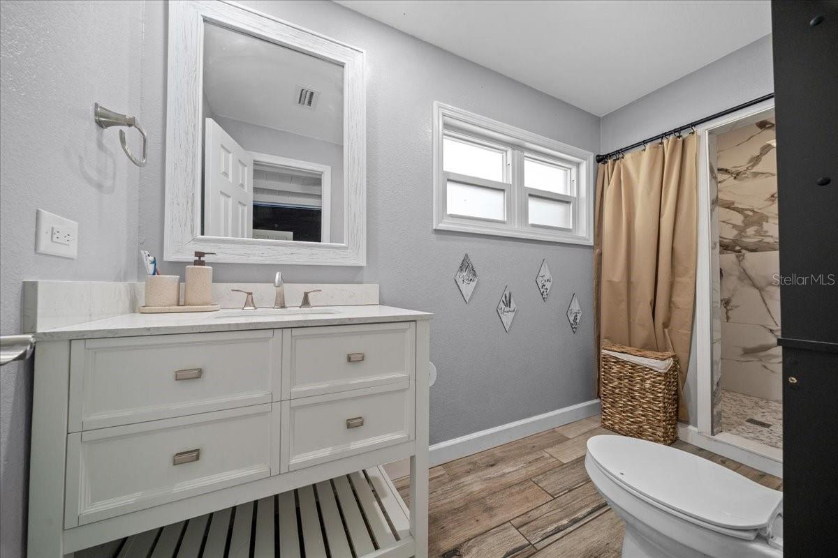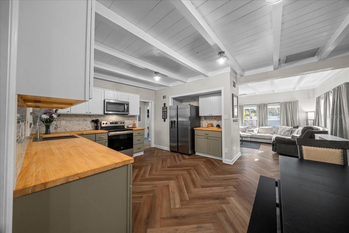 Welcome to this beautifully remodeled 3-bedroom, 2.5 bath home perfectly situated on a peaceful .39 acre lot just minutes from downtown Ocala, shopping, and restaurants. This home offers 1,359 square feet of main living space, plus an additional 680 square feet loft-style in-law suite above the home - giving over 2,000 square feet of functional living space. The attached in-law suite serves as the 3rd bedroom and half bath, complete with its own private entrance, making it perfect for guests, multi-generational living, rental potential, or a private home office. Completely renovated, this home offers peace of mind with a new roof, A/C, electric panel and water heater (all 2019) along with new plumbing, windows, doors, drywall, flooring, kitchen, bathrooms and appliances. Bright, open and full of natural light, this home offers a spacious main living area and thoughtful updates throughout. The property is completely fenced for privacy and peace of mind, with a vinyl fence in front and chain-link fencing around the remaining sides. Enjoy the quiet setting and convenient location - modern updates, flexible space and a serene atmosphere make this home the perfect blend of comfort and convenience.