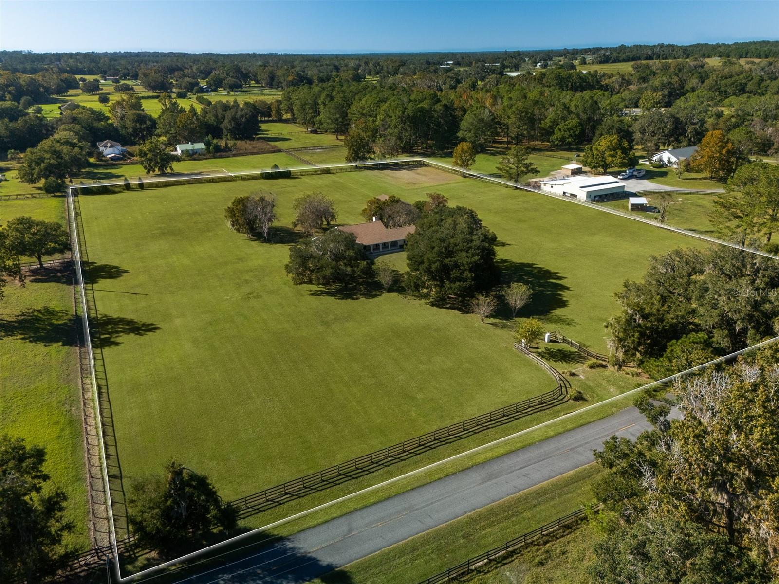 Just a 3-minute drive from Golden Ocala Country Club and less than 10 minutes from the World Equestrian Center, this 7+ acre farm is ideally located in the heart of Ocala’s horse country. A gated drive lined with majestic oak trees welcomes you to a 3-bedroom, 3 bathroom home featuring warm wood and tile flooring, large windows that fill the space with natural light, and scenic views of the surrounding landscape. The spacious kitchen offers ample room for cooking and entertaining, while covered front and back porches provide serene spots to relax and enjoy the outdoors. A two-car attached garage adds convenience, and equestrians will appreciate the 3-stall shed row barn with a tack room. Combining space, charm, and close proximity to equestrian amenities, this property is the perfect retreat for those seeking the best of country living in Ocala.