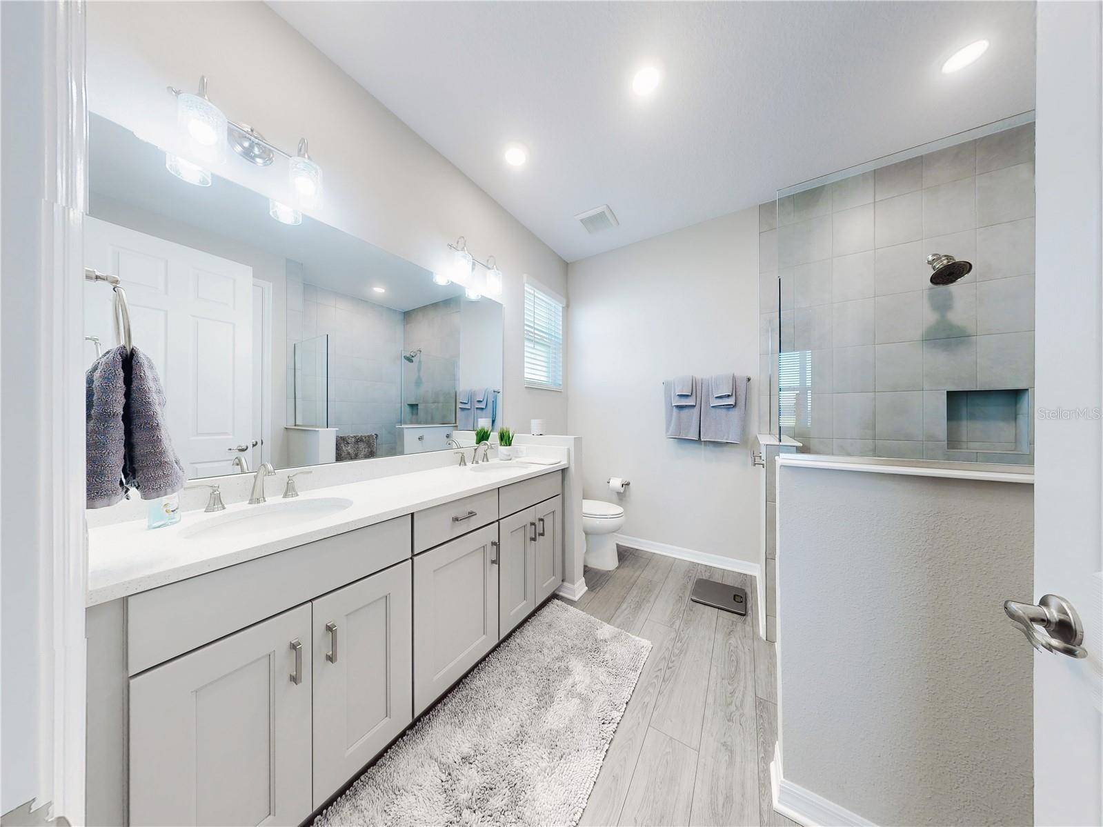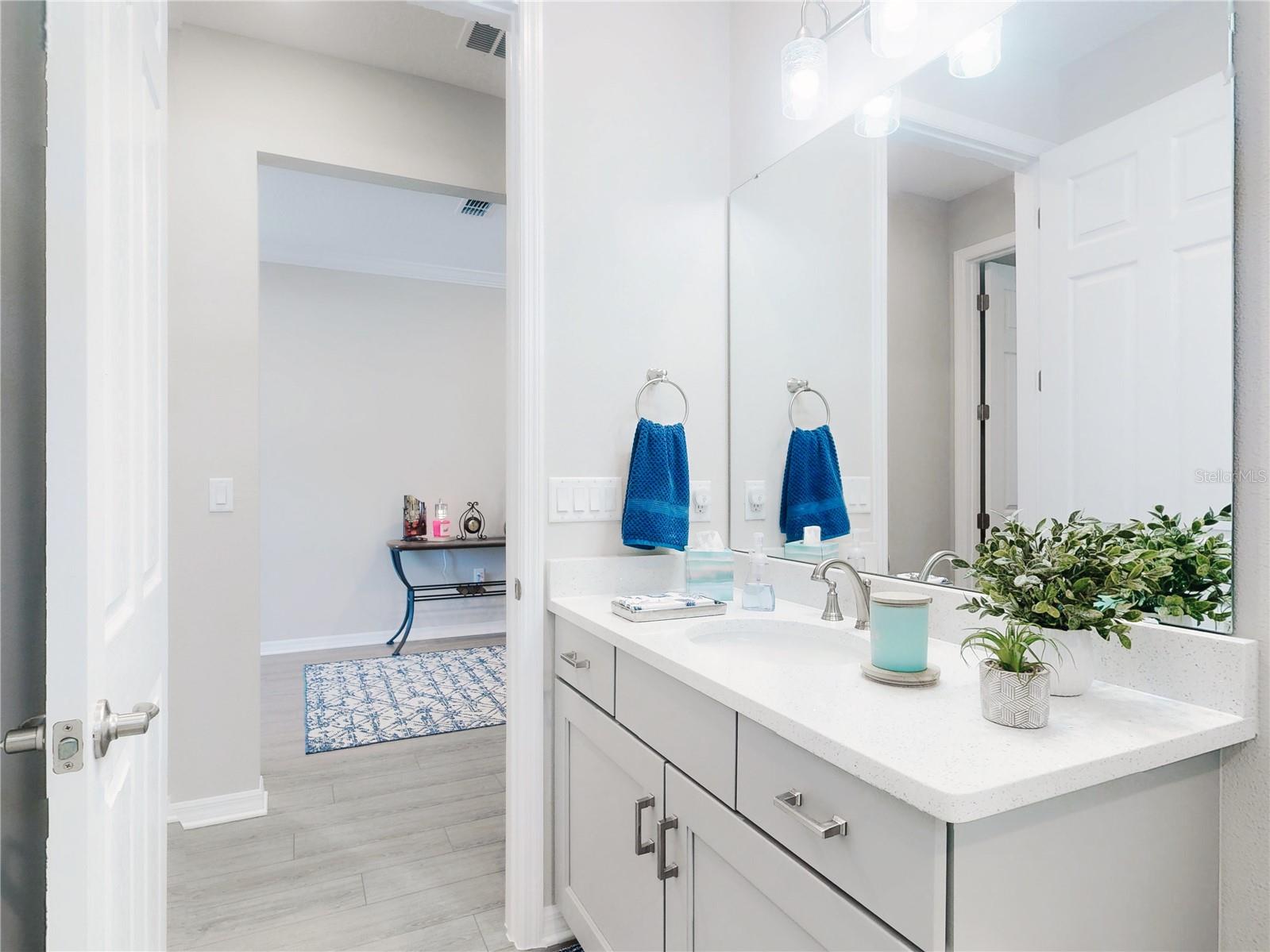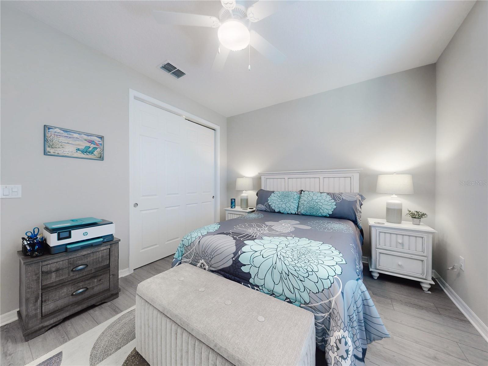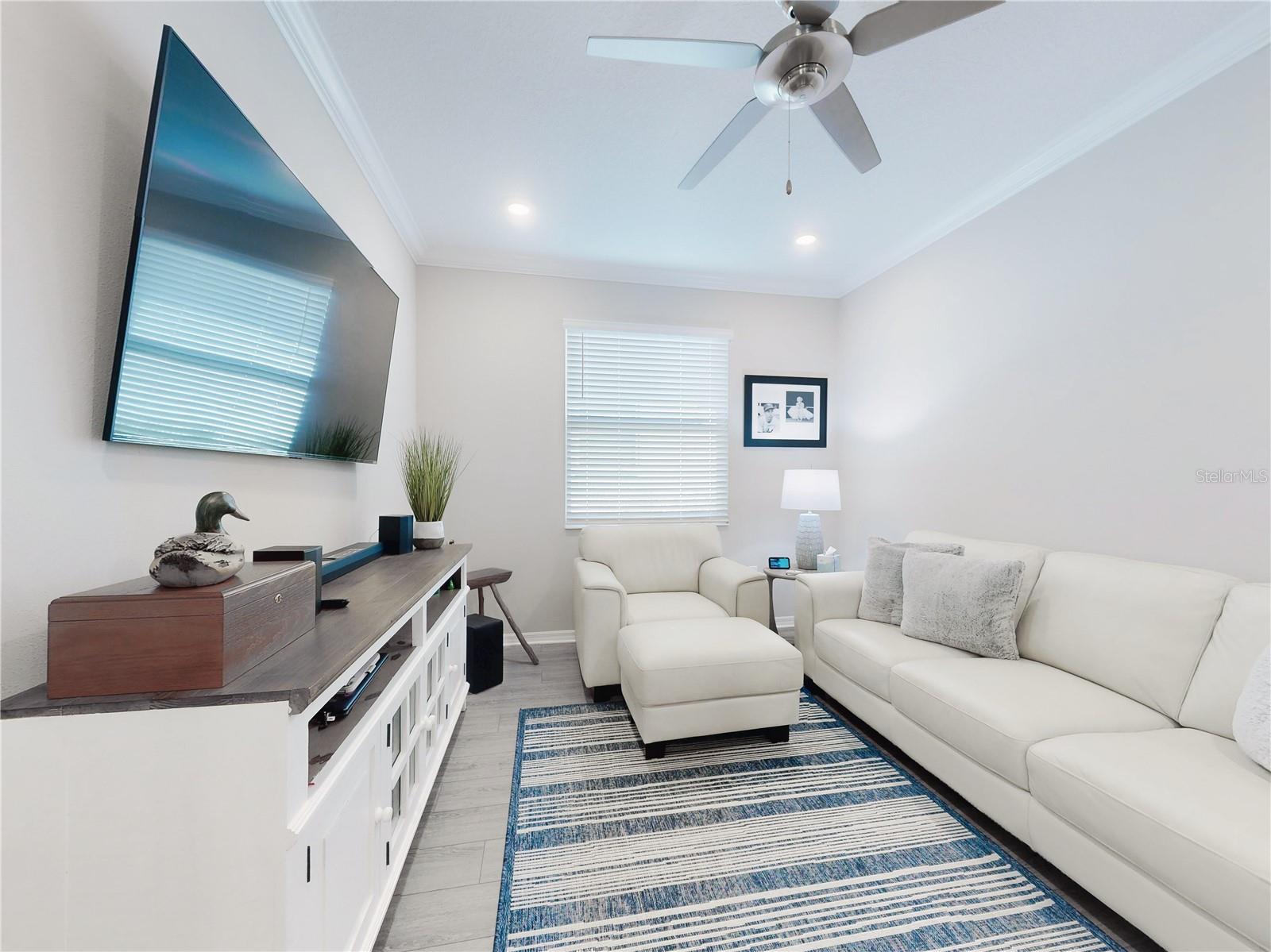 Discover refined living in this beautifully enhanced Ginger model home located in the highly desirable Weybourne Landing community. Furniture is included with a Full Price. This residence offers $74,000 in premium upgrades, exceptional blend of comfort, style, and functionality, featuring 2 bedrooms, 2 bathrooms, and a flex room ideal for a home office, craft space, or guest suite. Home offers window shades with 2" cordless blinds, The Great Room impresses with tray ceilings, crown molding, 8-foot interior doors, 9ft 4"ceilings throughout, and luxury vinyl plank flooring throughout, creating a seamless flow. The chef’s kitchen showcases staggerd cabinets 36 and 42 inch uppers, quartz countertops, Breakfast Bar, stone backsplash, under cabinet lighting, upgraded soft-close cabinetry, a five-burner gas range, French-door counter-depth refrigerator, Kitchen upgraded with Kitchen Aid stainless steel appliances. The Primary Suite offers a private retreat, custom closet system, and a spa-inspired bathroom featuring a quartz dual vanity with oval undermount sinks and an upgraded walk-in shower with built-in seat. The guest bedroom and secondary bath offers a walk-in shower to provide both comfort and style for family or visitors. Relax and entertain year-round in the enclosed, covered, and screened lanai with a 24-inch masonry knee wall offering privacy and comfort. Lanai also offers natural gas to outside grill. Additional highlights include widened driveway to corner of garage with a 2 ft extension added to garage, outside coded garage door opener, water softener. Interior laundry room with cabinetry, washer and dryer. This property offers a serene backyard setting with no neighboring homes behind, backing to a natural dry pond area that enhances privacy and openness, added features, perimeter lighting, irrigation system, ring door bell. This home is truly move-in ready, showcasing high-end finishes and meticulous attention to detail—an exceptional opportunity to enjoy the best of Weybourne Landing living. Furniture is negotiable, golf cart is for sale, has upgraded Lithium battery with wall mounted charger (1 yr. old). Residents enjoy a clubhouse, pool, fitness center, pickleball courts, and with a Gateway Pass, access to all On Top of the World amenities.