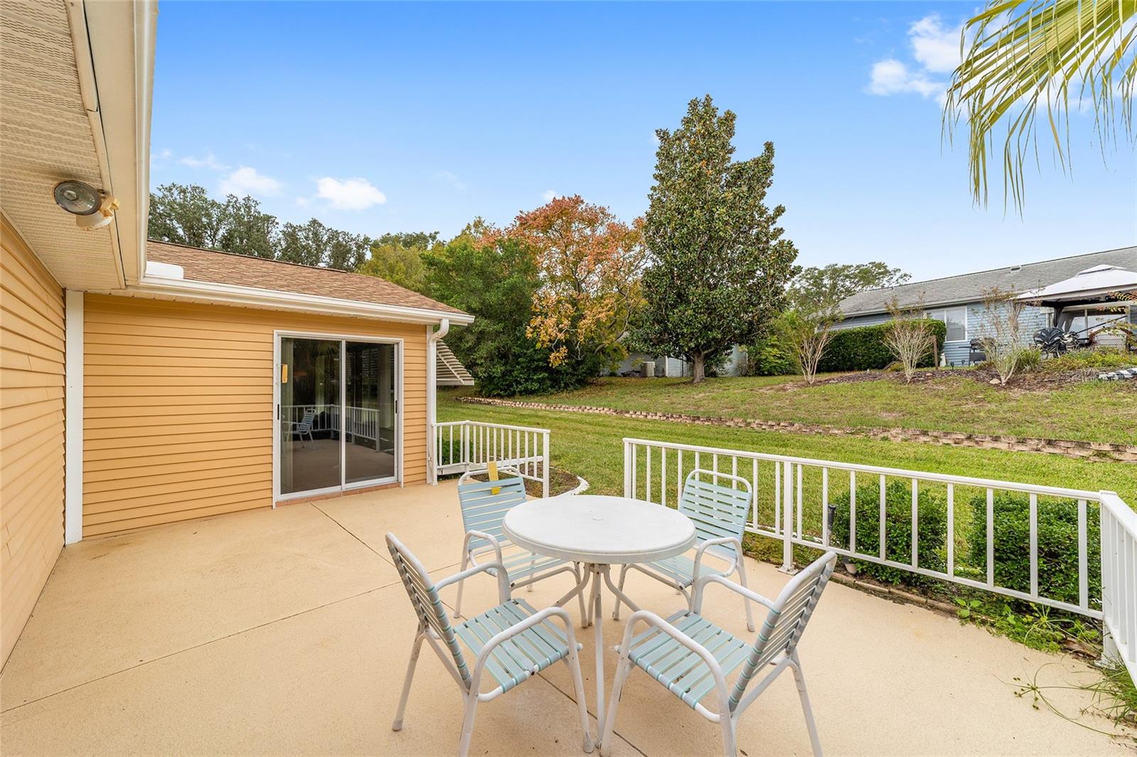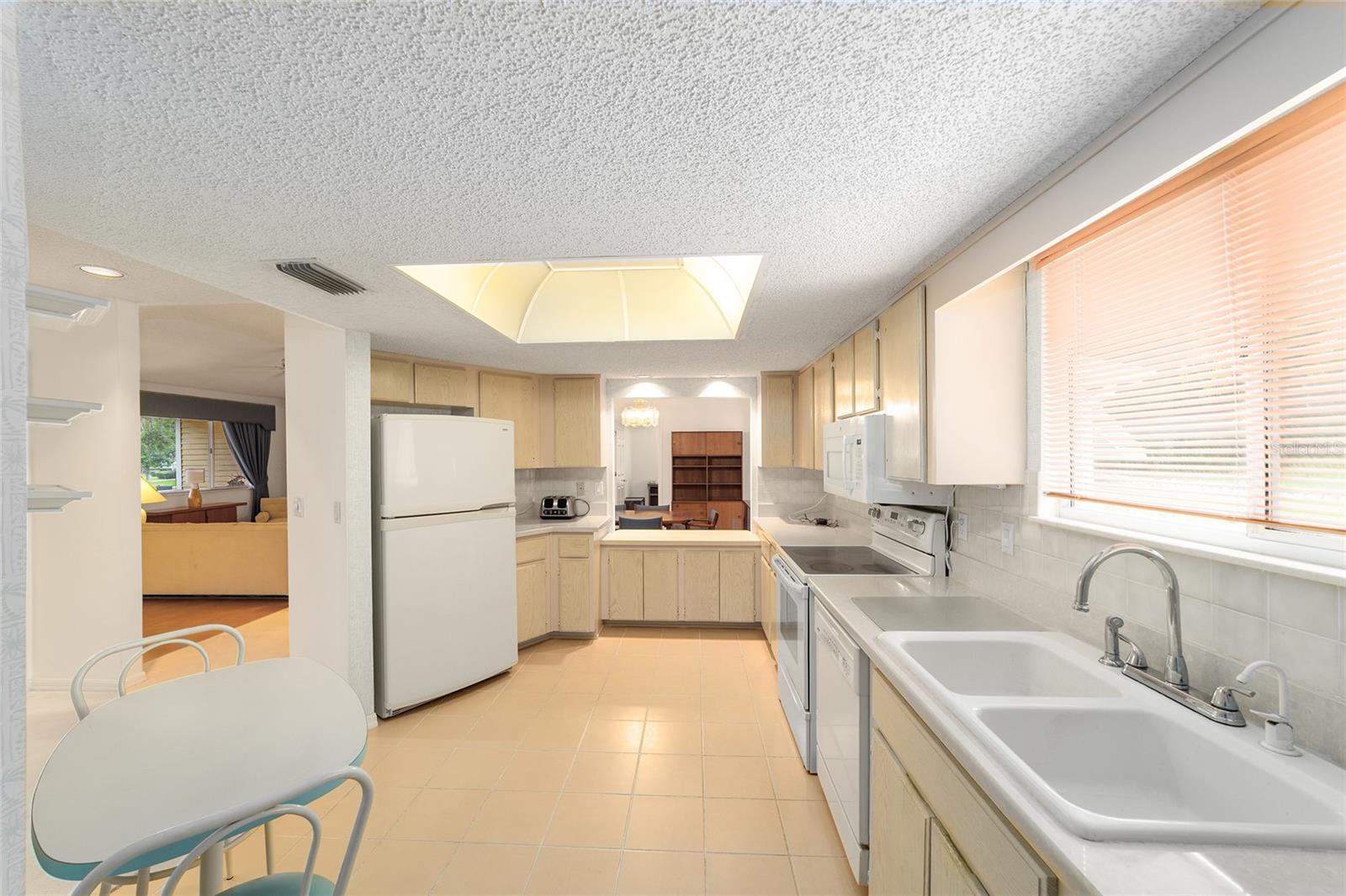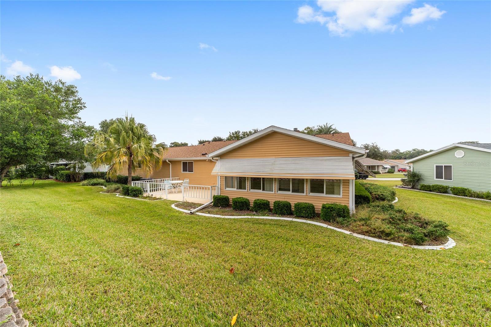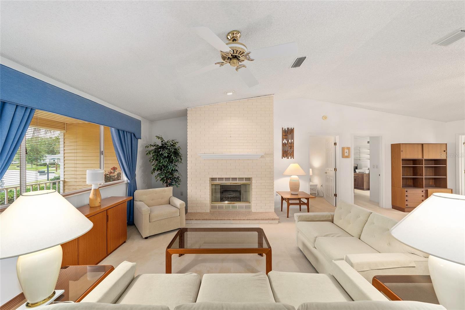 Discover active, carefree Florida living in this beautifully maintained home with pride of ownership located in the gated 55+ Oak Run golf course community. With a newer roof (2021) and A/C system (2021) already in place, this 3-bedroom, 2-bath residence offers peace of mind and timeless charm. Nestled on a lush, landscaped lot, the home welcomes you with mature greenery and a paver-lined driveway that adds instant curb appeal. Step inside to discover an open, versatile floor plan featuring cathedral ceilings, a light and bright neutral palette, and a striking floor-to-ceiling brick fireplace ready for cozy evenings or relaxed entertaining. The eat-in kitchen is both functional and inviting, offering generous cabinet and counter space, a decorative tile backsplash, and a convenient pass-through to the dining area for easy hosting. The owner’s suite features a walk-in closet and a private en suite bath, and two guest rooms offer flexible space for visitors or a hobby room. Guests also enjoy a private bathroom with its own water heater, so long showers and daily routines stay uninterrupted. Enjoy the comfort of a builder-installed enclosed lanai, a versatile space ideal for morning coffee, peaceful afternoons, or gathering with friends and family. Overlooking a generous patio, this inviting area extends your living space and can be enjoyed throughout the year. With a programmable irrigation system for landscaping care, Danish furnishings available for purchase, and an included washer and dryer, the home is well-equipped for easy, low-maintenance living. Enjoy a vibrant lifestyle with Oak Run’s exceptional amenities, including casual and fine dining options, an 18-hole golf course, fitness center, tennis courts, multiple pools, and a wide variety of clubs and activities. Oak Run’s low monthly service fee covers sewer, garbage, and basic cable services. Plus, you’ll love the central location just minutes from shopping, medical facilities, parks, and so much more!