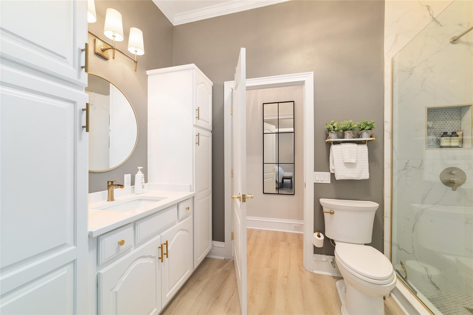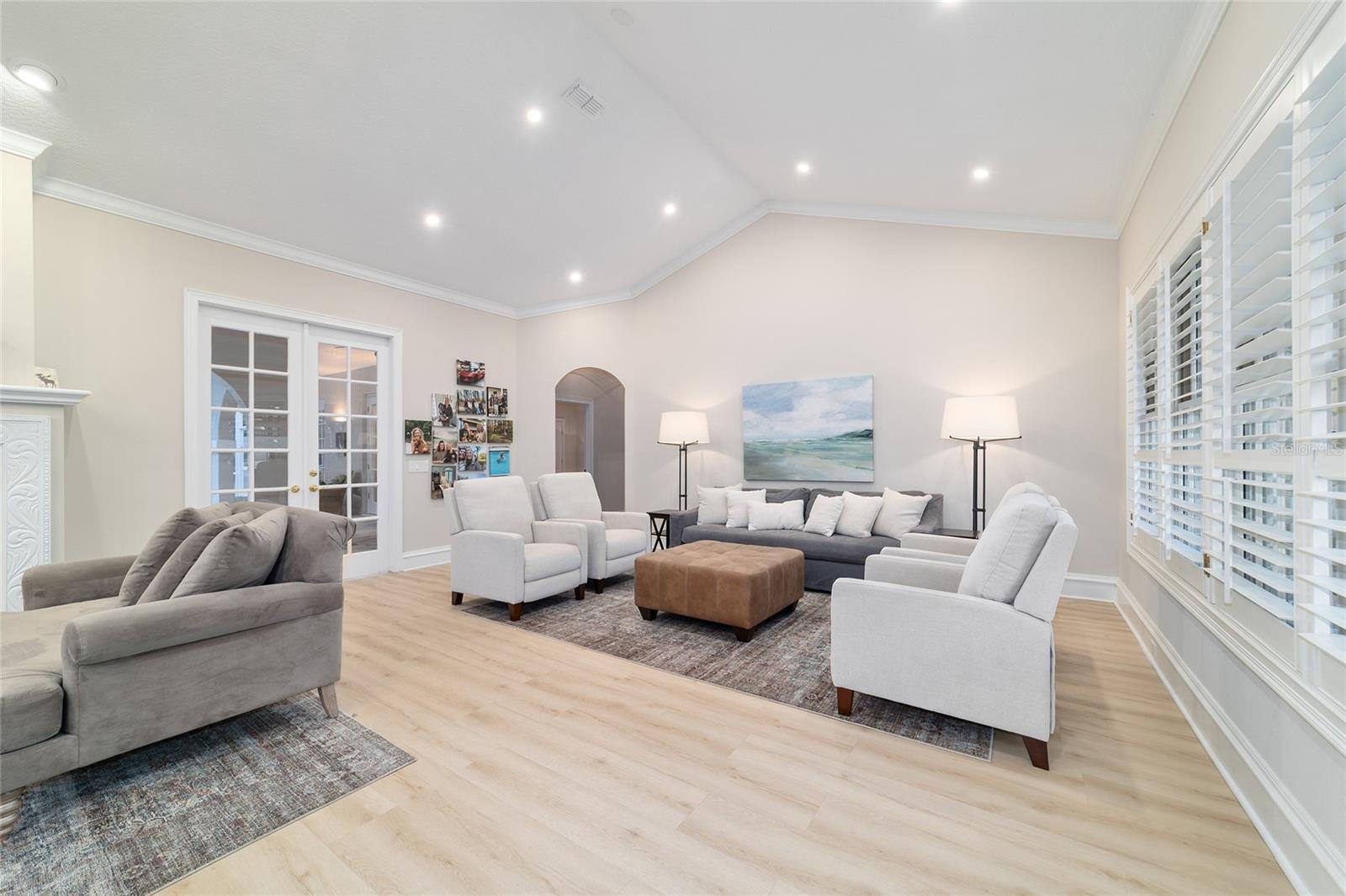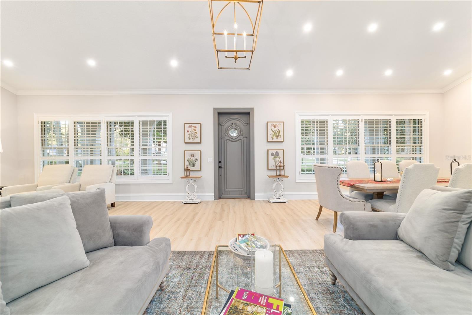 Welcome to this beautifully updated 4 bedroom, 3 bath home in the Country Club of Ocala, which backs up to a peaceful farm offering plenty of privacy. From the moment you pull up, you’ll notice all the care that’s gone into it — fresh exterior paint, new shutters and new pavers that lead from the driveway to the front porch. The backyard is truly the highlight, with a sparkling refinished pool surrounded by new pavers, plenty of covered space to sit and unwind and soft lighting from wall lanterns and ceiling fans that make evenings outside extra cozy. Inside, the home feels warm and welcoming with fresh paint, new blinds and thoughtful touches throughout. The kitchen has been completely updated with new stainless steel appliances (added in 2024), a farmhouse sink, new cabinet doors with stylish hardware, and two glass front cabinets that add just the right amount of charm. The family room and dining room flow together seamlessly, creating one large, open space with cathedral ceilings that make the home feel bright and airy. A wood-burning fireplace sits beautifully between the two areas and has a comfortable sitting area in front of it. The master suite feels like your own little retreat, featuring a gorgeous remodeled bathroom with a brand new shower with new tile, new double vanity, shiplap walls and an added transom window that brings in natural light. Home has split bedroom plan with one bedroom having its own bath and the other 2 bedrooms sharing a jack and bill bath. Both guest bathrooms have also been updated with new tiled showers and modern fixtures, so everything feels fresh and new. Even the practical details have been taken care of: the roof was replaced in 2023, the air conditioning system (including a mini split in the garage) and both water heaters were replaced in 2024 and the 3 car garage now has ceramic tile flooring. Every corner of this home has been given attention, and it truly shows. It’s beautiful, comfortable, and completely move-in ready — a place where you can settle in and start enjoying the good life in one of Ocala’s most desirable communities.