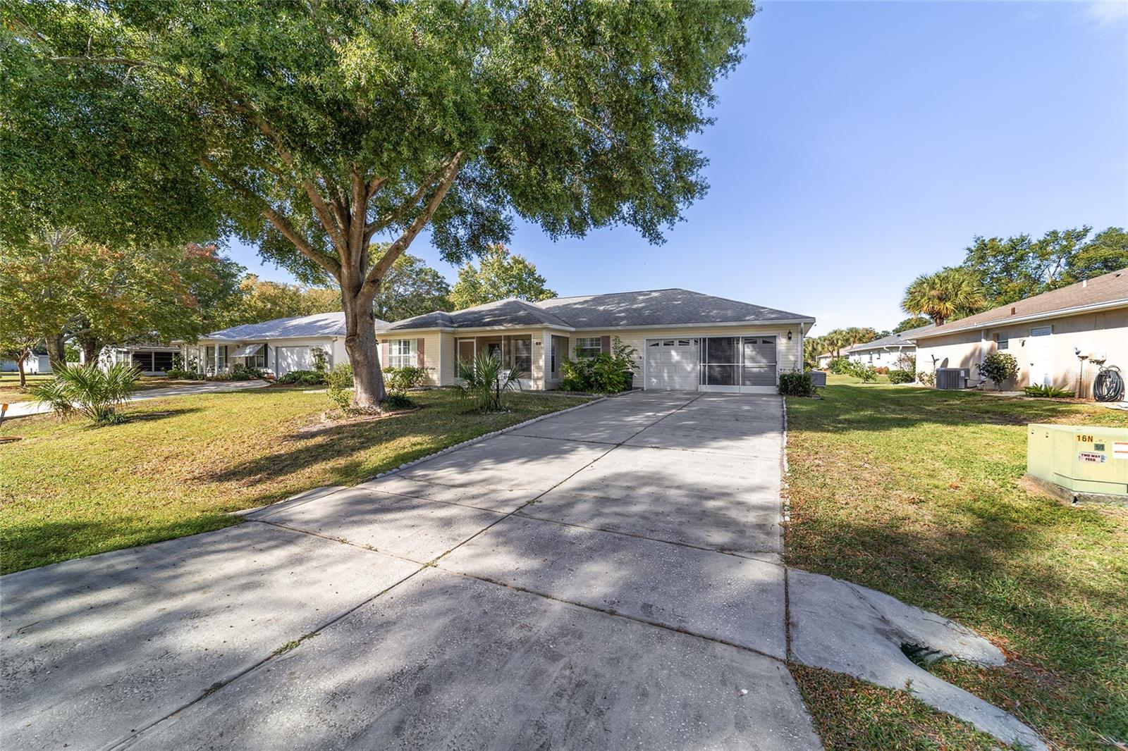 One or more photo(s) has been virtually staged. 55+ community • 2021 roof • Bonus/flex room • Screened front entry • Screened garage door enclosure • Vinyl siding with shutter accents • Updated flooring • Granite counters • Pantry • All bedrooms carpeted • Oversized 2-car garage • Low $175 monthly HOA • RV/boat parking • Heated pool & spa • Bowling alley • Fitness room • Tennis & shuffleboard • Near shopping, dining & medical facilities This single-story home offers 1,808 sq ft of heated living space (2,228 sq ft total) on a 0.17-acre lot in Marion Landing, a 55+ community with extensive amenities in SW Ocala. The exterior includes vinyl siding with shutter accents, a screened front entry, concrete walkway to the front door, shrub and palm landscaping, a mature shade tree, and an extended driveway. A screened garage door enclosure provides ventilation and shade while maintaining visibility and privacy. The 2021 roof contributes to long-term durability. Inside, the open layout features a vaulted ceiling, neutral interior paint, and wide-plank waterproof vinyl flooring throughout the main living areas. An arched passthrough leads to a spacious bonus/flex room that can support office needs, hobby use, entertainment, or additional seating. Natural light enhances the overall interior function and design. The kitchen includes granite countertops, mosaic tile backsplash, matching stainless appliances (refrigerator, range, microwave), tile flooring, and pantry storage. A split bedroom layout supports privacy. All bedrooms feature carpeted flooring, and the primary suite includes a tray ceiling, walk-in closet, granite vanity, and a step-in shower with grab bars. The guest bath also includes a grab bar at the shower. The oversized 2-car garage includes the laundry closet with shelving and additional room for storage. The screened garage door enclosure allows airflow and functional shade while maintaining the ability to fully secure the space. Marion Landing amenities include a Lifestyle Center clubhouse, heated swimming pool, spa patio, fitness room, craft rooms, billiards, an eight-lane bowling alley, tennis courts, shuffleboard, bocce, basketball, and a stocked fishing pond. RV/boat parking is available within the community. The low $175 monthly HOA fee includes water, sewer, trash service, and full access to all amenities. Nearby destinations include Paddock Mall (2.2 mi), Market Street at Heath Brook (2.4 mi), and HCA Florida West Marion Hospital (3.1 mi). Quick access to I-75 provides direct routes to Orlando International Airport (MCO) and Tampa International Airport (TPA). Virtual tour available.