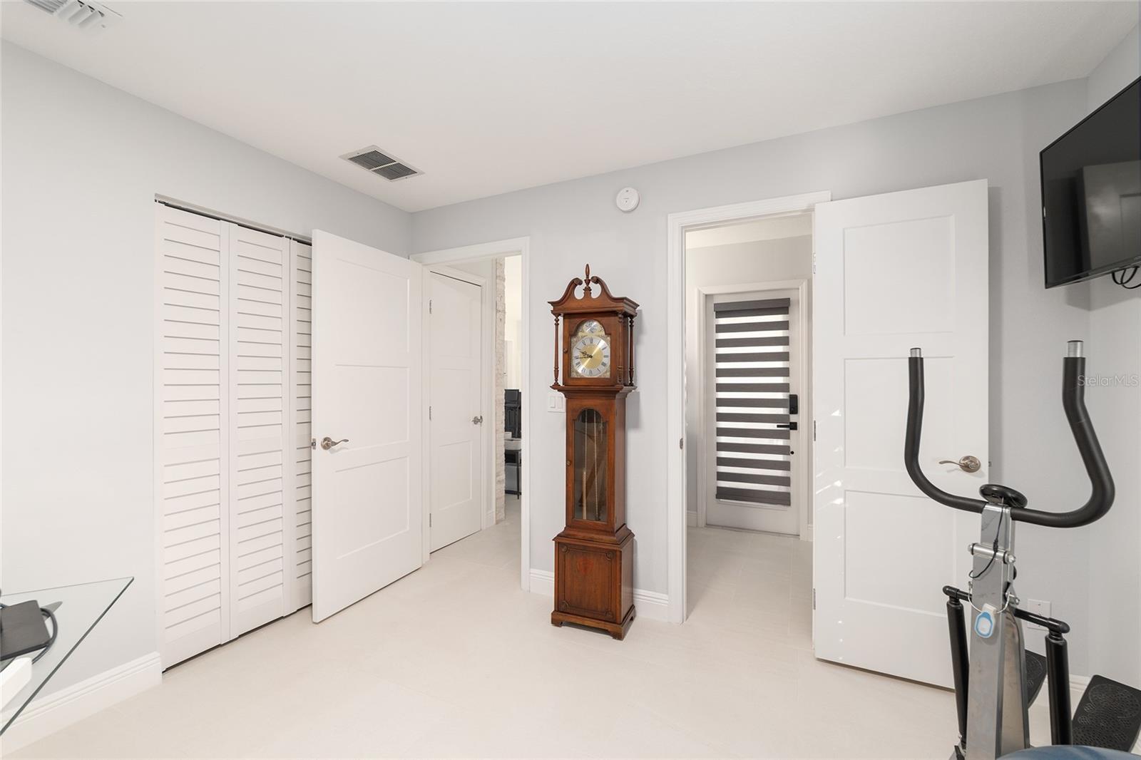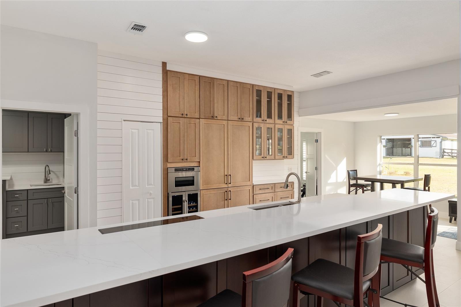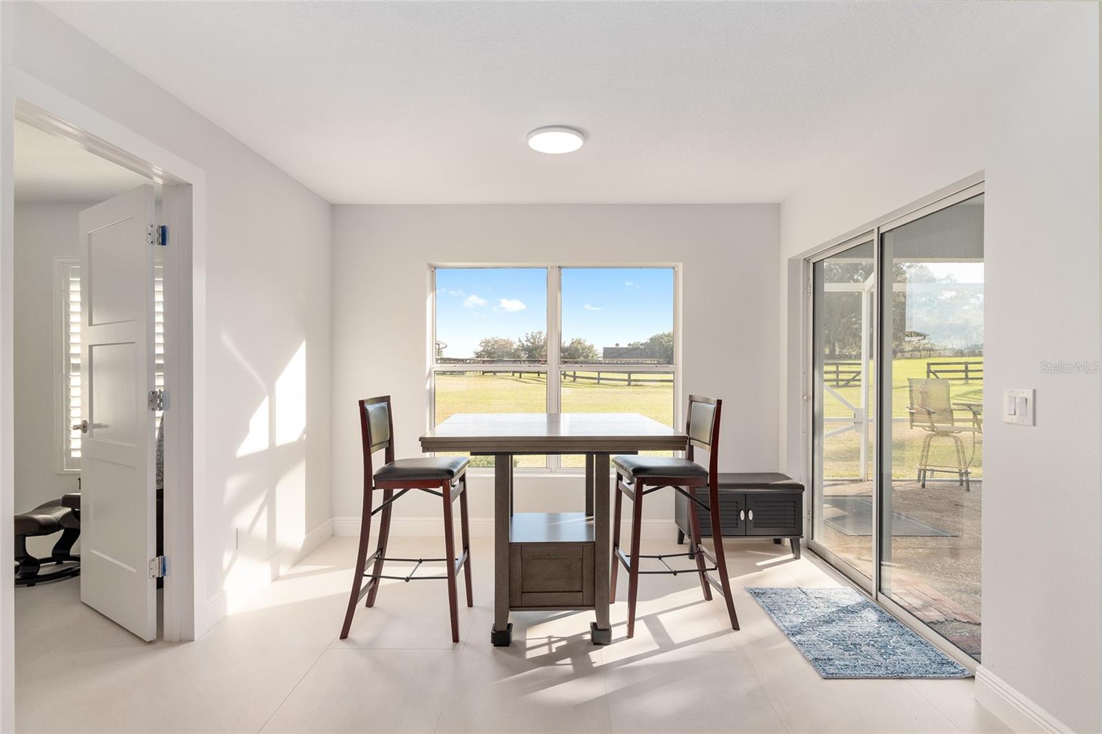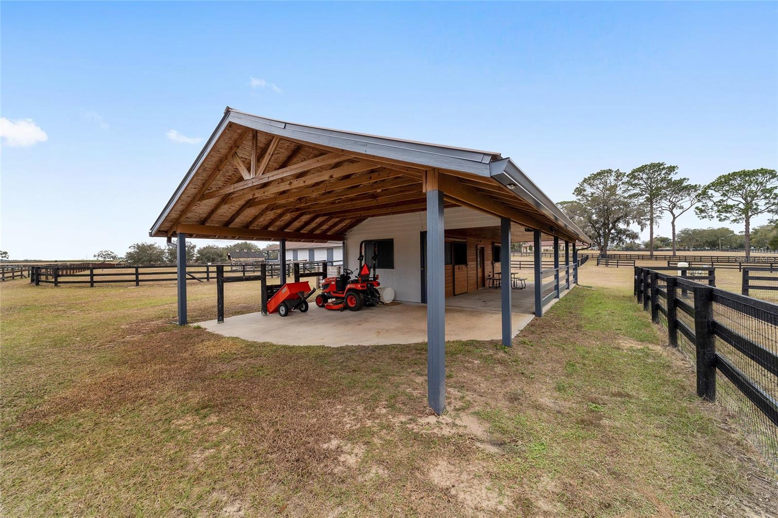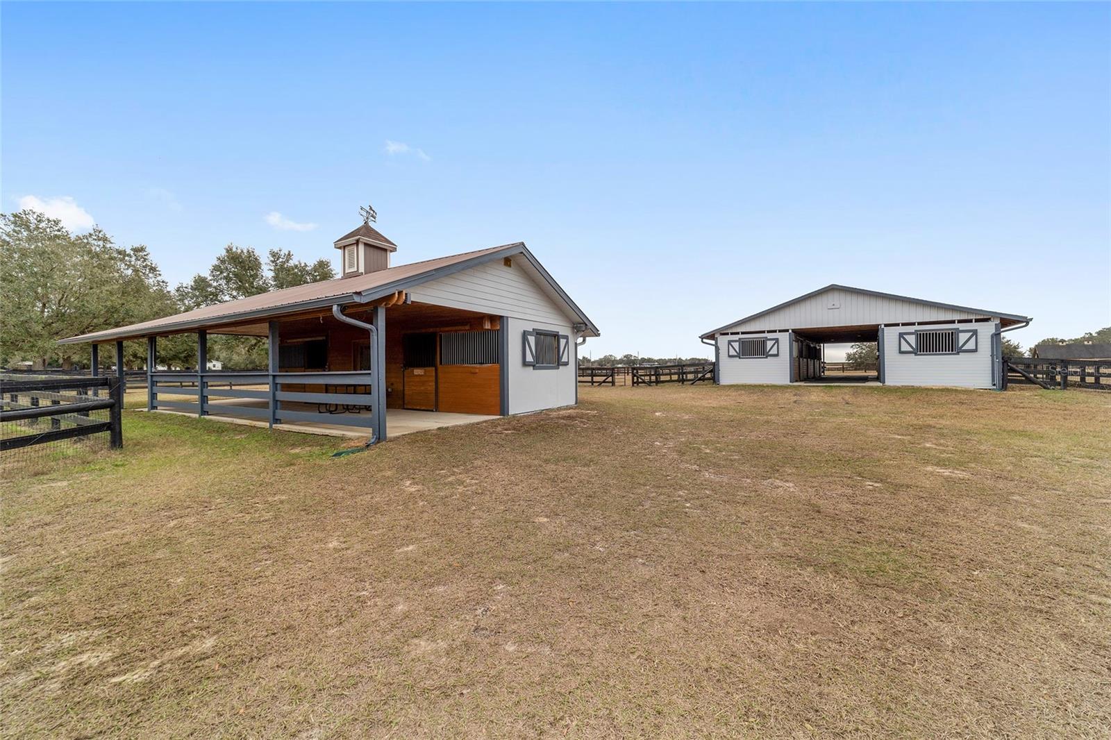 This beautiful 6+ acre farm is located just minutes to WEC, in the gated community of Saddelbrook Equestrian Park. The community provides the perfect place to live your equestrian dream including a beautiful bridle path around the community for endless riding opportunities. This beautifully updated farm welcomes you with its grand gated entrance and circular driveway. The delightful home was just completely renovated and updated with all new finishes, large format tile throughout the home, new wall of cabinets in the kitchen, walk in pantry and a 14 foot island that can seat 8 with double sided cabinets for tons of storage. Quartz countertops in the kitchen, baths and laundry. New appliances with 48” built in refrigerator, beverage and wine cooler, and induction stove top. Master bath is a true spa experience with a 3 person sauna and large walk in shower with room for 2 shower heads and floor to ceiling shower glass walls. Master bedroom has 2 large walk in closets and all 4 bedroom closets have new built in shelving and storage. New washer and dryer in the laundry room with full built in utility cabinets. Plantation shutters and solid wood 3 panel doors throughout. You will fall in love with the light and bright, open floorplan. The home also has a separate office/den space and lovely screened patio overlooking the farm landscape. Your horses will also enjoy all of the comforts of the 7 stall center-aisle barn features auto water in each stall, fly spray system, tack and feed rooms, and also provides a covered area for equipment storage. The farm also features a second 2 stall barn complete with a nice tack room and oversized stalls. The acreage is fenced and currently has 4 large paddocks with plenty of room to add an arena if desired. Don’t miss this one of a kind property and experience the Florida horse lifestyle!