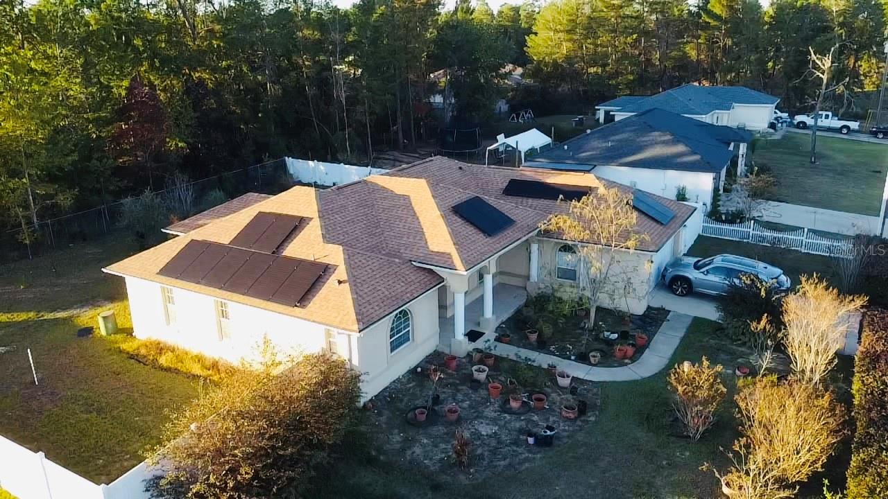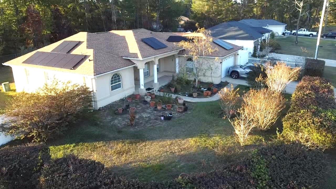 One or more photo(s) has been virtually staged. Custom built home with 2 large bedrooms, two large bathrooms plus a half bath in Marion Oaks Subdivision of Ocala Florida. The home has a functional garage door, but has a wall inside as it was originally been used as a sales office by the builder. There are closets inside and tile flooring so it can easily be used as another bedroom. Also new roof in 2023.Come see the two large bedrooms one with a jacuzzi tub, walk-in shower and double sinks. The other with a custom soaking tub and walk-in shower. Both bedrooms have walk-in closet. there is an added half bath for your guests which is very rear in these homes. Enjoy an inside laundry with storage cabinets, tiles in the garage and a side door. There are no carpet in the home. The primary bedroom has bamboo flooring, laminate through the rest of the house and tiles in kitchen and bath and washroom. There is a separate dining room, large family room and a breakfast bar. Also all wooden kitchen cabinets. A large screened in back porch with tile flooring all with a large back yard with fruit trees and fenced in. This is a one of a kind house all close the Ocala's amenities and just minutes from Ocala World Equestrian Center. DON'T MISS THIS ONE!!