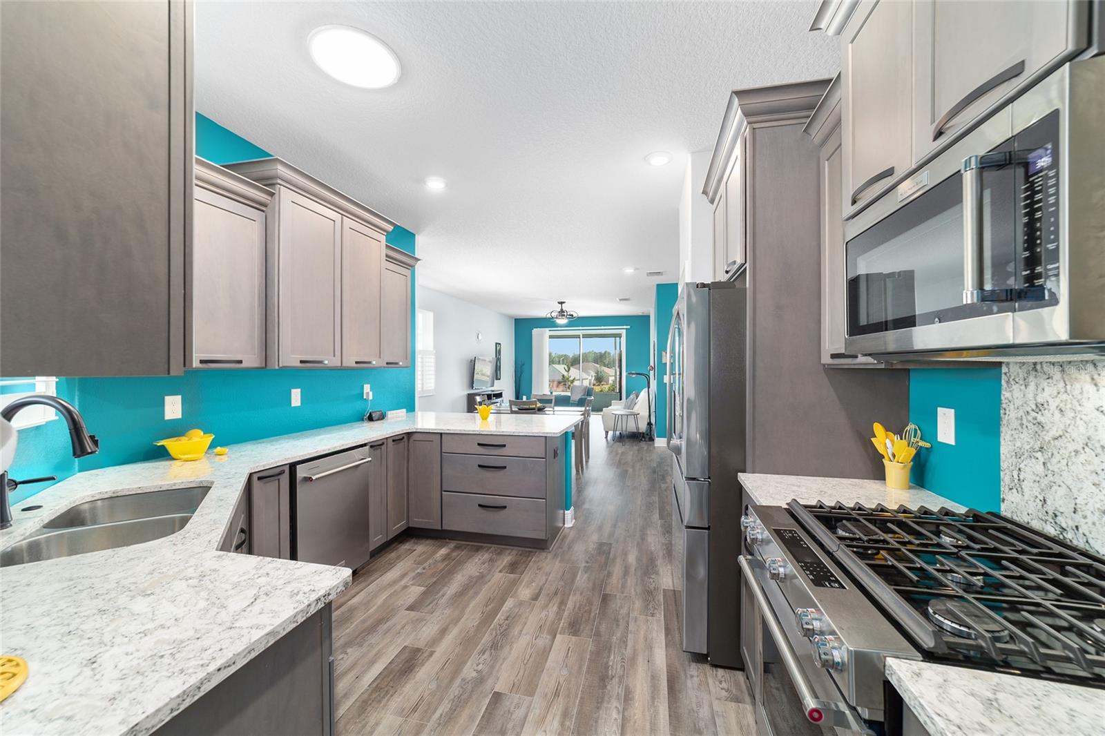 This beauty is located in LongLeaf Ridge in On Top of the World! Practically brand new Luxury Home with so many upgrades! This 2-year-old home has only been lived in a couple months. The oven has never even been used! When you enter this home you will immediately notice is has been lovingly and meticulously maintained. This Oren model residence features an open floor plan with luxury vinyl flooring throughout, plantation shutters, and an upgraded elevation package. Enjoy a chef's kitchen with gas cooking, granite countertops, all appliances included and a lovely bar area. The spacious master suite boasts a walk-in shower and ample closet space. Exceptional upgrades include a brick-paver driveway and walkway and custom tile in the master shower. Turnkey, move-in ready and designed for comfort and lasting value. Schedule your private tour today to experience this beautiful Oren model.