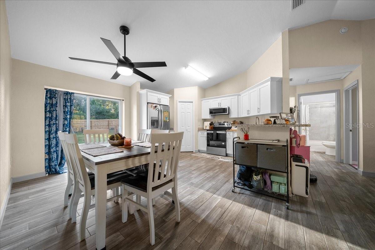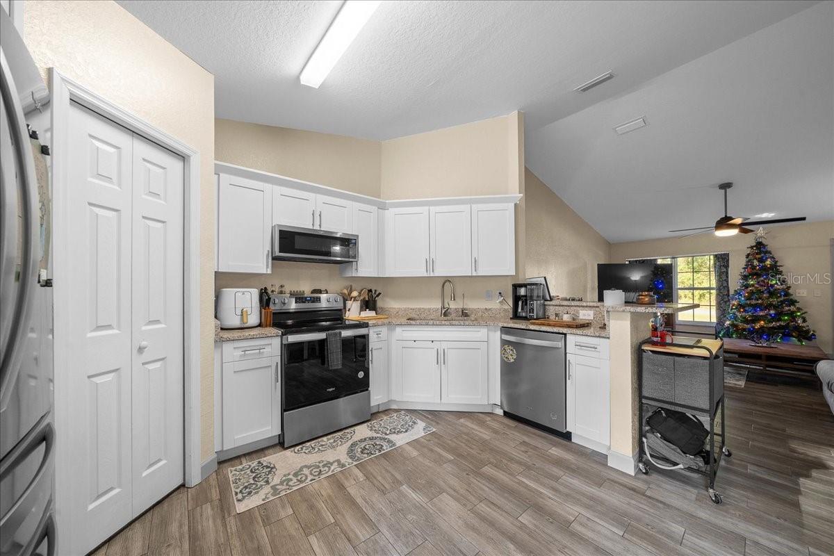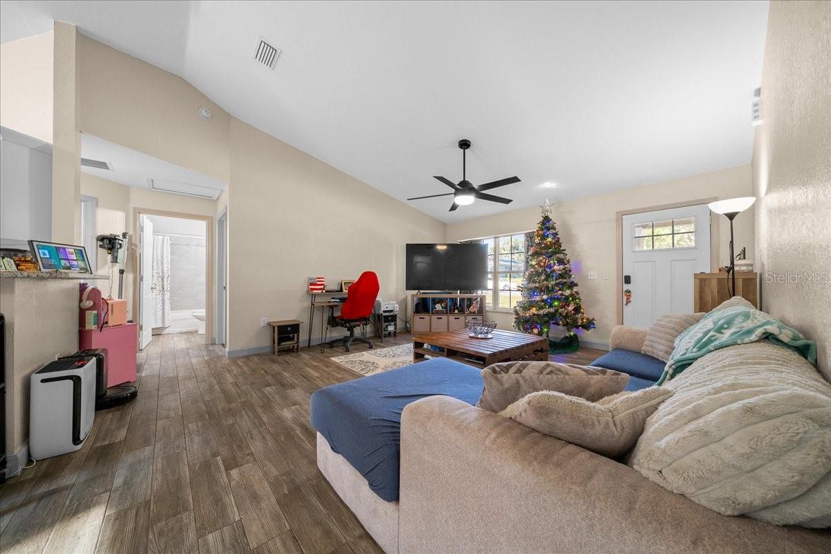 Welcome to this better than new meticulously maintained 3 bedroom, 2 bath home, built in 2023 and offering 1,332 sq. ft. of beautifully designed living space on an oversized 0.37 acre lot with a 2 car garage. This home features an inviting open floor plan with brand new 2025 tile flooring throughout all main living areas, creating a modern, seamless feel from room to room. The living room flows directly into the modern kitchen, complete with stainless steel appliances, abundant cabinet/counter space, a convenient pantry and gorgeous granite countertops. The large primary bedroom provides comfort and privacy, complemented by an en suite bathroom with a tiled walk in shower and a generous walk in closet. On the opposite side of the home, you’ll find two spacious guest bedrooms with the guest bathroom in between, featuring a tiled tub/shower combo. Step outside to a fully fenced backyard with no neighbors behind you, offering the ideal blend of privacy and space. This property also includes a Culligan whole house water softener installed in 2023 and a separate dog run, perfect for pet owners. With plenty of room for a garden, pool, or play area, the outdoor possibilities are endless. Located close to stores, restaurants, and schools, this home delivers the convenience you want with the comfort you deserve. Move in ready and truly better than brand new, don’t miss the chance to make it yours!