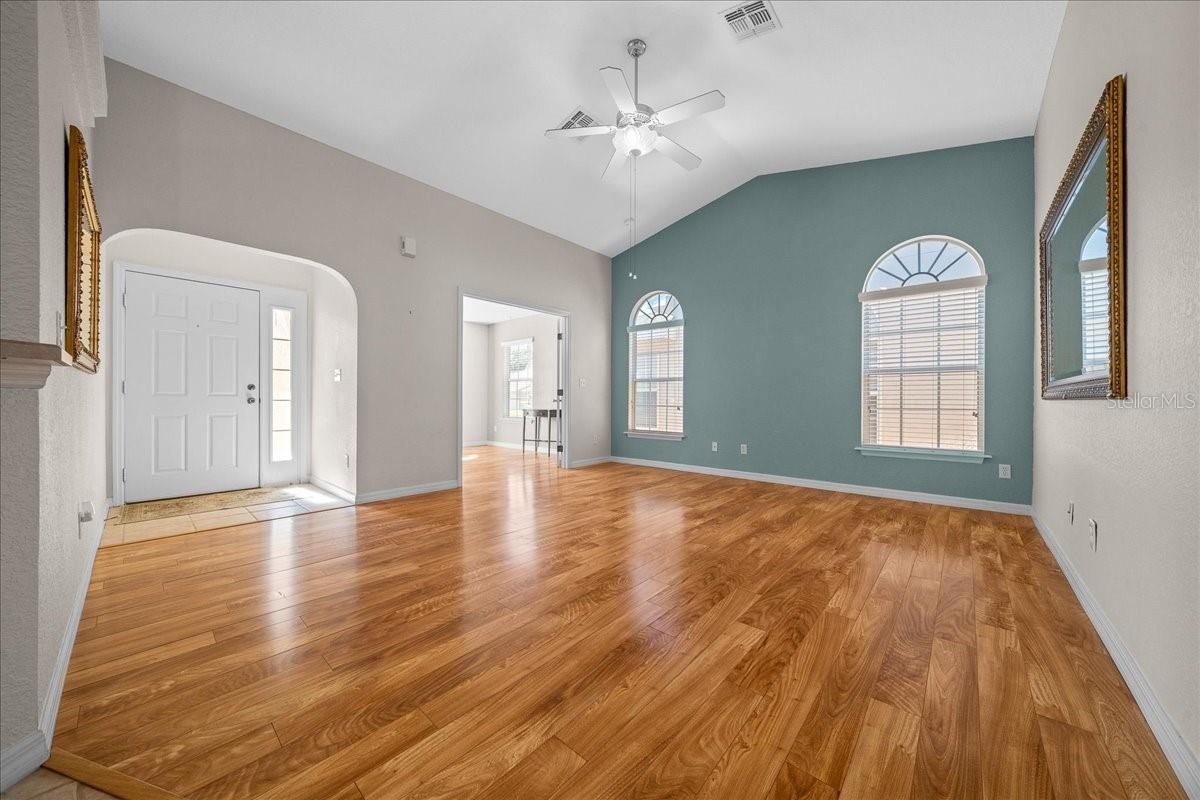 This beautifully maintained townhouse in a gated community is packed with thoughtful upgrades and extras! The open-concept floor plan features cathedral ceilings, wood cabinets, upgraded laminate flooring, and wood blinds for a warm, inviting feel. This 2-bedroom, 2-bath home plus den offers plenty of flexibility—perfect for an office, hobby room, or guest space. The screened and enclosed porch provides a tranquil spot to unwind, while the large soaking tub adds a touch of luxury. From the moment you walk in, the calming color palette and sense of serenity make it easy to feel right at home. Community amenities include a pool, tennis courts, and clubhouse, and the HOA covers roofs and exterior maintenance, making this a truly low-maintenance lifestyle.