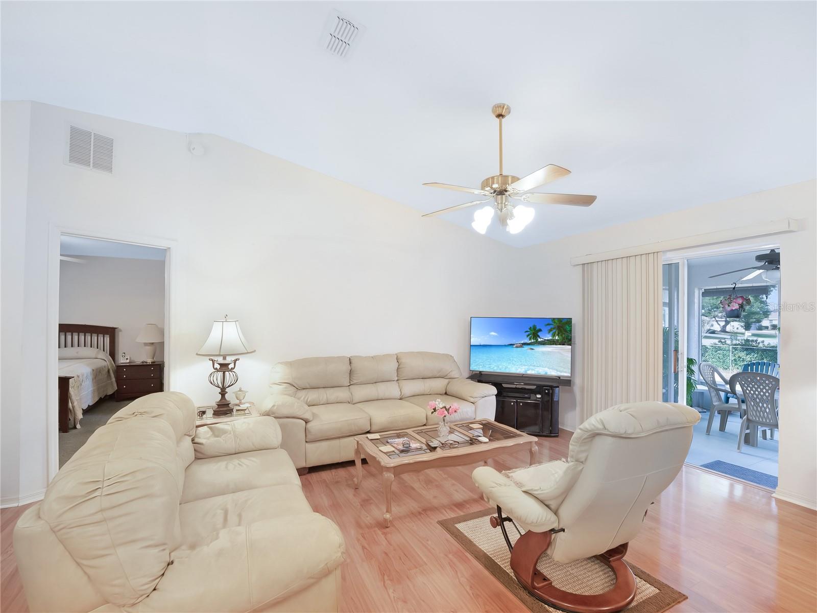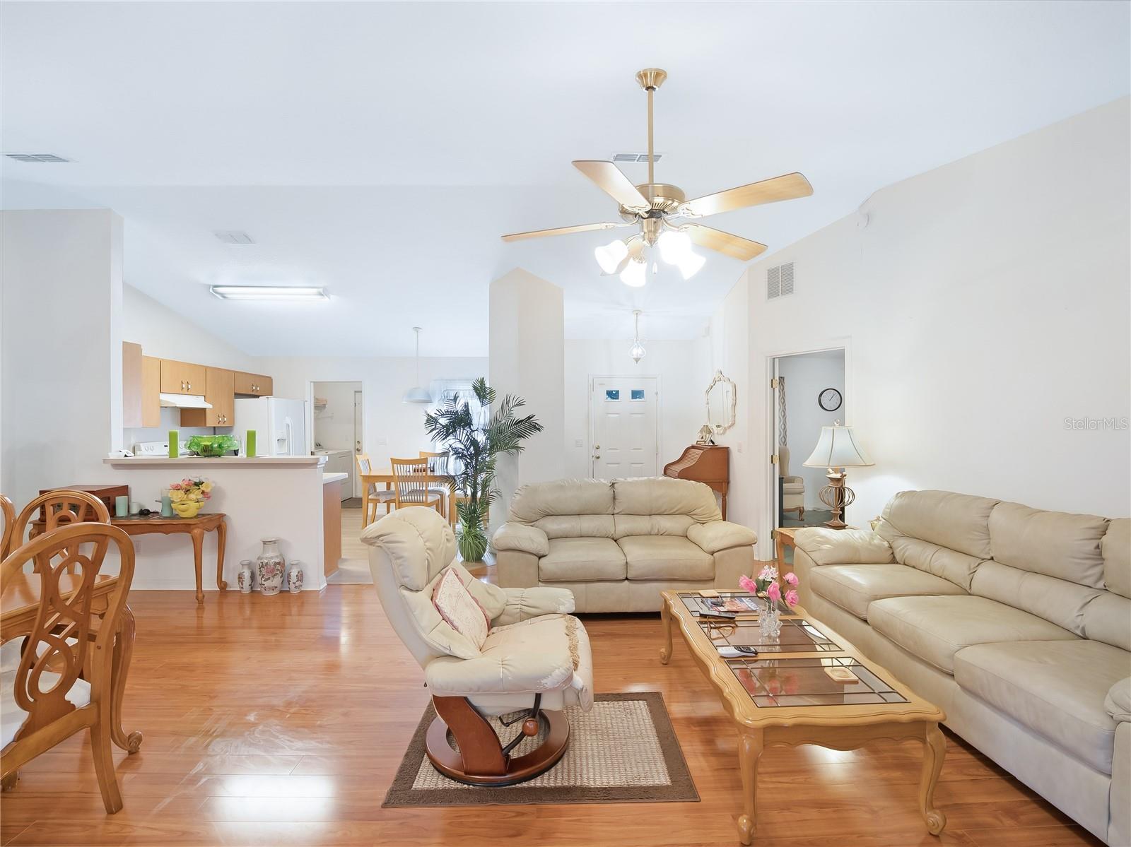 Charming 3-Bedroom, 2-Bath Home on a Prime Corner Lot in a 55+ Community This beautifully maintained home offers an open-concept design with a desirable split floor plan and soaring vaulted ceilings that create a bright, spacious atmosphere. The 2-car garage adds everyday convenience, while low HOA fees make for easy, low-maintenance living. Enjoy relaxing in the lovely enclosed lanai and the added privacy of a fenced-in yard, all perfectly situated on a premium corner lot. Ideally located just minutes from Publix, Walgreens, fitness centers, shopping, and major highways, this home perfectly blends comfort, convenience, and community living.