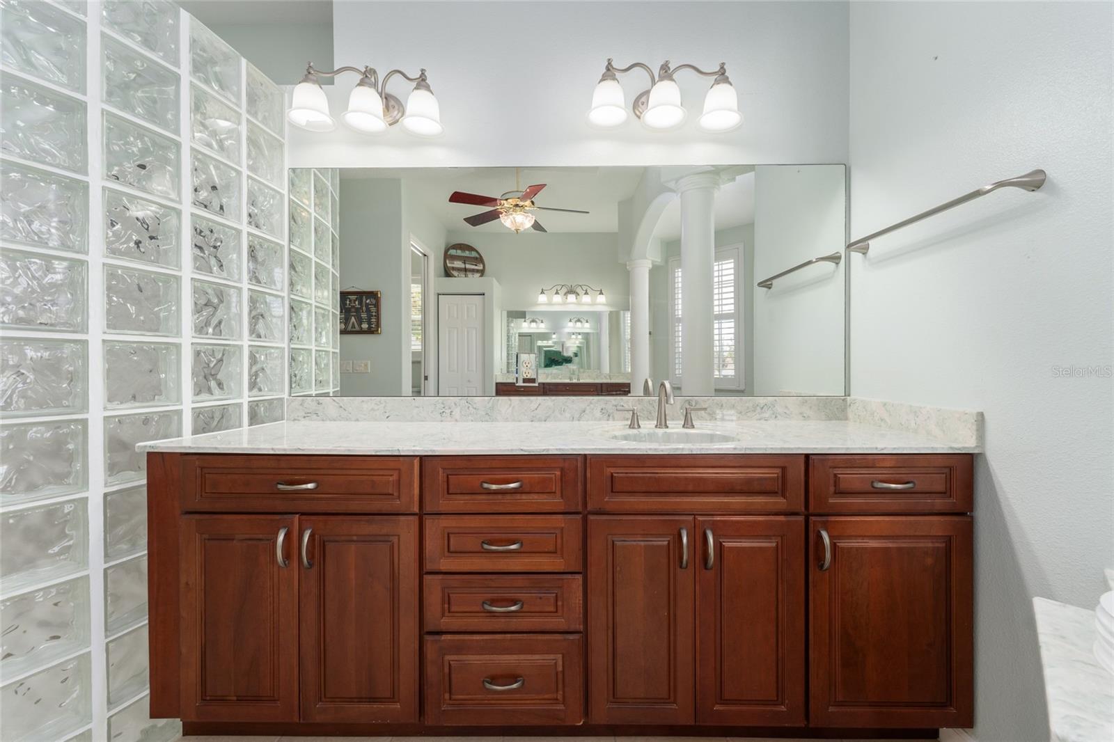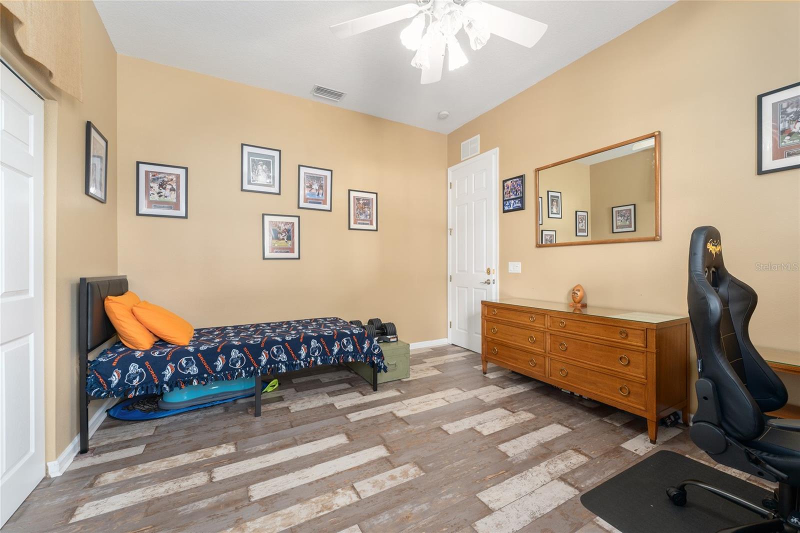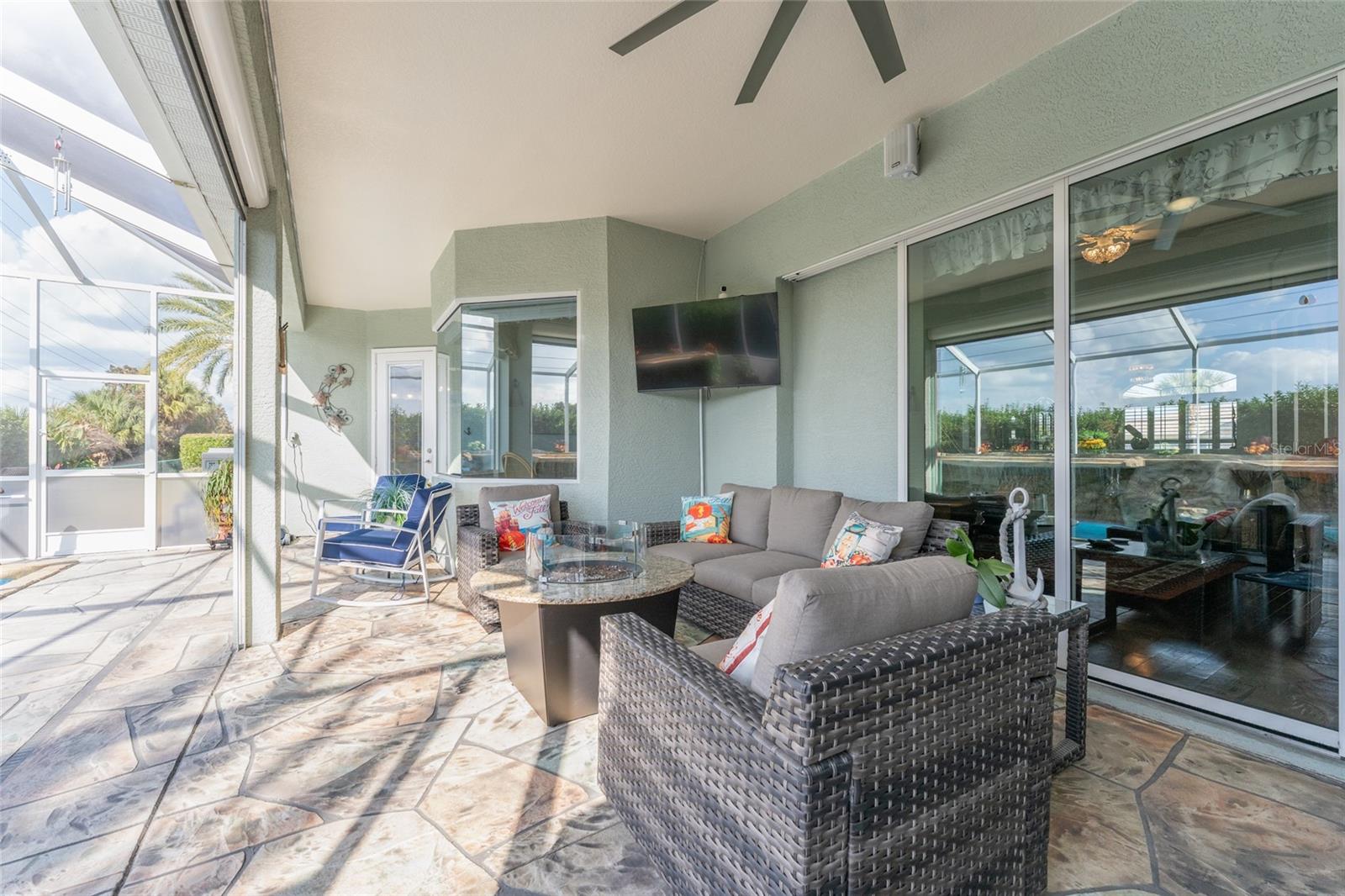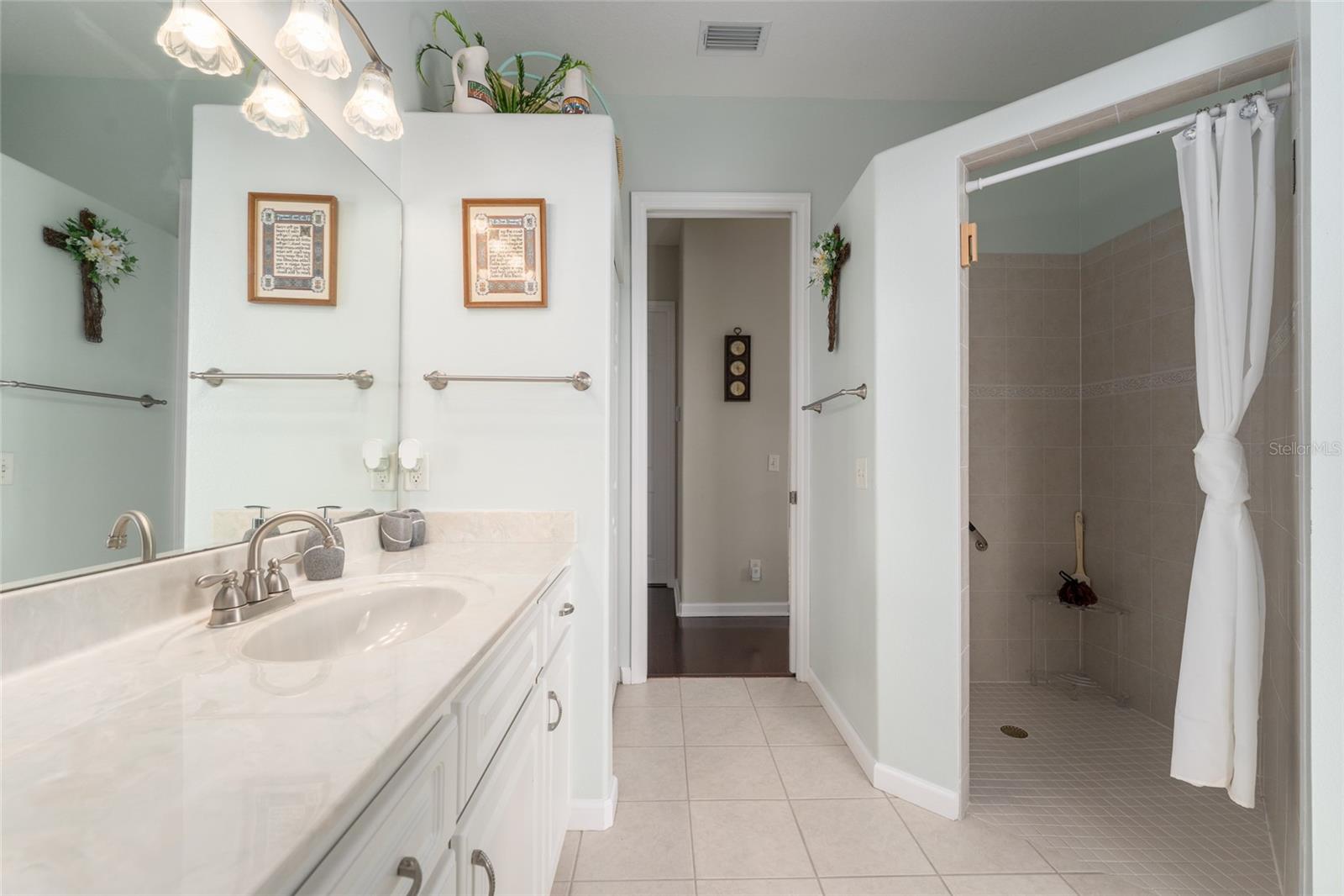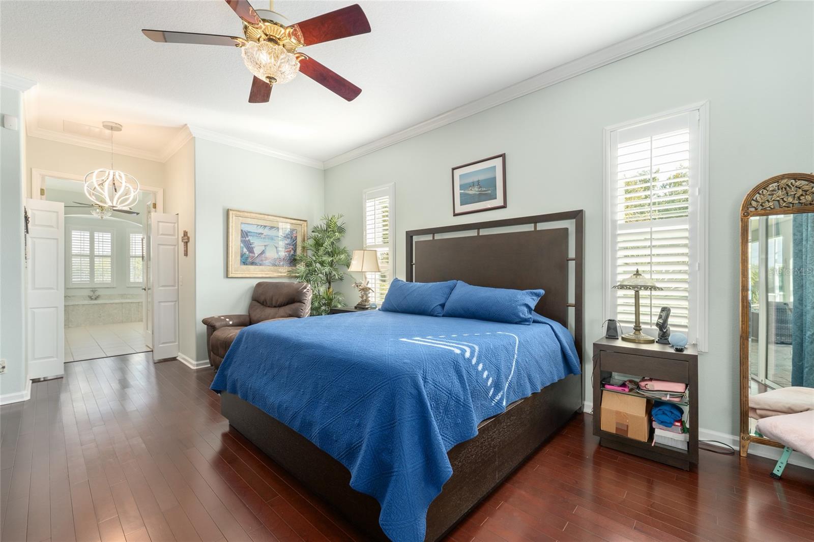 Welcome Home to Ocala Palms 55+ golf community! Find sanctuary in one of Ocala Palm’s most sought after fenced-in ½ acre lots. This gorgeous home offers the largest layout of the community; complete with pool and all the upgrades you could desire! This 3-bedroom, 2 bath home features hardwood flooring throughout, estate shutters, crown-molding, ceiling fans in every room and best of all WIFI accessible thermostat. Enjoy your gourmet kitchen that has updated cabinets with pull out drawers, a swing out pantry and quartz countertops. The Over-sized master suite is perfectly built with his and hers designer walk-in closets, a spa inspired bathroom with double vanities, walk-in shower and garden tub. This split floor plan offers two guest rooms complete with a handicap accessible shower in the nearby bathroom (complete with pool access) as well as recessed alcoves in each that are great for extra storage. Walk through the large living room with tray ceiling and enjoy the back yard view of the newly updated lanai (2022). Get ready to entertain family and friends on the lanai with your summer kitchen with upgraded sunshade, brand new waterfall, pool cage with lights and hard-wired Bluetooth accessible outdoor speakers. The pool is salt-water, solar heated and controlled with a Pentair wireless accessible pool-system and don’t forget to relax and unwind in the heated Jacuzzi. This home has Kinetico Mach series water softener that is maintained yearly, a new roof (2023) and lanai screen (2023). The A/C is from 2015 and is serviced yearly. The community hosts an 18-hole golf course, fitness center, indoor pool, arts and crafts studio, card room, multi-purpose room, sewing studio, billiards room, table tennis, and a library that provide plenty of space for recreation, relaxation and activities all just a golf cart ride away. Residents can also stay active outdoors with the outdoor pool, tennis, bocce ball and shuffleboard, and soon to be built pickle ball courts. Don't forget to check out the community's locally owned Bella Cosa Italian Ristorante. This home is perfectly located across from Publix grocery, restaurants, gym and local shopping. Only 3 miles from the World Equestrian Center and minutes to downtown Ocala.