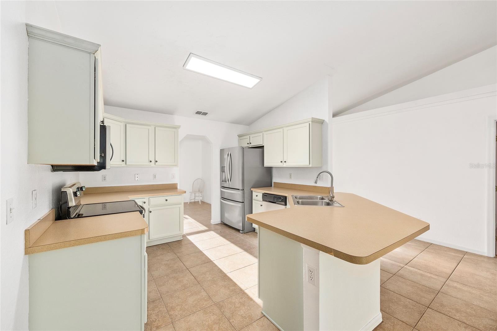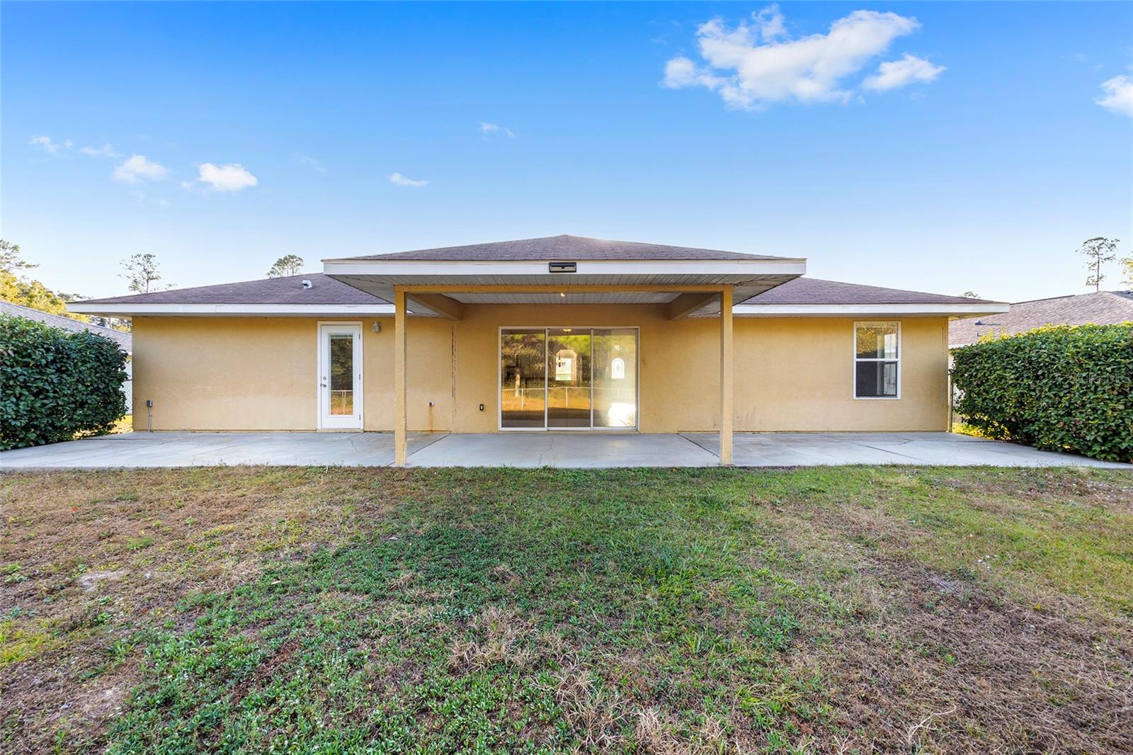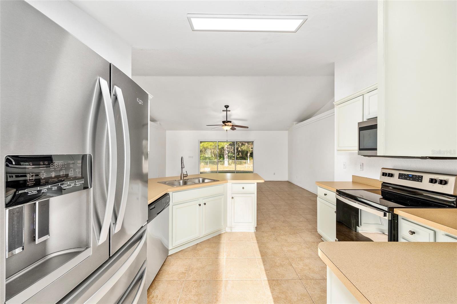 Beautiful 3/2/2 PLUS OFFICE OR 4TH BEDROOM! Oversized FENCED lot (.30 acre) with privacy, no neighbors behind, and a great view of the Greenway! Enjoy seeing deer and owls from your back yard! 2025 AC. Spacious OPEN FLOOR PLAN home with 1818 ft living space! NO CARPET. Large great room has vaulted ceilings and triple sliders to the lanai. Kitchen has a breakfast bar, stainless steel appliances, pantry, plenty of counters/cabinets, and separate dining room. Split bedroom plan. Primary suite has HUGE walk-in closet and en suite with dual sinks and linen closet. Inside laundry room includes washer/dryer. Two car garage has garage door opener. Covered lanai plus oversized patio gives you plenty of space for outdoor living and enjoying the views from your back yard. Convenient location to shopping, dining, golf course, and parks. The Greenway has great walking/biking trails and you're just 9 miles to downtown Ocala and 5 miles to Silver Springs State Park! SELLER WILL REPLACE ROOF WITH ACCEPTABLE OFFER!