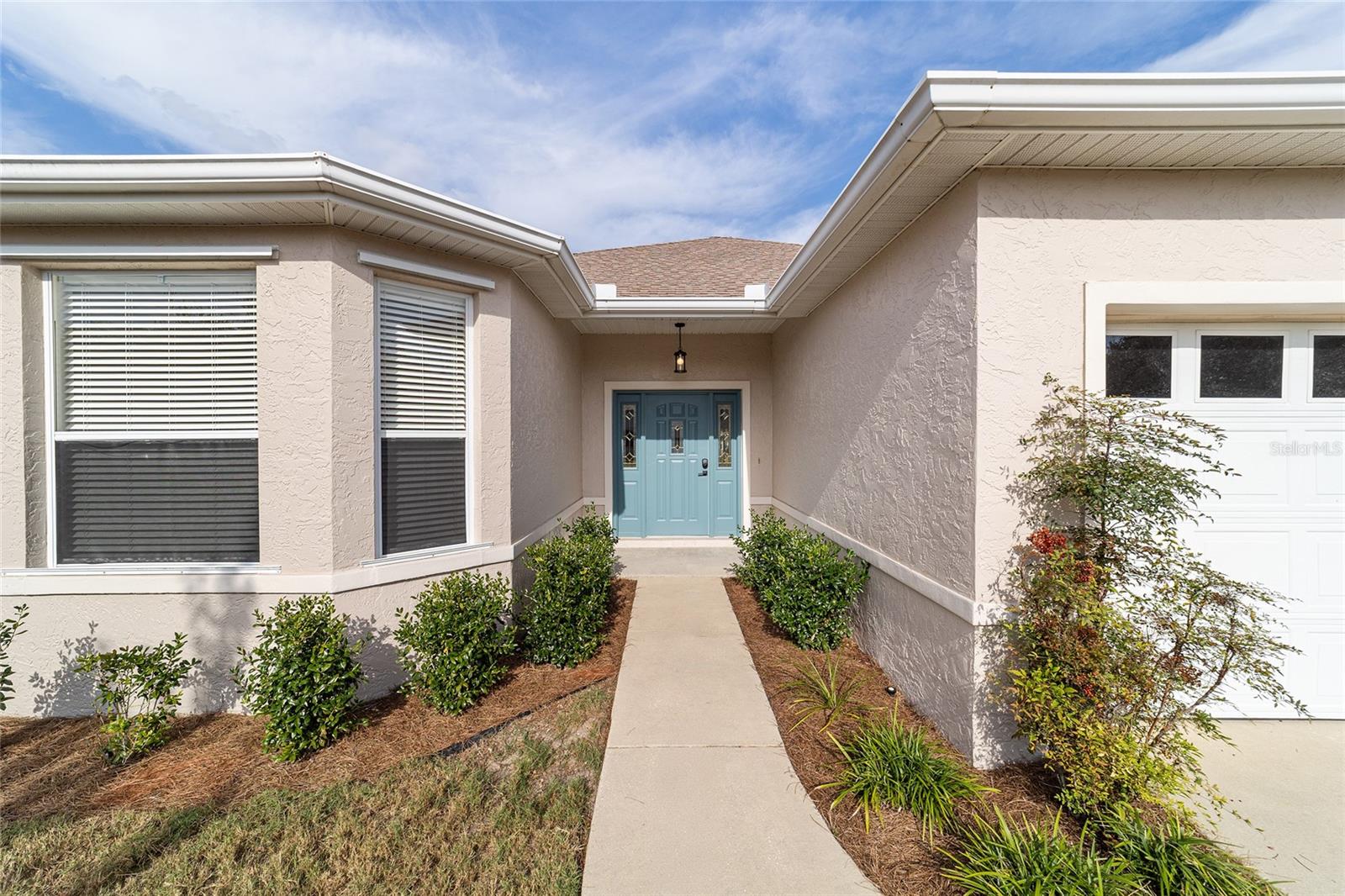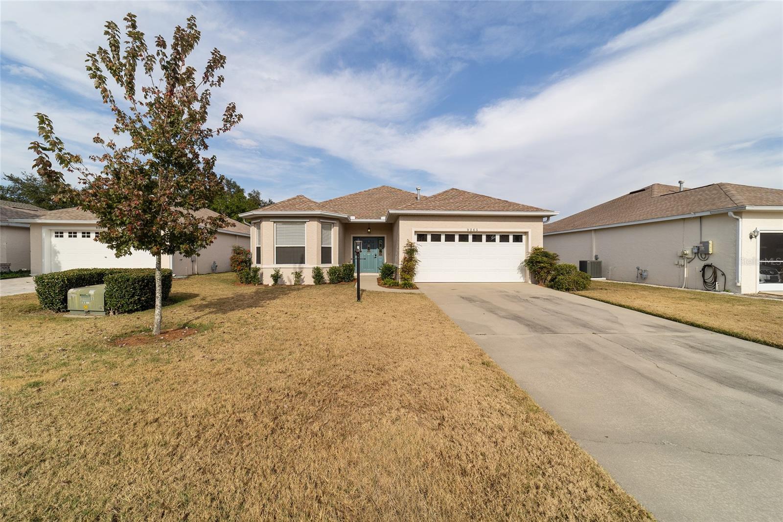 This Hanover has been beautifully updated by its professional designer-owner. This 2-bedroom, 2-bathroom home has a flex room and an oversized, epoxied 2 car garage. Large, neutral tile set on the diagonal coupled with complimentary LVP in the bedrooms means NO carpet to maintain. The stylish kitchen has been updated with 2 tone cabinets, quartz counters, glass mosaic backsplash, and stainless-steel appliances. The cabinets are dovetail construction with soft close features and have crown molding. The expanded lanai has been enclosed with acrylic windows and has a northern exposure for year-round comfort and overlooks a deep lot giving space between the neighbors. The big ticket items like HVAC (2021) and roof (2020) are completed. Home has modern features like high ceilings, 9'4", newer 5'4" baseboards, newer light fixtures and fans, and has been freshly painted. Seller will be adding windowed barn doors to the flex room which will offer privacy while still allowing light. On Top of the World is Ocala's premier 55+ active adult, golf, resort community with world class amenites.