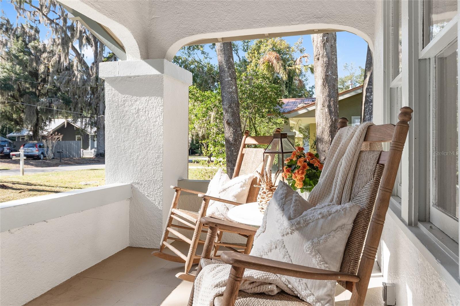 Step inside and feel this 1938 Bungalow giving you a warm little wink with timeless charm. Sunlight dances through every room with original pine floors and vintage wavy glass windows. This 3/2 is completely restored and welcomes you with a spacious covered front porch, perfect for rocking or swinging. A new kitchen—featuring exposed brick accents, quartz countertops, and brand new appliances. The renovated bathrooms shine with marble floors and period-inspired penny tile, offering a graceful nod to her past while ensuring today's comforts. Behind the scenes, she’s been updated where it matters most, with all-new plumbing, new electric panel and wiring, new HVAC, and a 2014 metal roof. The spacious backyard is ready for gardening, entertaining, or a peaceful retreat, and the bonus workshop/storage building is perfect for hobbies or projects. Nestled in Ocala’s beloved Golf Cart District, this Bungalow sits just a cheerful stroll from 8th Street Elementary, Osceola Middle, and the vibrant Downtown Square—full of dining, shopping, and community events. With no HOA or deed restrictions, the location offers wonderful flexibility, making it an excellent option for a full-time residence, seasonal home, or potential short-term rental thanks to its proximity to Ocala’s most sought-after attractions. She’s full of history, heart, and hope for her next homeowner.
