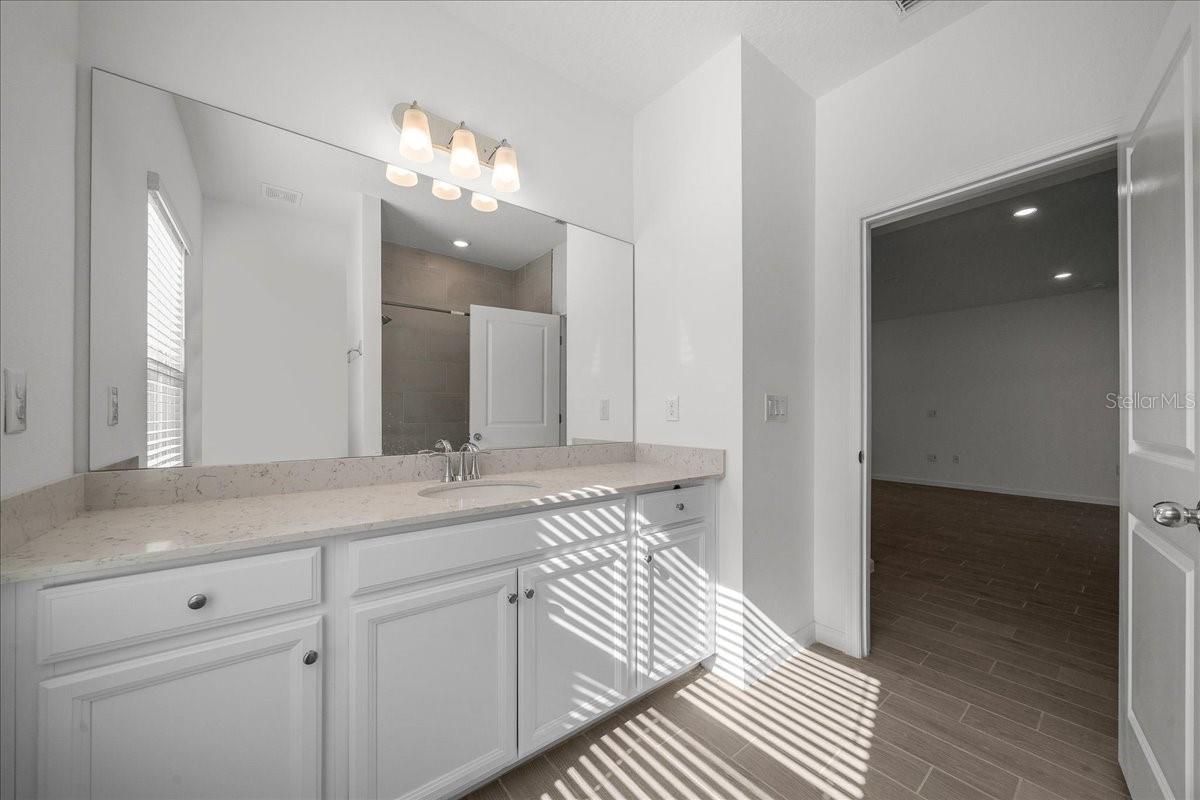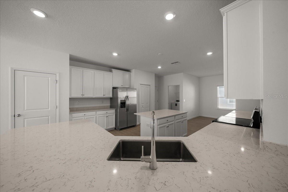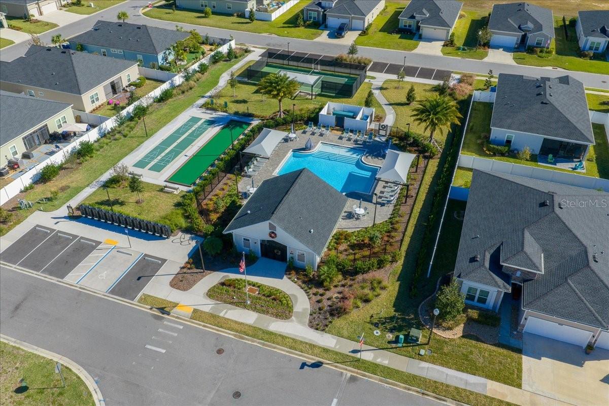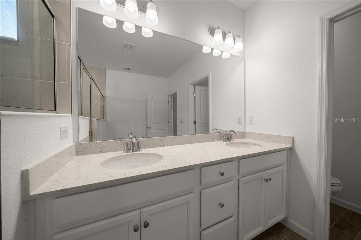 Never lived in and perfectly positioned, this stunning Tivoli model sits just three homes from the community pool and less than 10 minutes from both WEC and FAST. Located in the desirable 55+ Liberty Village community, it offers easy access to training centers, shopping, dining, and golf cart–friendly amenities—all with an affordable HOA. The open-concept design welcomes you with a spacious gathering room that flows effortlessly to the covered lanai, ideal for relaxing or entertaining. The kitchen serves as the centerpiece of the home, featuring quartz countertops, stainless steel appliances, a large center island, staggered cabinetry, a walk-in pantry, and both bar and café seating. Designed for privacy and flexibility, the home includes two master suites. The owner’s suite offers a generous walk-in closet and a spa-inspired bath with dual vanities and a Roman-style shower. A second private suite is perfect for guests, while two additional bedrooms and a third full bath provide space for a home office, hobbies, or visiting family. Additional highlights include a formal dining room, a dedicated laundry room, and a spacious three-car garage—ideal for extra storage, a workshop, or golf cart parking. Move-in ready and never occupied, this home combines luxury finishes, a prime location, and resort-style community living—truly an exceptional opportunity in Liberty Village.