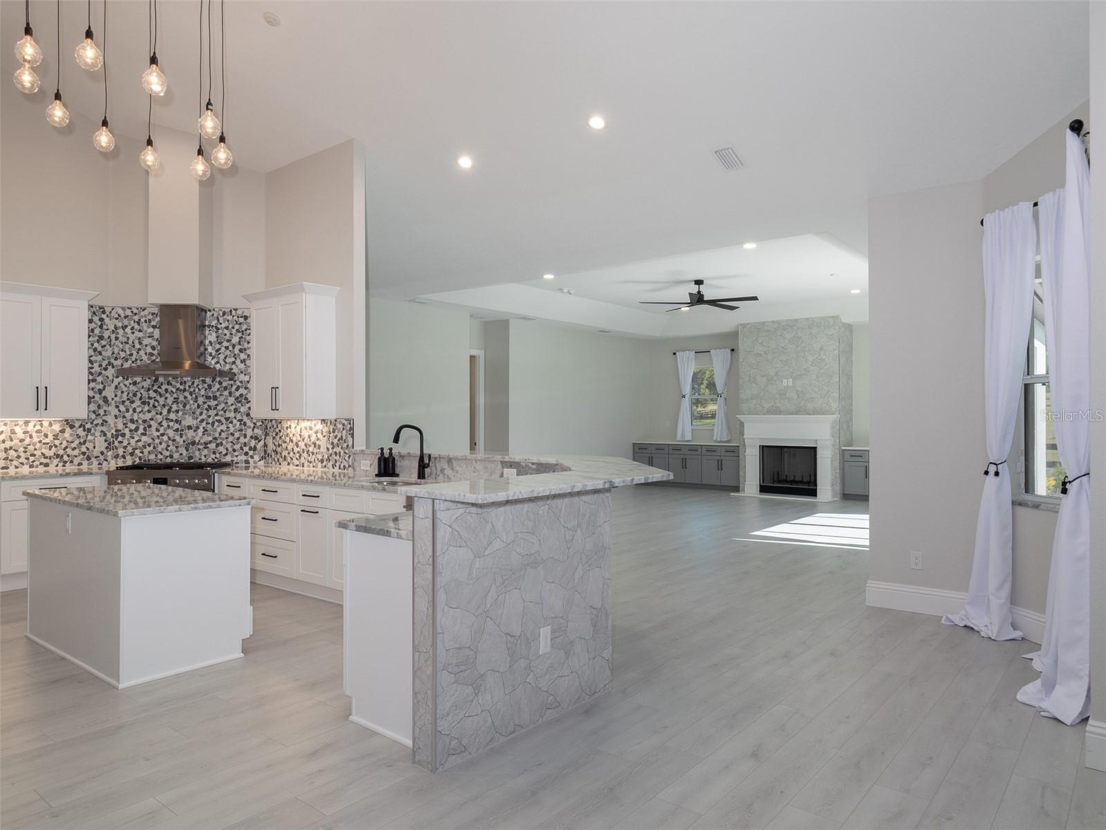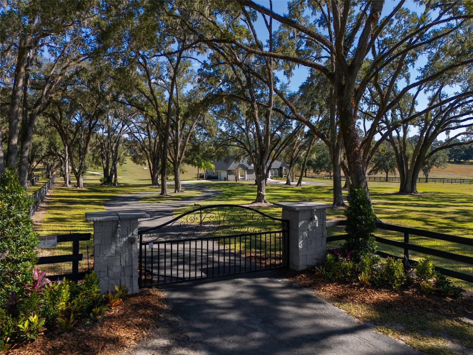 Located on NW 80th Ave, one of the most desirable and sought after streets in Ocala for its beauty, serenity, and unbeatable location, this exceptional 10-acre property is just 14 minutes from the World Equestrian Center and Golden Ocala, offering both convenience and peaceful country living. Fully fenced and shaded by beautiful oak trees, the property features a welcoming circular drive, while the expansive open backyard acreage provides the perfect opportunity to add paddocks and build a barn. The home includes luxury vinyl flooring throughout and an inviting open floor plan with 3 bedrooms and 3 full bathrooms. The kitchen boasts stunning countertops, a stylish backsplash, and updated appliances, flowing seamlessly into a warm living room complete with built-in cabinetry and a cozy fireplace. The primary suite offers a spa-like retreat with his-and-her vanities, a large soaking tub, a walk-in shower, and an expansive walk-in closet with built-in shelving. An attached garage adds convenience and additional storage. Completing this impressive property is the covered back porch with outdoor kitchen space overlooking the in-ground pool and attached spa, perfect for relaxing or entertaining. With its ideal location, thoughtful features, and endless potential, this property offers an opportunity to create the equestrian lifestyle of your dreams.