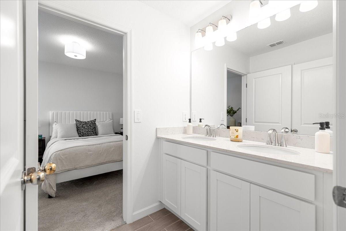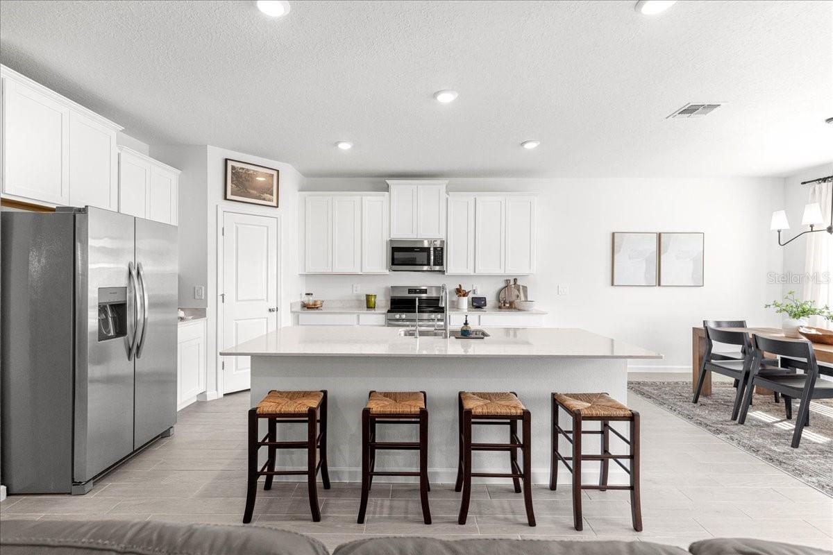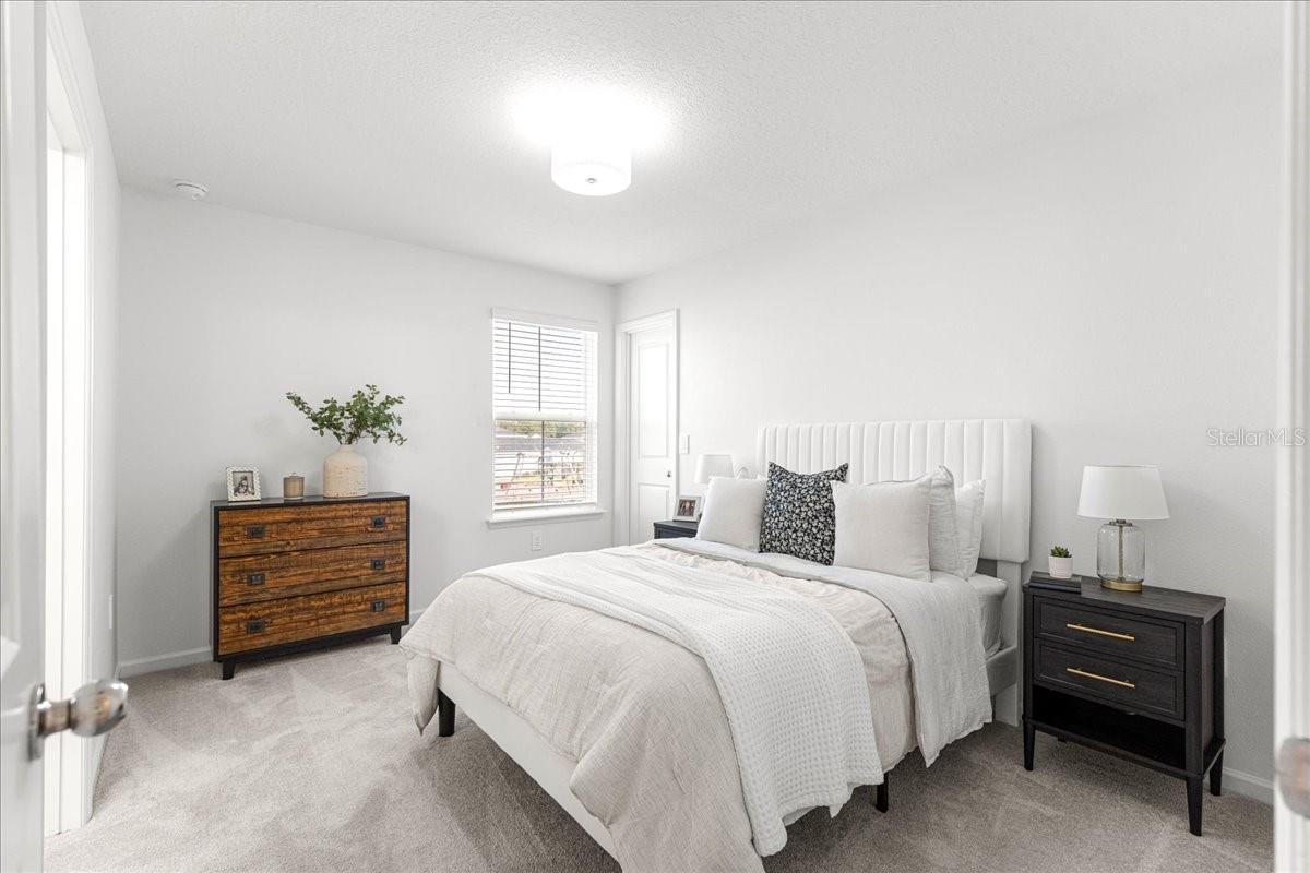 Built in 2024, this beautifully designed 4 bedroom, 3 bath home offers over 2,000 sq ft of modern living with an open floor plan and thoughtful upgrades throughout. The spacious kitchen features 42-inch cabinets, granite countertops, stainless appliances, abundant storage, and a seamless flow into the main living area. A guest bedroom and full bath are located on the first floor, ideal for visitors or multigenerational living. Upstairs, you’ll find the primary suite, two additional bedrooms connected by a Jack and Jill bath, plus the upstairs laundry placed exactly where the bedrooms are for everyday convenience. Enjoy outdoor living with a fully fenced backyard, a screened lanai, and no rear neighbors for added privacy. Right at the corner of the street is the community playground, which includes a pergola, grill, and picnic table for easy weekends outdoors. The neighborhood also includes sidewalks, perfect for morning walks and evening strolls. Additional highlights include a whole-house water treatment system and generous storage. With its fresh construction, versatile layout, and modern finishes, this home is truly move-in ready. Schedule your private tour today!