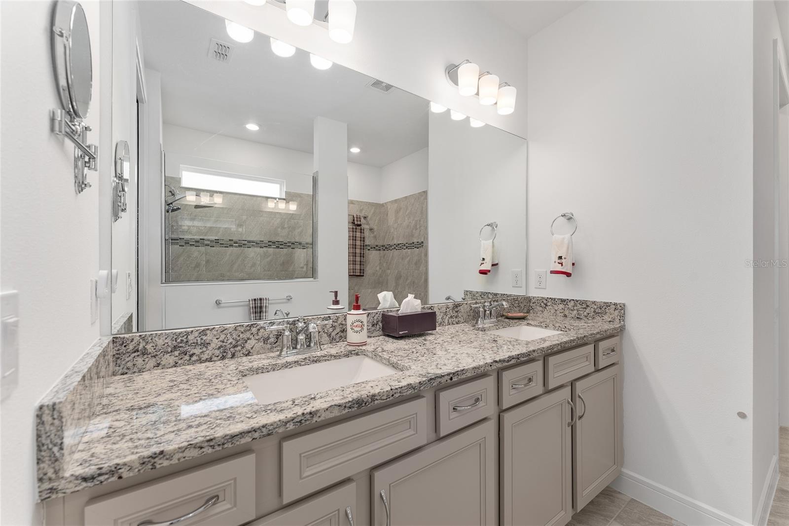 Looking for the perfect place to enjoy comfort, style, and an active lifestyle? Check out this gorgeous expanded Mystique model perfectly positioned on a premium lot offering private and relaxing green space views. Located in the highly sought-after gated, 55+ Stone Creek Golf Course Community, this home is more than just a residence; it's your ticket to vibrant, resort-inspired living. This home blends luxurious finishes with thoughtful design, creating the lifestyle you’ve been seeking. Elegant luxury vinyl plank and tile flooring flow throughout, complemented by soaring ceilings, Plantation shutters, recessed LED lighting, and a versatile bonus flex room. Designed for gatherings and effortless living, the spacious extended living room features glass sliders that open to a covered lanai, where tranquil green space views provide a serene backdrop for outdoor gatherings. This inviting gourmet kitchen offers a central island perfect for casual bar-height seating, timeless Shaker cabinets topped with crown molding accents, granite countertops, and a stylish tiled backsplash. With a generous pantry and stainless steel appliances, including a cooktop framed by a custom wooden range hood, this space blends charm with everyday convenience. Unwind in the spacious Owner’s suite, featuring a graceful tray ceiling and convenient top-down cellular shades. The walk-in closet keeps everything organized, while the private bath boasts a Roman-style shower with elegant glass tile accents, a sunlit transom window, and a dual vanity designed for comfort and ease. Take advantage of the two spacious guest rooms, perfect for accommodating visitors or setting up a hobby space, and you'll also love the large laundry room, complete with a laundry tub, a folding table, and ample cabinet storage space. To top it all off, this home includes a convenient Smart Home technology package, adding a modern touch to these fantastic features. Embrace the exceptional lifestyle of this vibrant community, featuring a 24/7 staffed gated entrance for security and peace of mind. Luxury-inspired amenities include heated pools, a state-of-the-art fitness center, a spa, and relaxing hot tubs and saunas. Stay active with pickleball, bocce, tennis, and a softball field, while a dedicated lifestyle staff curates entertainment, activities, and special events to foster connections. Just beyond the gates, enjoy a golf course, pro shop, and restaurant—perfect for socializing and unwinding. Make your move today and experience resort-style living at its finest!