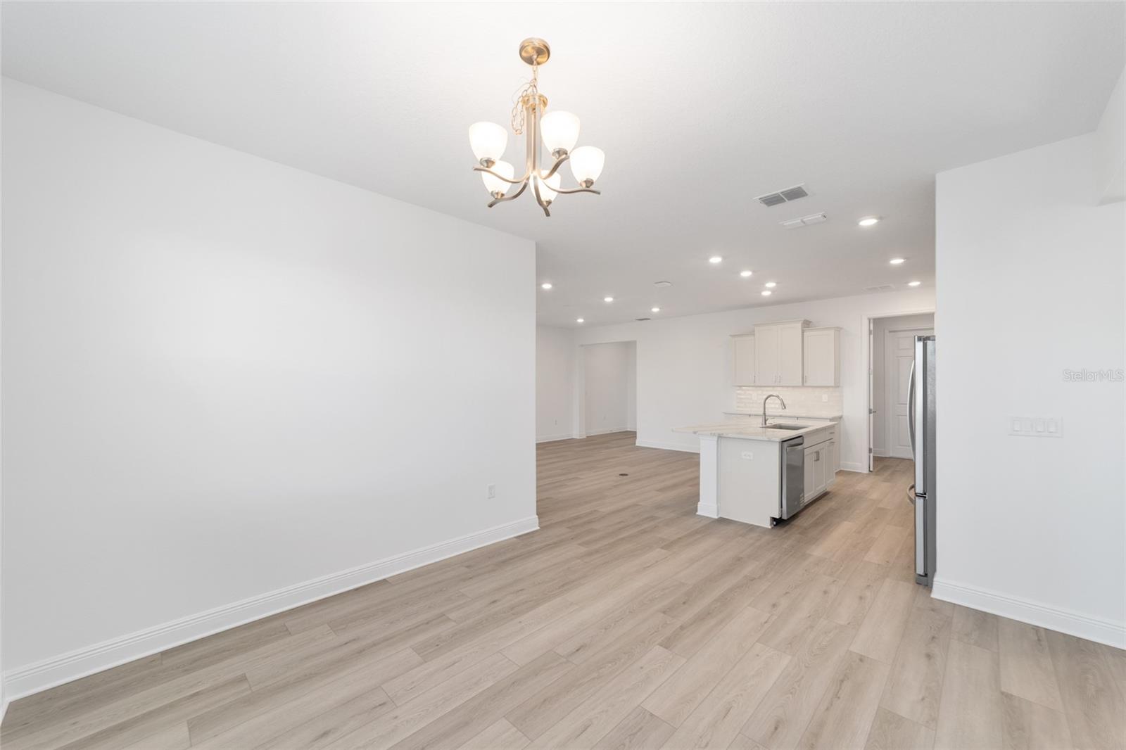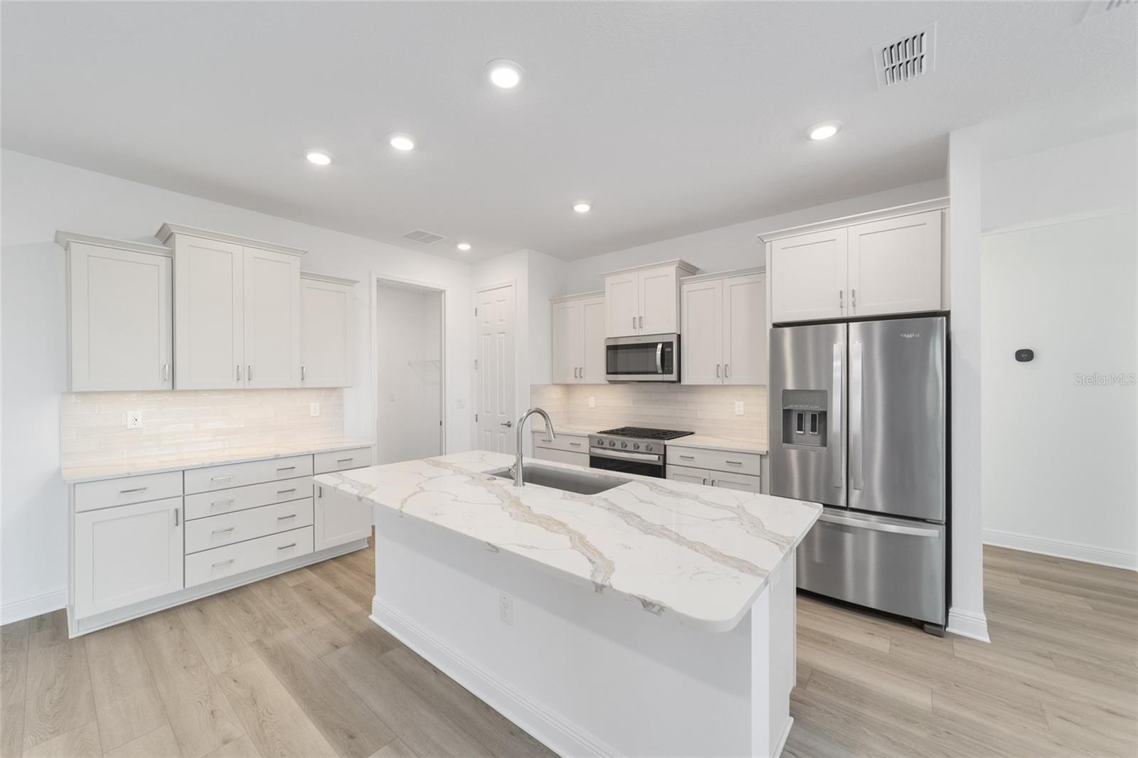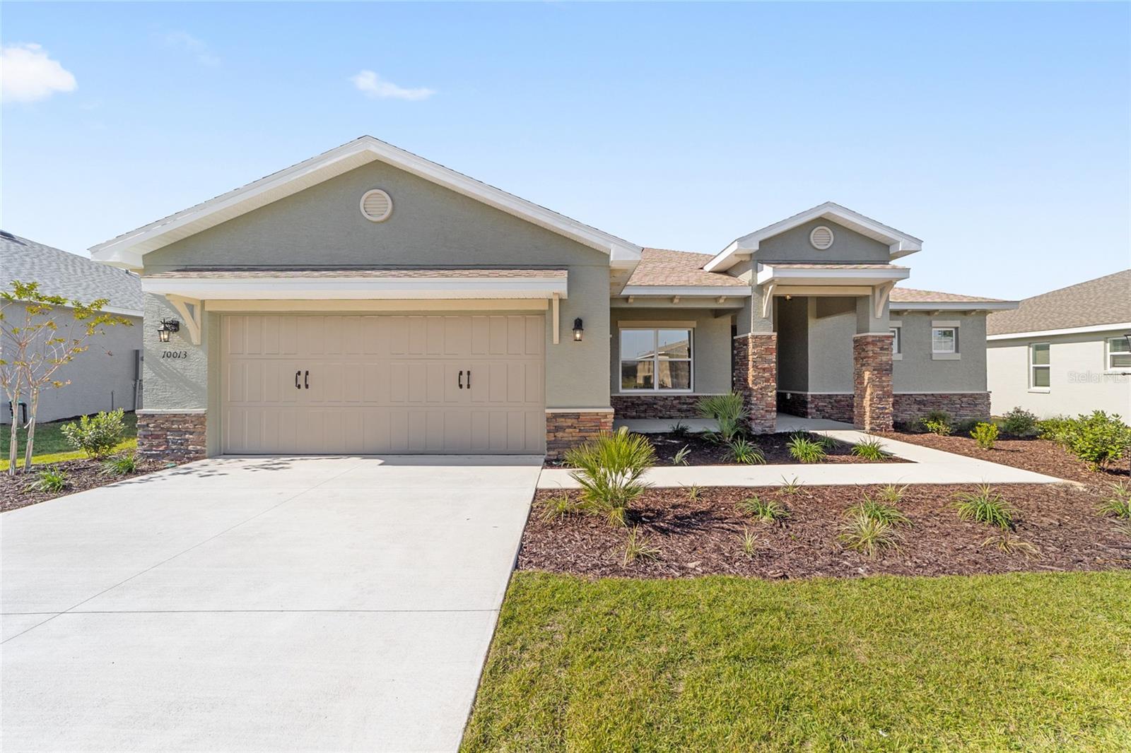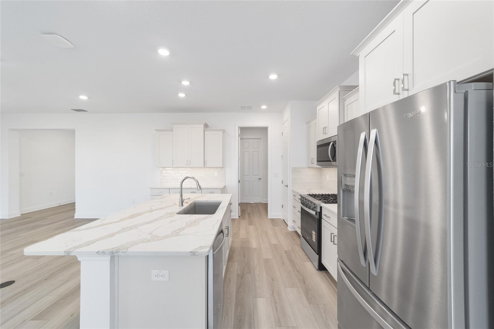 Experience refined Florida living in this stunning new-construction Livingston floor plan, thoughtfully designed for comfort, style, and versatility within the award-winning 55+ community of On Top of the World. Offering 2 bedrooms, 2 baths, a spacious flex room, and a 2-car garage with dedicated golf cart space, this elegant residence features 1,718 sq. ft. of beautifully finished living space enhanced by laminate flooring and abundant recessed lighting throughout. The expansive great room opens to a showstopping gourmet kitchen appointed with an oversized quartz island, crisp white shaker cabinetry, stainless steel appliances, sleek tile backsplash, and generous storage—perfect for entertaining or everyday enjoyment. A charming breakfast area adds warmth and functionality, while the flex room provides endless options for a home office, den, or creative space. Step through sliding glass doors to the private enclosed lanai, offering a serene retreat ideal for year-round relaxation. Additional highlights include a full laundry suite, covered front porch, energy-efficient construction, and thoughtful design details throughout. Residents enjoy unparalleled amenities including golf, fitness and wellness programming, weekly entertainment, lifelong learning opportunities, over 21 miles of scenic walking trails, and more than 175 resident clubs, all set amid beautifully maintained grounds in one of Florida’s most celebrated active adult communities.