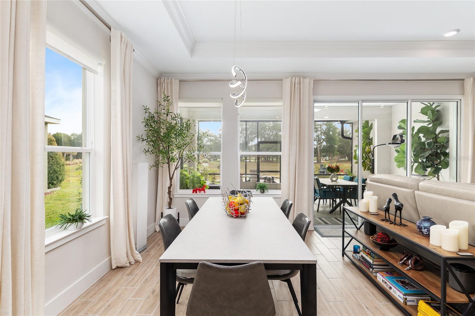 This meticulously maintained custom built Connect model, crafted by Shea Homes is ONE OF A KIND! Situated on a premium lot with NO REAR NEIGHBORS! Located in the highly sought-after gated community of Ocala Preserve, just minutes from the renowned World Equestrian Center! Featuring a custom built 3 bedrooms, 3 bath, 2 car garage + executive office space. This home is as functional as it is stunning! Upon entering you will be greeted by upgraded porcelain tile flooring and a split floor plan that flows effortlessly into an expansive open-concept living area. The perfect blend of luxury and comfort, in a light and airy atmosphere. At the heart of the home is a stunning spacious chef's kitchen, featuring an oversized kitchen island, glistening quartz countertops, custom solid wood cabinetry, stainless steel appliances, and a gas stove. Not only is this model one of the most sought-after, but this one in particular features over $60k in upgrades, including extended brick paved lanai with birdcage enclosure! Just wait until you see the views! Large windows flow seamlessly throughout the home allowing ample natural light complimenting the open floor plan and providing stunning views of the beautifully landscaped property. The primary suite is a true sanctuary, featuring large windows overlooking the beautiful backyard views of the nearby golf course and walking trails, an ensuite bathroom with dual vanities and quartz countertops, a beautifully tiled stand-up shower with a sleek glass door, Toto Bidet, and an oversized walk-in closet with custom built-ins! The other bedrooms are also great in size with ample closet and storage space. Some of the many upgrades to this home consist of professionally landscaped upgrades to the front, side and back of property, a whole home water filtration system and whole home water softener, Garage and entry way feature Epoxy flooring, solar powered extractor fan in attic, 50a electric socket for RV/EV charging in the garage, Window treatments, Skylights in primary bathroom and closet, Wainscot wall paneling in the office/study, Upgraded backsplash, hardware and light fixtures in kitchen and laundry room and more! From its luxurious upgrades to its attention to detail, this home is a rare find that perfectly blends sophistication with comfort. The HOA fee covers lawn and landscape maintenance, high-speed fiber optics internet, and membership access to all community amenities. These include both indoor and outdoor fitness areas, group fitness classes, 21 miles of dedicated walking and biking trails, bocce, horseshoe pits, tennis, pickleball, a fishing dock, kayaks, canoes, and a paddleboat. Not to mention the clubhouse, the 18-hole Tom Lehman-designed golf course, Salted Brick restaurant and day spa. This home is also available for lease! Schedule your private tour today!