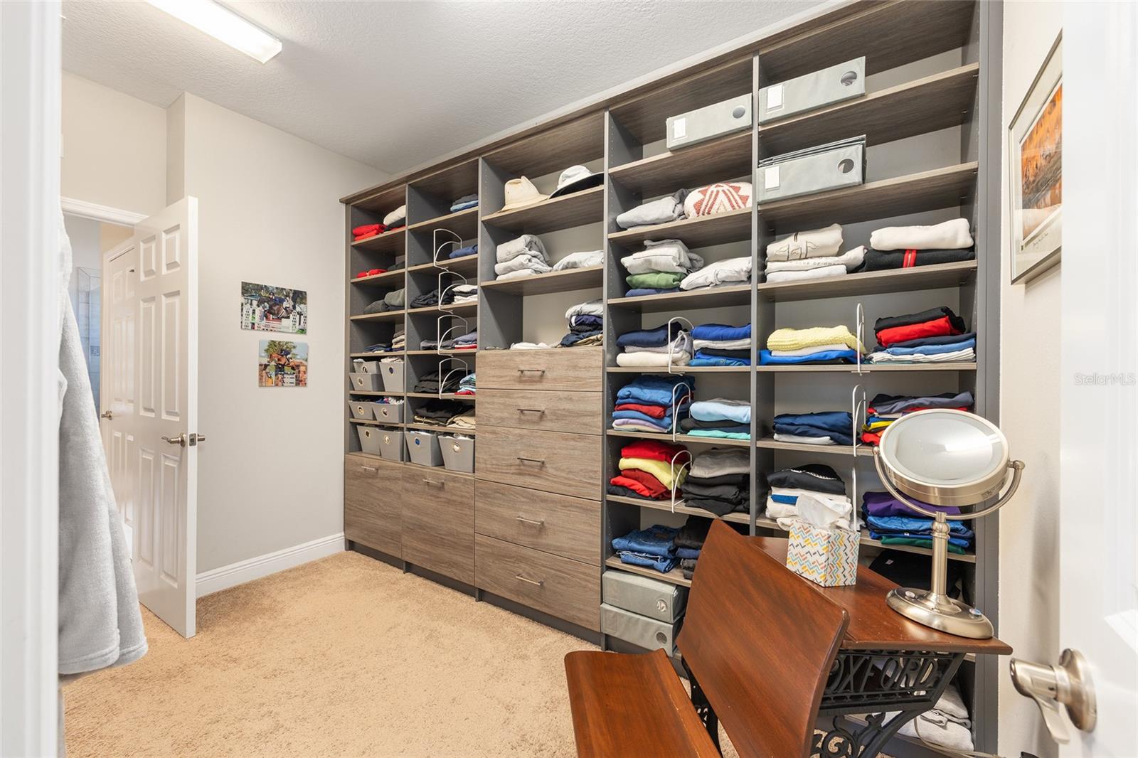 This stunning 2 bedroom 2 bathroom home located on one of the largest parcels in Ocala Preserve is located at the end of a cul-de-sac that backs up to a tree buffer separating vast farmland. This oversized lot has a perimeter fenced backyard that adds a huge value to anyone with furbabies! Not to mention the professionally installed landscape and paver patio off the back of the screened in lanai that fills you with the desire to enjoy the outdoors. The interior of the home is just as glamorous, as it was outfitted by an interior designer with beautiful lighting, tasteful accent walls, and lovely upscale furniture. The den area is located conveniently close to the guest bath and could easily become an option as a third bedroom. This chef's kitchen has all of the builder upgrade appliances as well as ample storage and granite counter tops. Facing the kitchen is an additional lounge area, great for entertaining. Off the kitchen the dining area and living room are illuminated by natural light. The primary suite offers a lovely custom shower, double sink vanity, and a walk in closet that is to die for! The walk in closet also has a door that leads into the laundry room off of the garage. This home is also outfitted with a two year old household generator, 2022 tankless hot water heater, lightning rods, as well as epoxy flooring and extra storage in the spacious garage. Most of the furniture can convey. Contact listing agent for furnishing details.