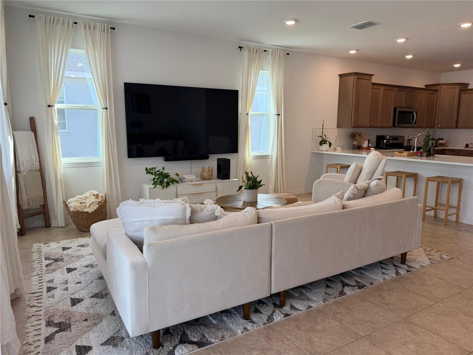 Welcome to this like-new, fully furnished home located in the highly desirable Calesa Township community in Ocala. Built just one year ago, this Currant model offers the perfect balance of modern design, comfort, and convenience—without the wait of new construction. This thoughtfully designed home features 3 bedrooms, 2 bathrooms, and a versatile flex room, ideal for a home office, media room, or additional living space. The open-concept layout showcases a beautifully appointed kitchen with a peninsula, marble-style countertops, warm natural wood cabinetry, stainless steel appliances, and a gas range—perfect for both everyday living and entertaining. The home is finished with light ceramic tile throughout, offering a clean, modern look that is easy to maintain. The spacious primary suite provides a peaceful retreat, complete with a private en-suite bathroom featuring dual vanities, modern cabinetry, and a walk-in glass shower. Sold fully furnished and move-in ready, this home includes all furniture, window treatments, refrigerator, dishwasher, microwave, washer, and dryer—making it an exceptional value compared to new construction options. Additional highlights include a two-car garage, abundant natural light, and access to Calesa Township’s resort-style amenities, trails, and green spaces. ?? Seller is offering contribution toward buyers closing costs, making this an outstanding opportunity to secure a nearly new home with immediate availability. ?? Skip the wait, avoid construction delays, and move right in—this home is ready for you today. • Like-new home built in 2024 – no construction wait • Popular Currant model in Calesa Township • 3 Bedrooms | 2 Bathrooms | Flex Room (ideal for office, den, or media room) • Open-concept floor plan with spacious living and dining areas • Modern kitchen with peninsula, marble-style countertops, and warm natural wood cabinetry • Gas range and stainless steel appliances • Ceramic tile flooring throughout – durable and easy to maintain • Primary suite with dual vanities and walk-in glass shower • Fully furnished & move-in ready (furniture and décor included) • • Ring security system included: Ring video doorbell Interior motion sensor Window sensors installed throughout the home