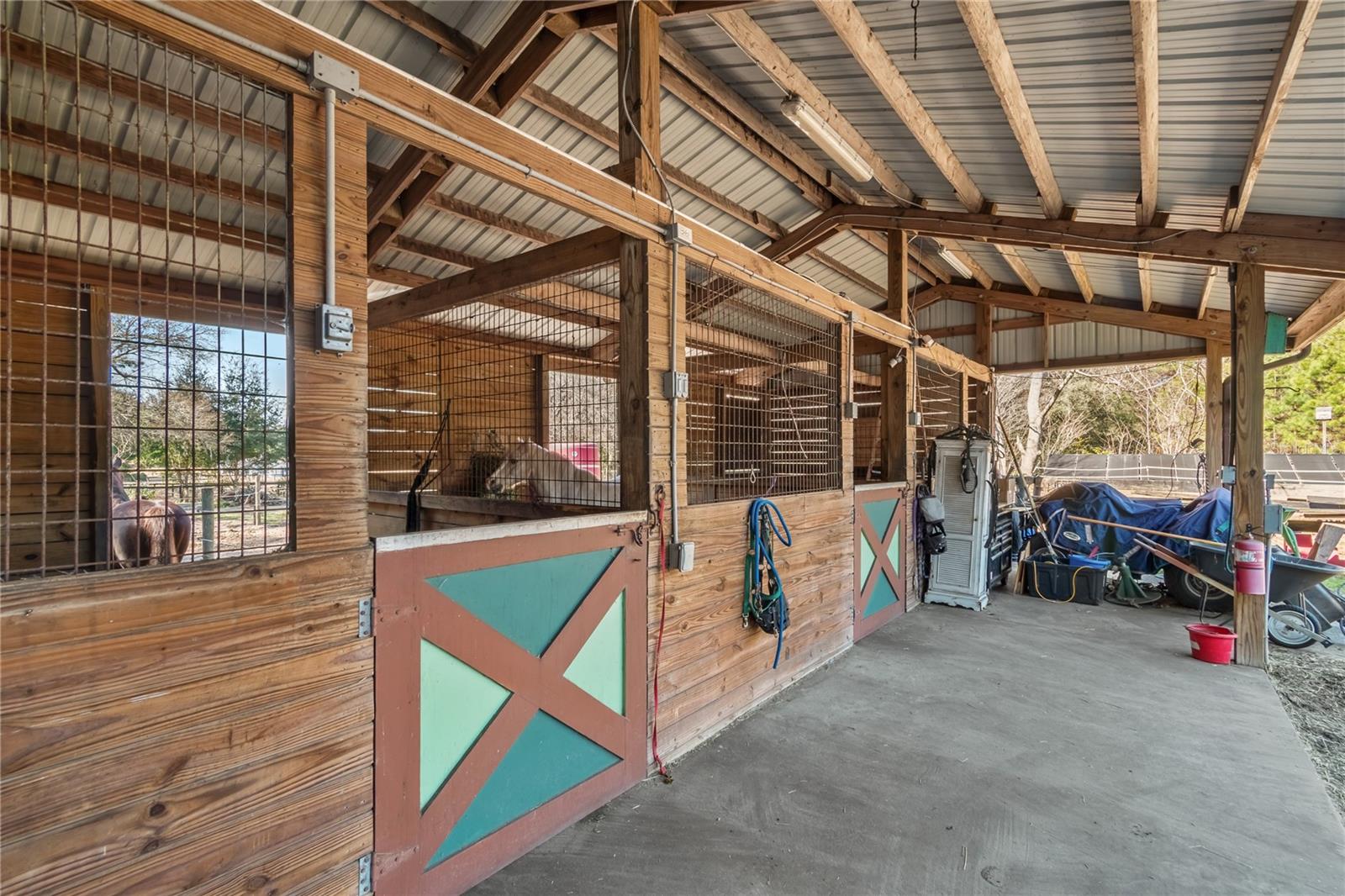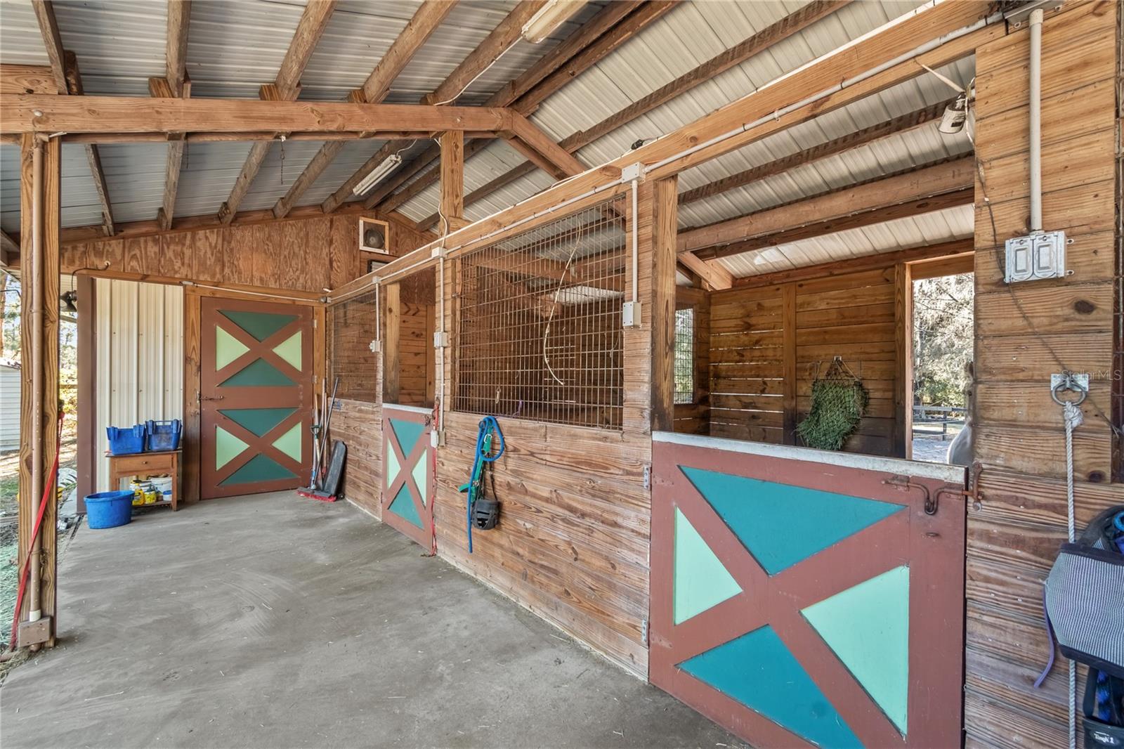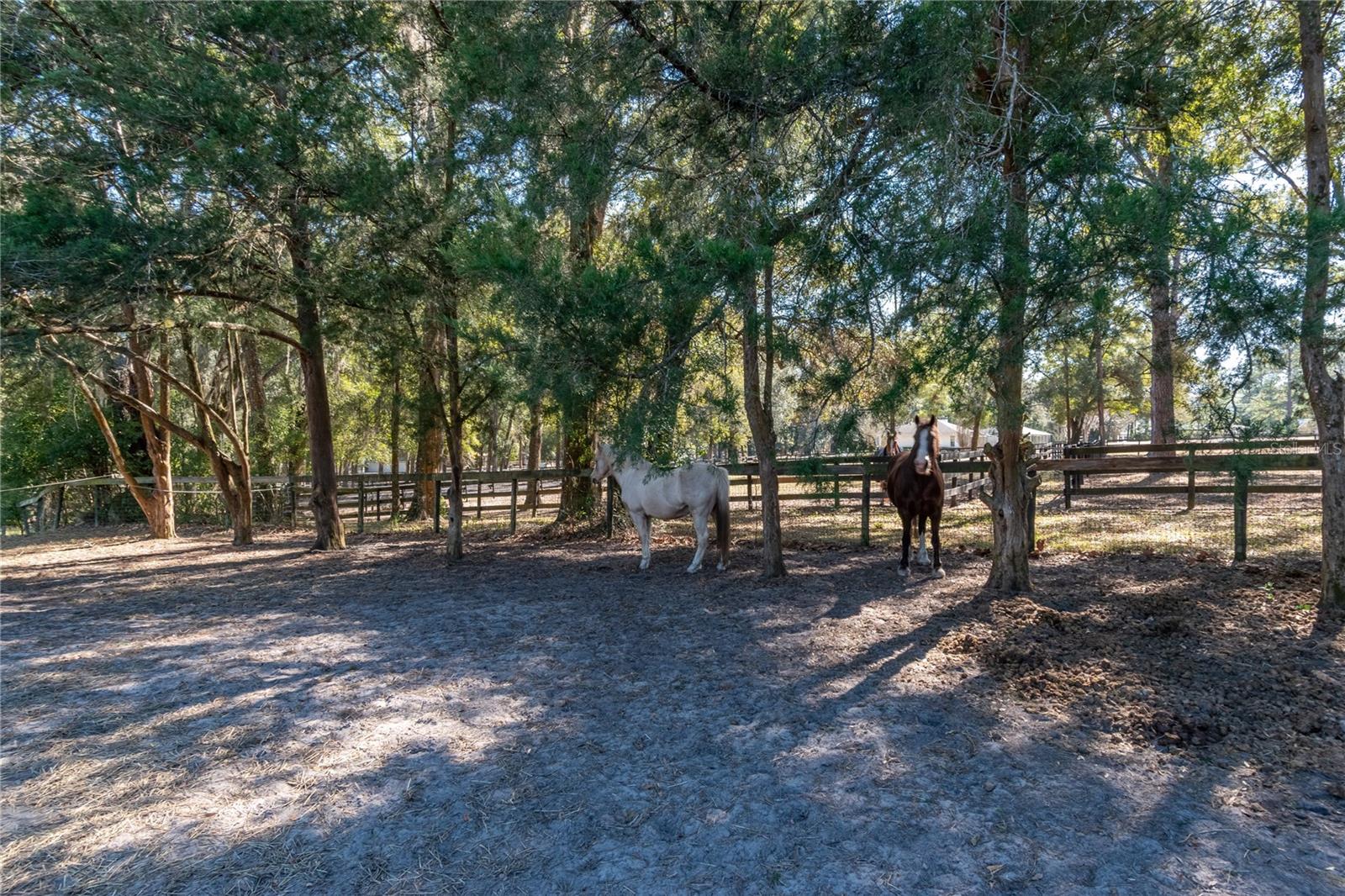 Set on 2.4 acres of gently rolling land within an established equestrian community, this inviting mini-farm offers privacy, functionality, and quiet country living. Fully fenced and gated, the property is framed by mature trees and open paddocks that create a peaceful countryside setting ideal for equestrian use. Centered on the land is a 3-bedroom, 2-bath residence with a welcoming covered entry and attached two-car garage. Inside, the home is light and comfortable with a well-designed split-bedroom layout and inviting living spaces, highlighted by a wood-burning fireplace. The kitchen offers ample cabinetry and counter space and connects easily to the main living area for everyday living and entertaining. A fully enclosed sunroom provides a relaxing space to enjoy natural light year-round. Beyond, a screen-enclosed pool area features a sparkling in-ground pool and above-ground spa, creating a private outdoor retreat. A pergola connects the pool area to a separate workshop and storage building, adding flexibility for hobbies or equipment. Equestrian amenities include a shed-row style barn with four stalls and additional storage, with stall doors opening to turnouts, along with two board-and-wire fenced paddocks offering light shade and clear sightlines. Additional storage is provided by a separate shed and covered carport. Located in a horse-friendly community with no HOA fees and convenient access to Ocala’s equestrian venues, shopping, and services, this property offers a rare opportunity to enjoy space, versatility, and a relaxed equestrian lifestyle with easy access to modern conveniences.