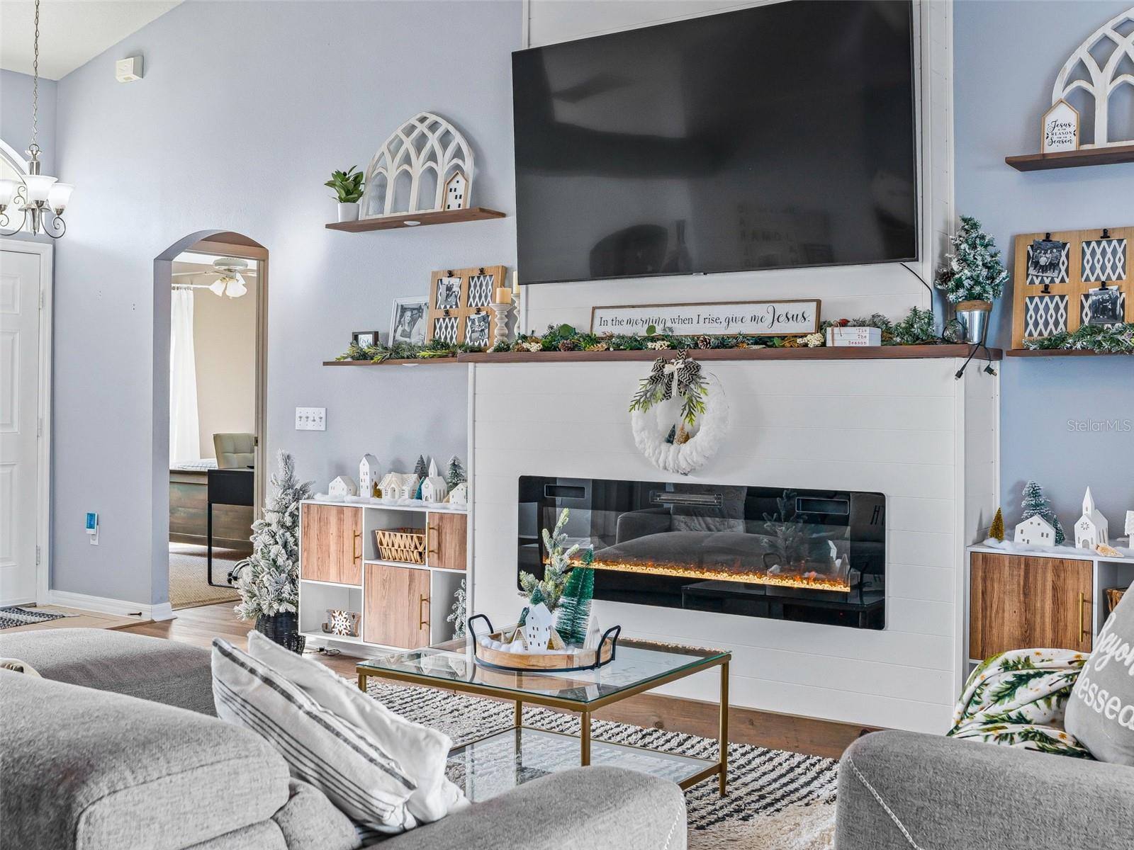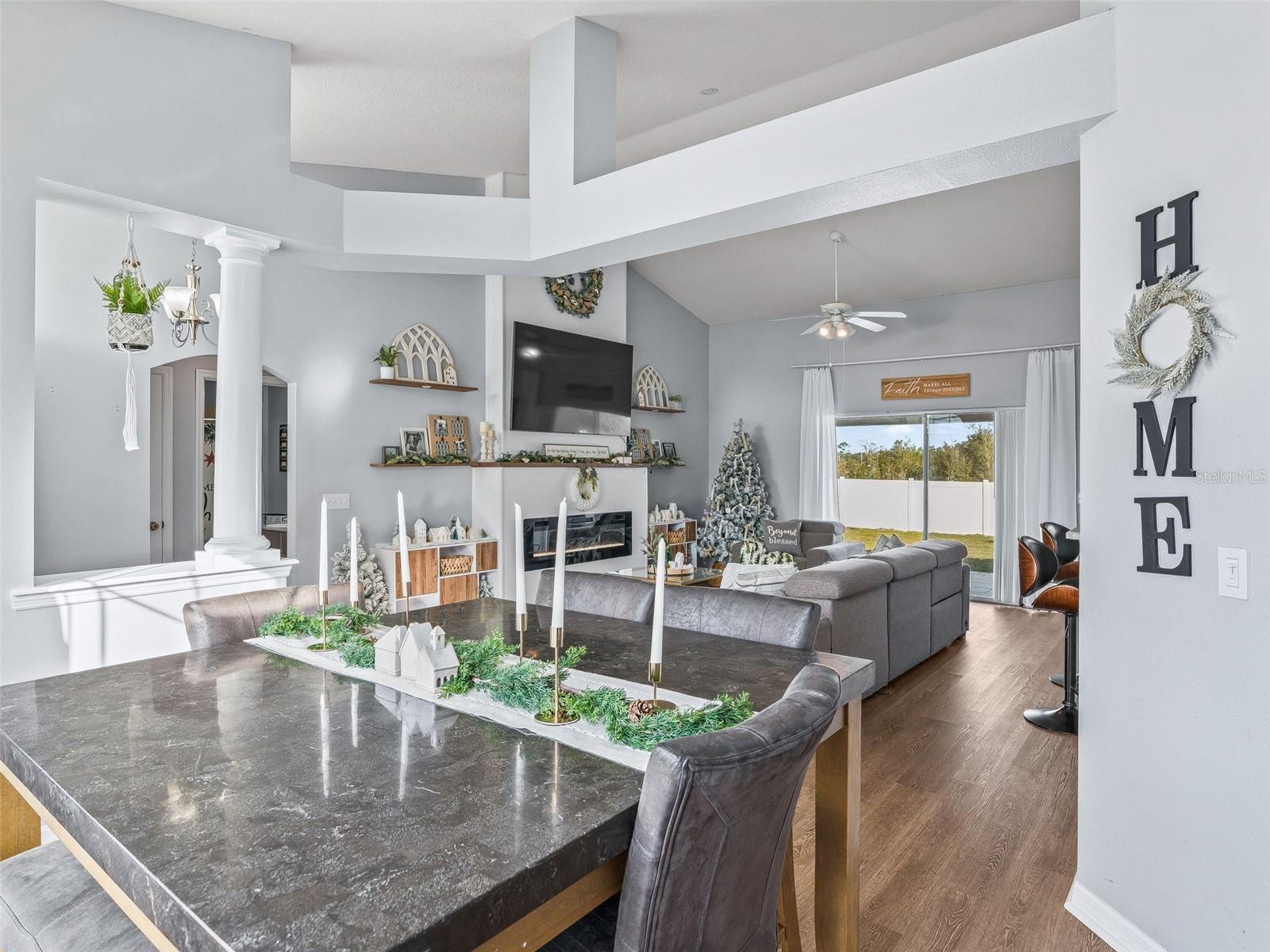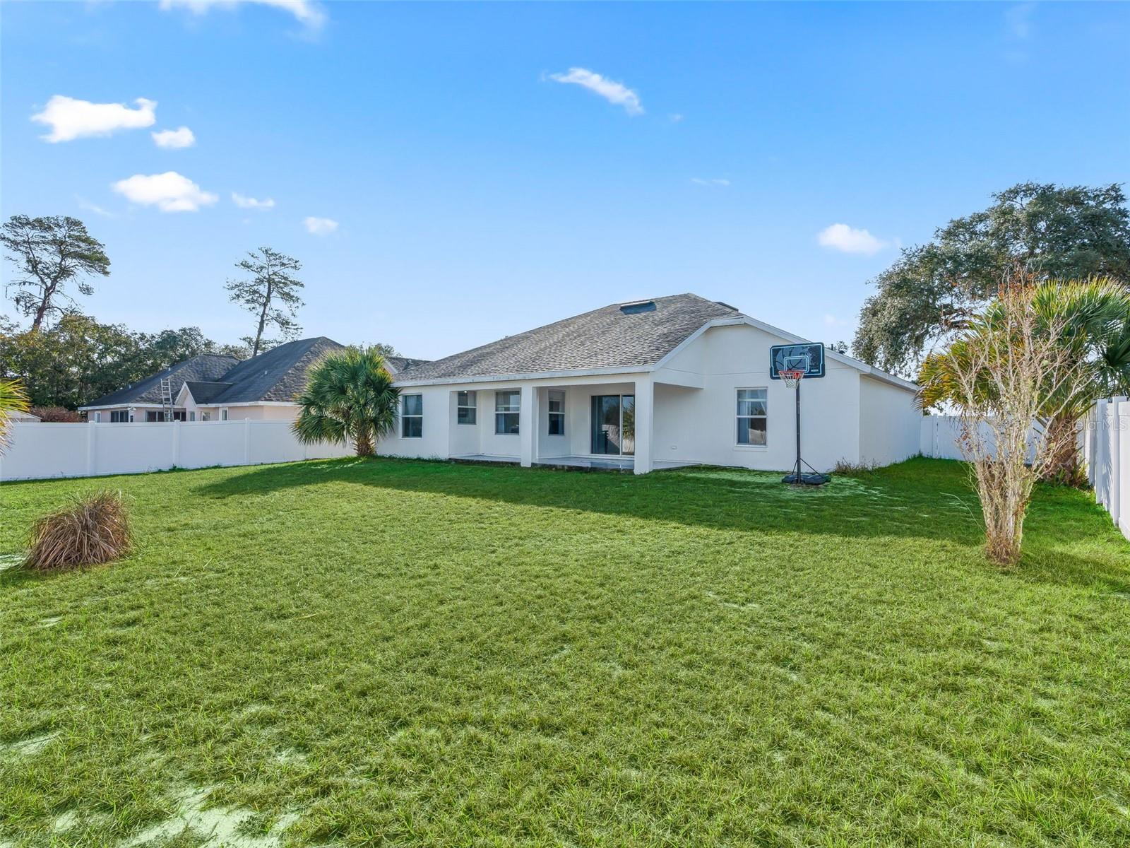 Fabulous find in Marion Oaks - NO HOA! Beautifully upgraded and updated home on a spacious, elevated lot overlooking the Marjorie Harris Carr Cross Florida Greenway - a Florida State Park! The recently painted home offers a covered front porch leading inside to the open floor plan. Soaring vaulted ceilings, large windows and beautiful luxury vinyl plank flooring enhance the living space. The living room offers a floor to ceiling shiplap fireplace wall with electric fireplace and floating shelves. The open kitchen offers light maple cabinetry with coordinating countertops and a suite of stainless steel appliances. The primary suite is tucked in the back of the home overlooking the backyard and offers a walk-in closet, built-in closet and ensuite bathroom with dual sink vanity, walk-in shower, garden tub and separate water closet. On the opposite side of the home are two additional bedrooms with a shared bathroom with shower/tub combo. The covered patio boasts tile flooring, a wood-look ceiling and overlooks the backyard complete with privacy fence - plenty of room for a pool, shed or patio expansion. You will also appreciate the indoor laundry closet and attached 2 car garage. Updates include: NEW ROOF 2023, NEW HVAC 2024, NEW HYBRID HOT WATER HEATER 2021! There is also a solar panel system in place to generate electricity. NO HOA! Please enjoy the attached video & 3D tours and schedule a private tour before it's too late!