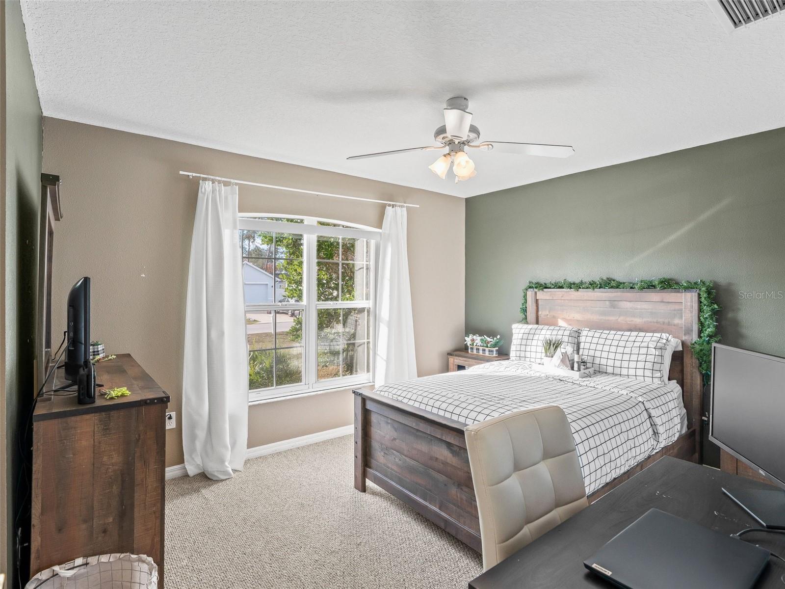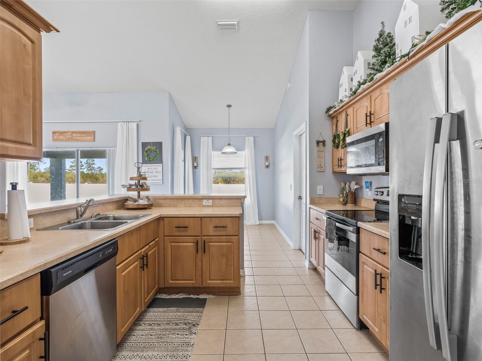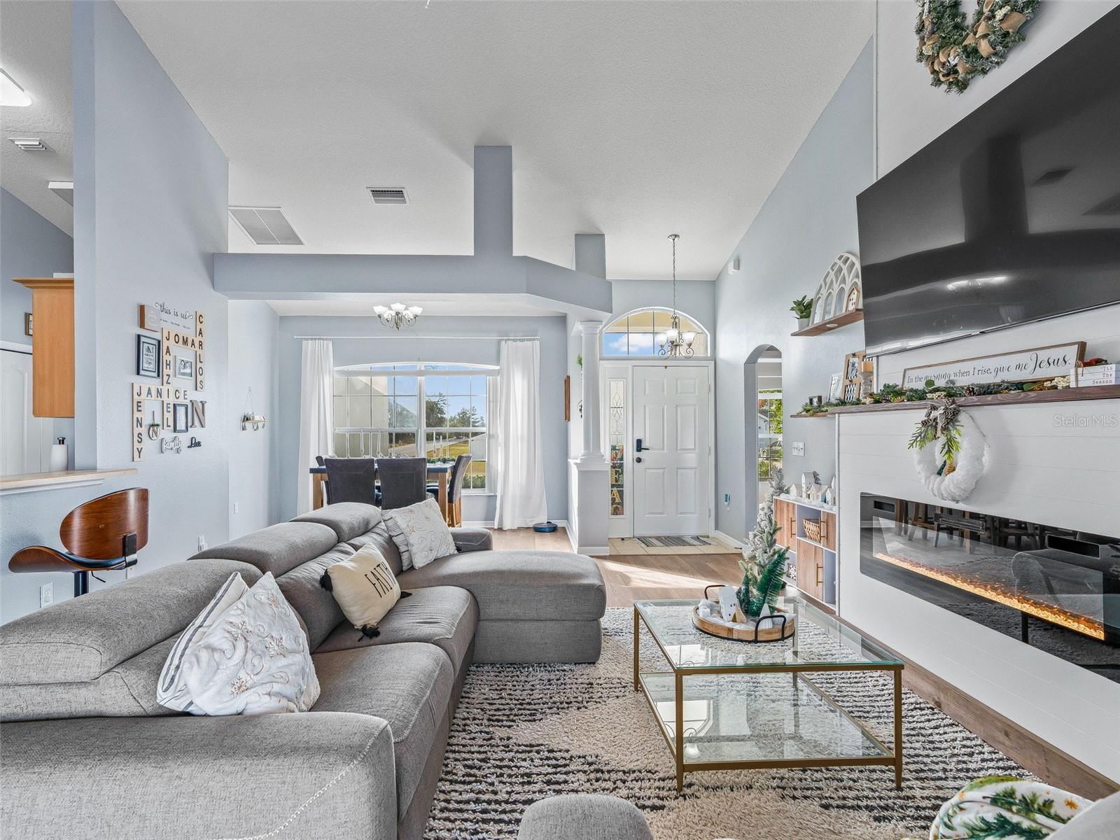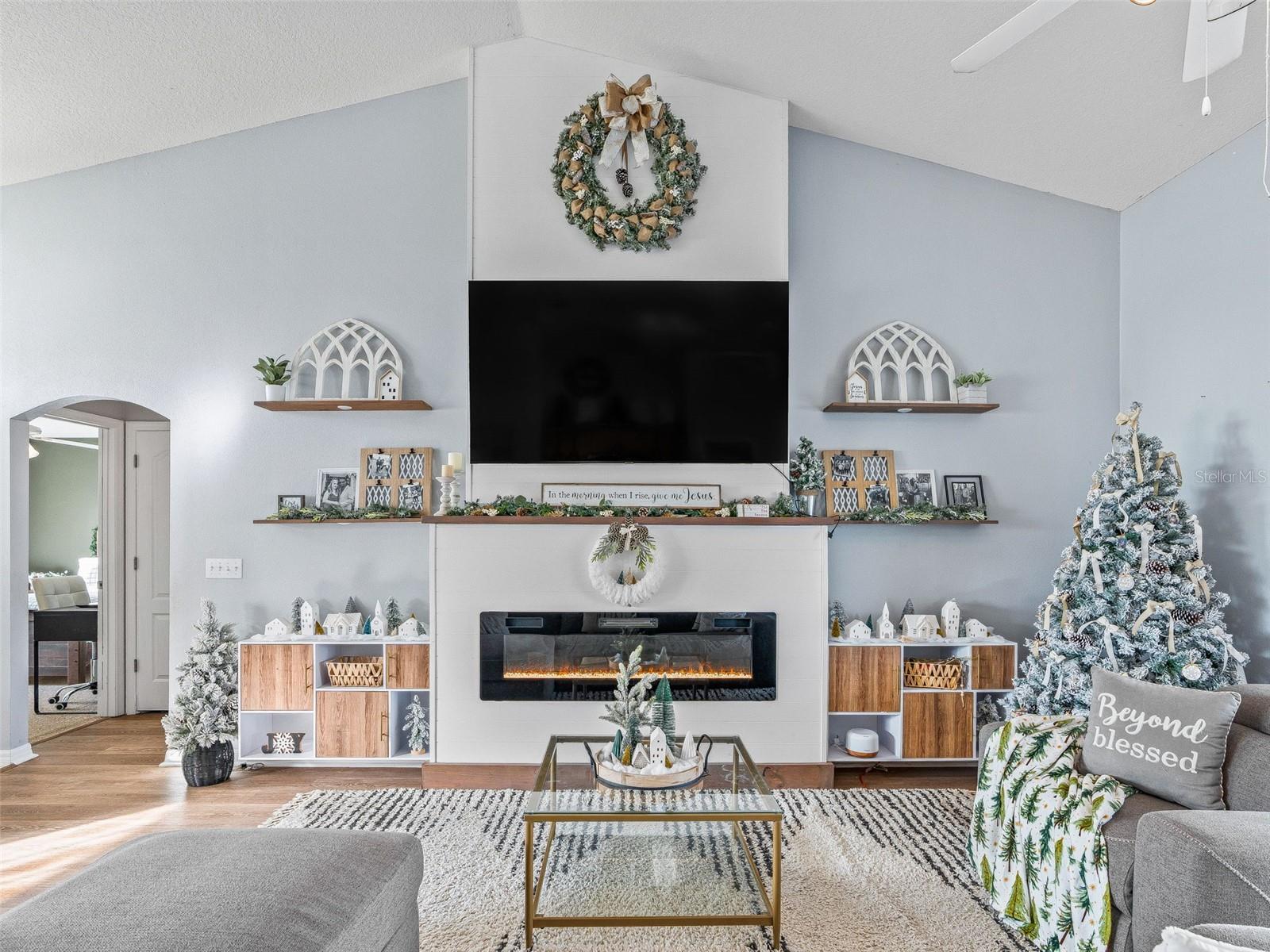 Fabulous find in Marion Oaks - NO HOA! Beautifully upgraded and updated home on a spacious, elevated lot overlooking the Marjorie Harris Carr Cross Florida Greenway - a Florida State Park! The recently painted home offers a covered front porch leading inside to the open floor plan. Soaring vaulted ceilings, large windows and beautiful luxury vinyl plank flooring enhance the living space. The living room offers a floor to ceiling shiplap fireplace wall with electric fireplace and floating shelves. The open kitchen offers light maple cabinetry with coordinating countertops and a suite of stainless steel appliances. The primary suite is tucked in the back of the home overlooking the backyard and offers a walk-in closet, built-in closet and ensuite bathroom with dual sink vanity, walk-in shower, garden tub and separate water closet. On the opposite side of the home are two additional bedrooms with a shared bathroom with shower/tub combo. The covered patio boasts tile flooring, a wood-look ceiling and overlooks the backyard complete with privacy fence - plenty of room for a pool, shed or patio expansion. You will also appreciate the indoor laundry closet and attached 2 car garage. Updates include: NEW ROOF 2023, NEW HVAC 2024, NEW HYBRID HOT WATER HEATER 2021! There is also a solar panel system in place to generate electricity. NO HOA! Please enjoy the attached video & 3D tours and schedule a private tour before it's too late!