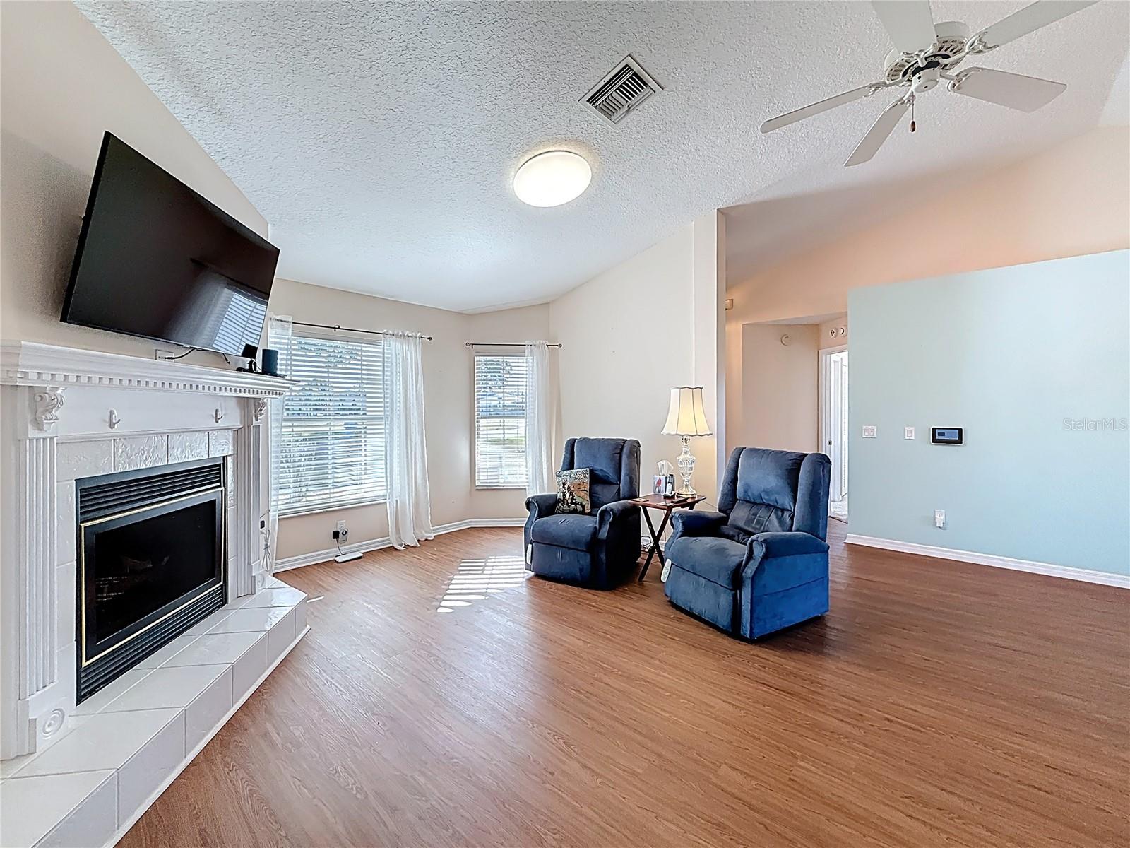 Beautifully maintained home with mature landscaping located in the quiet 55+ deed-restricted community of Quail Meadow, just a short walk to the clubhouse. This inviting residence offers a desirable split floor plan with 3 bedrooms and 2 bathrooms, featuring a very open concept enhanced by high cathedral ceilings, a gas fireplace, and a TV that conveys with the property. The cook’s kitchen includes a new refrigerator, Bose dishwasher, and space for a cozy breakfast table. The kitchen and living areas flow seamlessly into the Florida room, creating a bright and welcoming space ideal for everyday living and entertaining. Recent updates include a new roof (2024), recently updated A/C, three new Florida room windows in Florida room (2025), newer water heater, new exterior paint, and updated flooring, with additional flooring replaced in 2023. Additional features include a washer dryer conveniently located just off the kitchen, water softener, sprinkler system, new blinds, LeafFilter gutter system, new pavers on the back patio, new garage door opener (2022), and new ductwork. Relax on the enclosed back porch overlooking the beautifully landscaped backyard. A high-level security system with cameras provides added peace of mind. Low quarterly HOA fees of just $110 include access to a large clubhouse with weekly activities and a community pool. The community allows up to two pets with no weight restrictions. Ideally located near Publix, Walgreens, I-75, and the World Equestrian Center, offering horse shows, entertainment, and a variety of dining options. Buyer to verify all measurements and the most current HOA dues and requirements.
