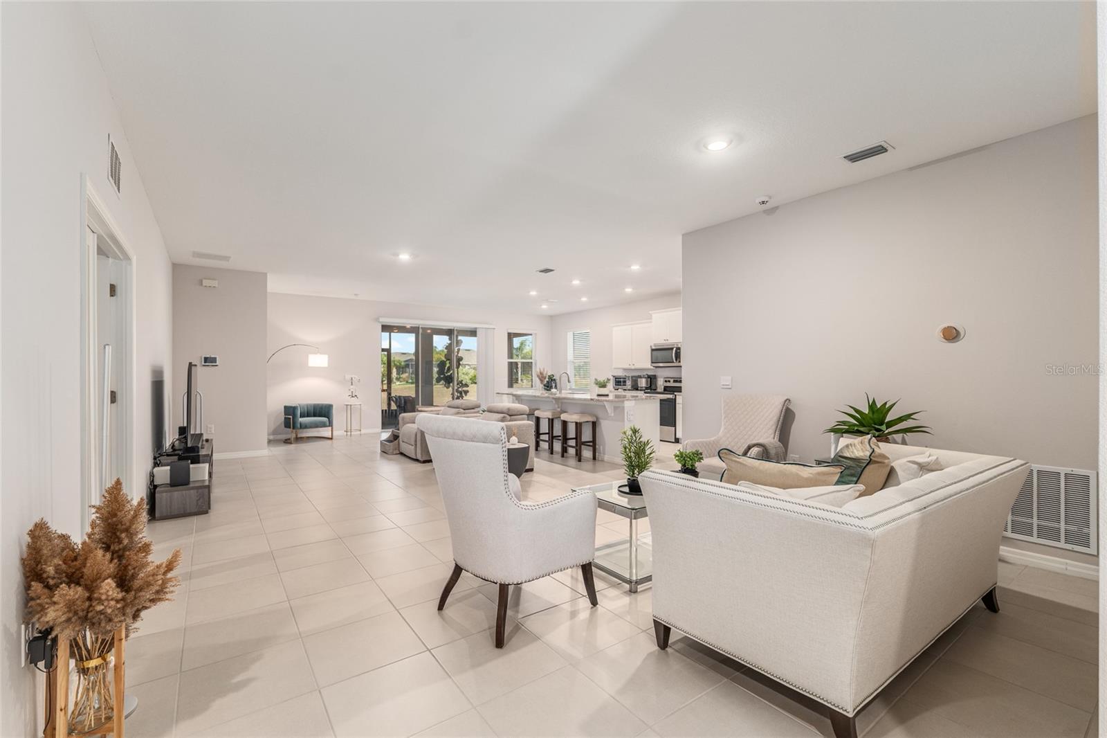This a 55+ community. Over $25,000 in premium upgrade are included. Welcome to this beautiful well maintain three bedroom/2 bathroom ranch - style home offering 1844 ft.² of comfortable living space in a desirable 55+ gated community. This home features a freshly painted interior and numerous premium upgrades already completed, saving you both time and money! Enhancements included: Commercial grade, epoxy garage floor, leaf guard gutters, screen lanai enclosure, tinted windows, and a nest smart thermostat. All carefully added for convenience and efficiency. The open concept layout showcases a spacious kitchen with a large island, perfect for entertaining or everyday living. A split bedroom floor plan provides added privacy, while the primary suite offers a walk-in closet with a double vanity. The screen lanai ideal for enjoying peaceful Florida mornings. Additional features include a two car garage. The HOA covers: lawn care, trash service, the common area maintenance, allowing for a truly low maintenance lifestyle. Community amenities include: clubhouse, pool, fitness center, scenic walking paths. This communities is conveniently located near state Route 200 with easy access to shopping, dining, hospitals and golf courses. This home offers exceptional quality, comfort, and value. Schedule your private showing today and discover why this is the smarter choice for a relaxed Florida living.