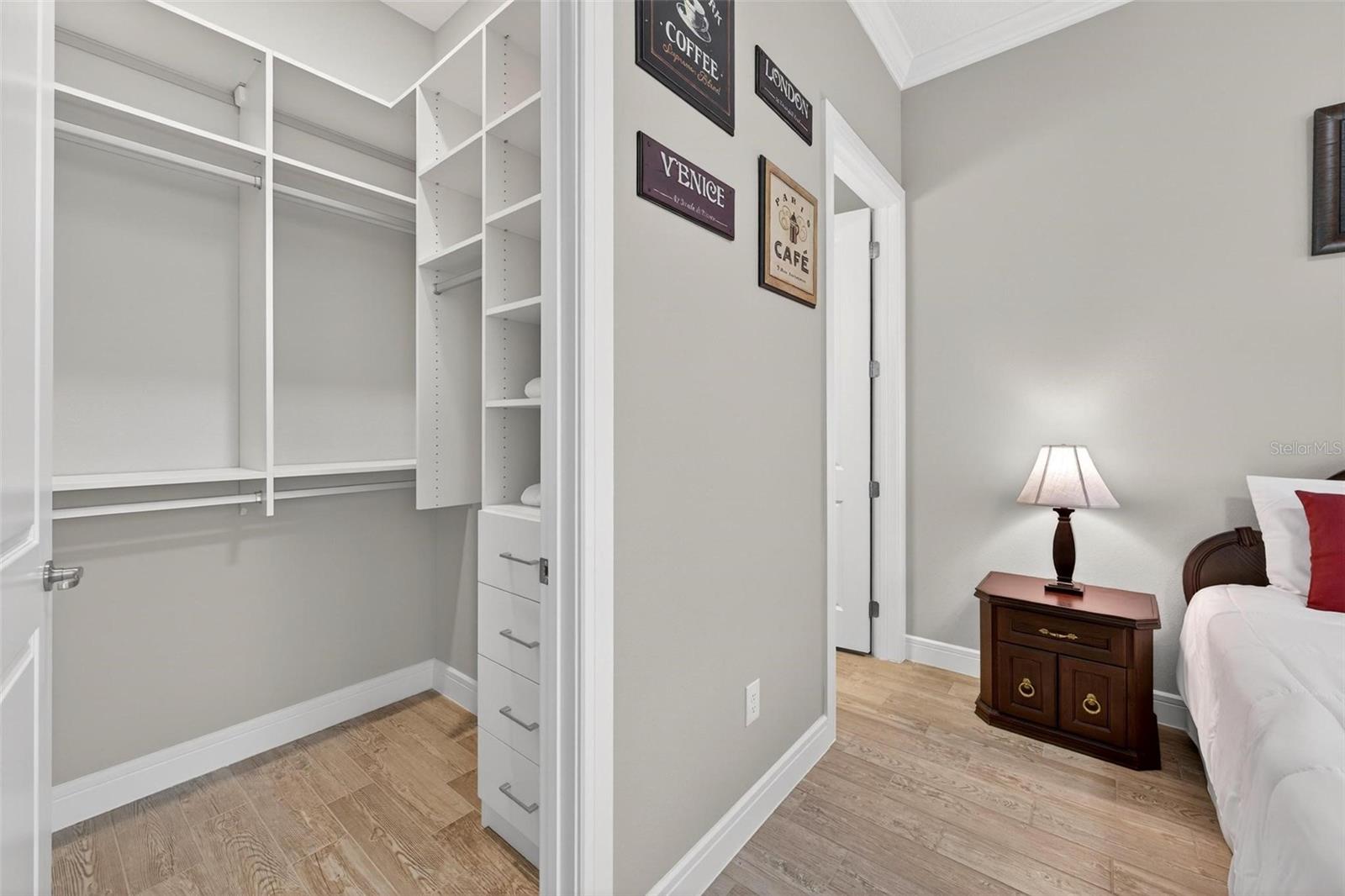Exceptional Renown Model with Peaceful Water & Golf Course Views in Del Webb Stone Creek! Tucked away on a premium lot on a quiet cul-de-sac, this beautifully appointed Renown model offers a rare combination of elevated design, thoughtful upgrades, and breathtaking views of Reflection Bay and the golf course. Designed for comfort, entertaining, and effortless living, this home showcases refined finishes and custom enhancements throughout. The thoughtfully designed floor plan features three spacious bedrooms, each with its own private en-suite bath, plus an additional half bath for guests. Porcelain tile flooring and crown molding flow throughout the home, complemented by custom California Closets throughout. At the heart of the home, the gourmet kitchen impresses with quartz countertops, designer backsplash, stainless steel appliances including double ovens, beverage center and a smart refrigerator, under-cabinet lighting, and a walk-in pantry, creating both style and functionality. Indoor living seamlessly transitions outdoors to a private resort-style retreat. Enjoy a heated pool and spa, outdoor kitchen and bar, motorized screens, electric awnings, pool bath, and a screened birdcage with built in trim lighting, all perfectly positioned to capture stunning sunset views. Inside and outside speakers enhance the ambiance, while outdoor cameras provide peace of mind. Additional highlights include motorized blinds throughout, a well-appointed laundry room with cabinetry and utility sink. The extended three-car garage is fully insulated and drywalled, finished with epoxy flooring, storage cabinets and a mini-split system, ideal for climate-controlled storage or workspace. Enhanced landscaping and a screened front entry complete this remarkable residence, offering privacy, beauty, and curb appeal. This is not simply a home, but a fully curated lifestyle property, where every detail has been thoughtfully designed for comfort, convenience, and elevated living. Opportunities to view a beautifully completed home with this level of finish and setting are limited within Del Webb Stone Creek, call to schedule your private tour today!