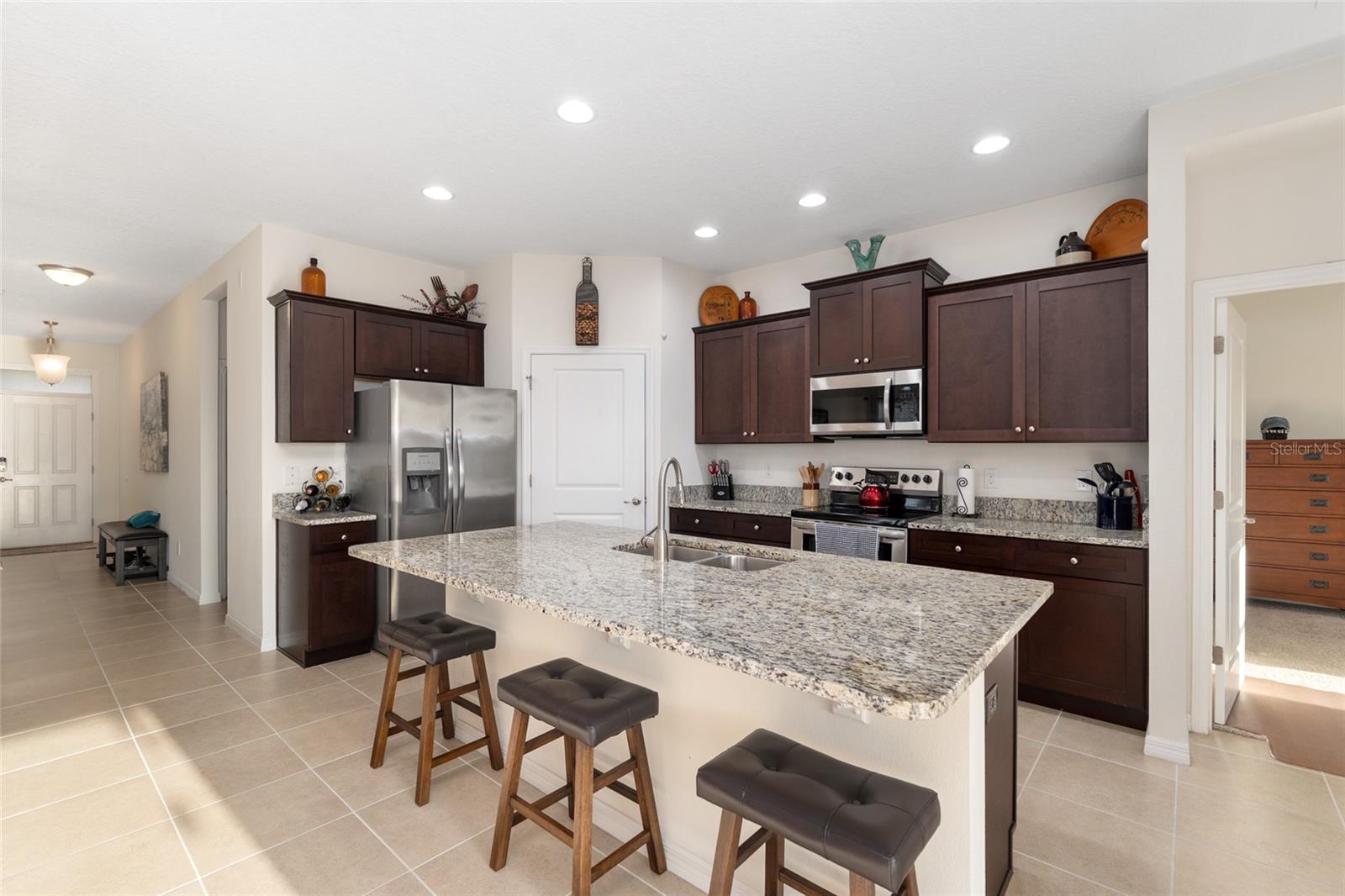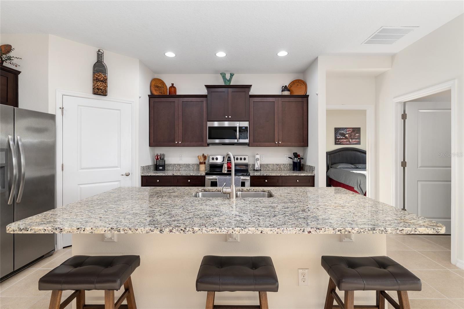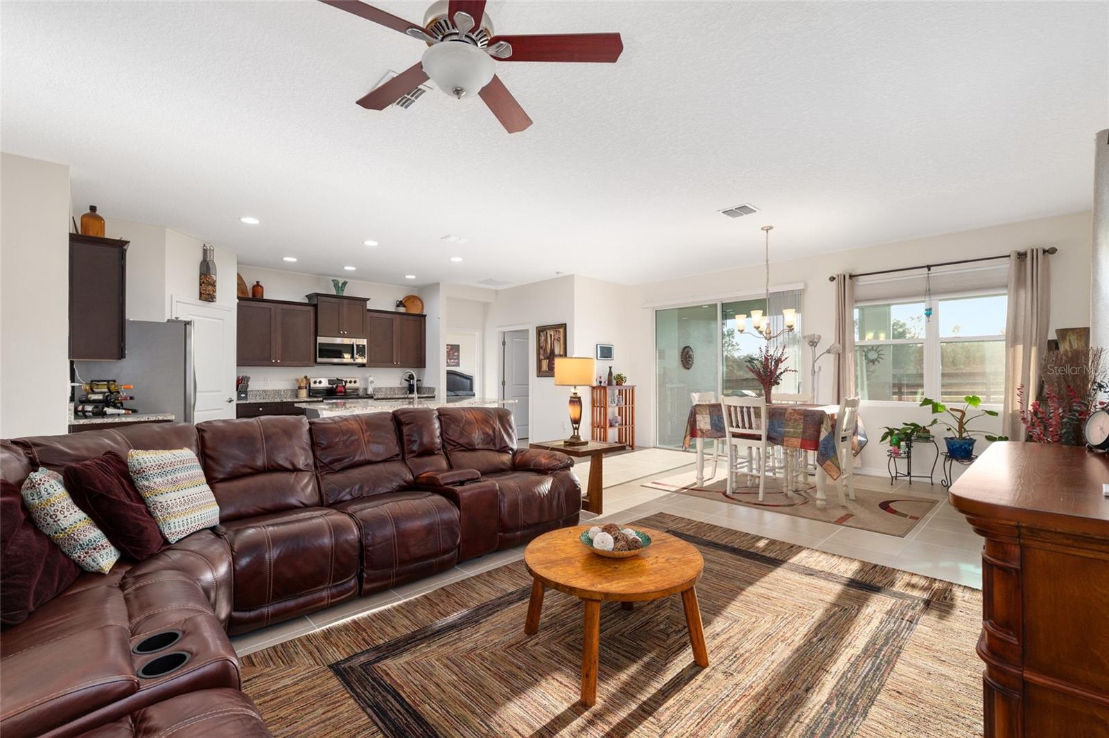 Welcome to this beautifully maintained 2-bedroom, 2-bath home with a versatile flex room in the desirable 55+ gated community of JB Ranch. Designed with a split-bedroom floor plan, this home offers both privacy and functionality—perfect for guests, a home office, or hobby space. The heart of the home is the open island kitchen, featuring granite countertops, stainless steel appliances, a walk-in pantry, and a spacious dining area, ideal for everyday living and entertaining. The oversized living room flows seamlessly to a screened-in lanai, creating the perfect indoor-outdoor retreat. Recent updates include new exterior paint, new screens and epoxy driveway/garage flooring, enhancing the curb appeal. Interior and exterior Blink security cameras will convey, 13 total. Modern craftsmanship and pride of ownership shine throughout this move-in-ready home. Located in JB Ranch, residents enjoy amenities including a resort style pool, fitness room, and a pickleball court. The HOA covers gated entry, access to all amenities, and trash pickup, providing a low-maintenance lifestyle. An added bonus—VA assumable mortgage available upon approval at an incredible 2.25 interest rate. Conveniently located near shopping, dining, hospitals, and I-75, this home offers comfort and convenience. Don’t miss your opportunity—schedule your private showing today!