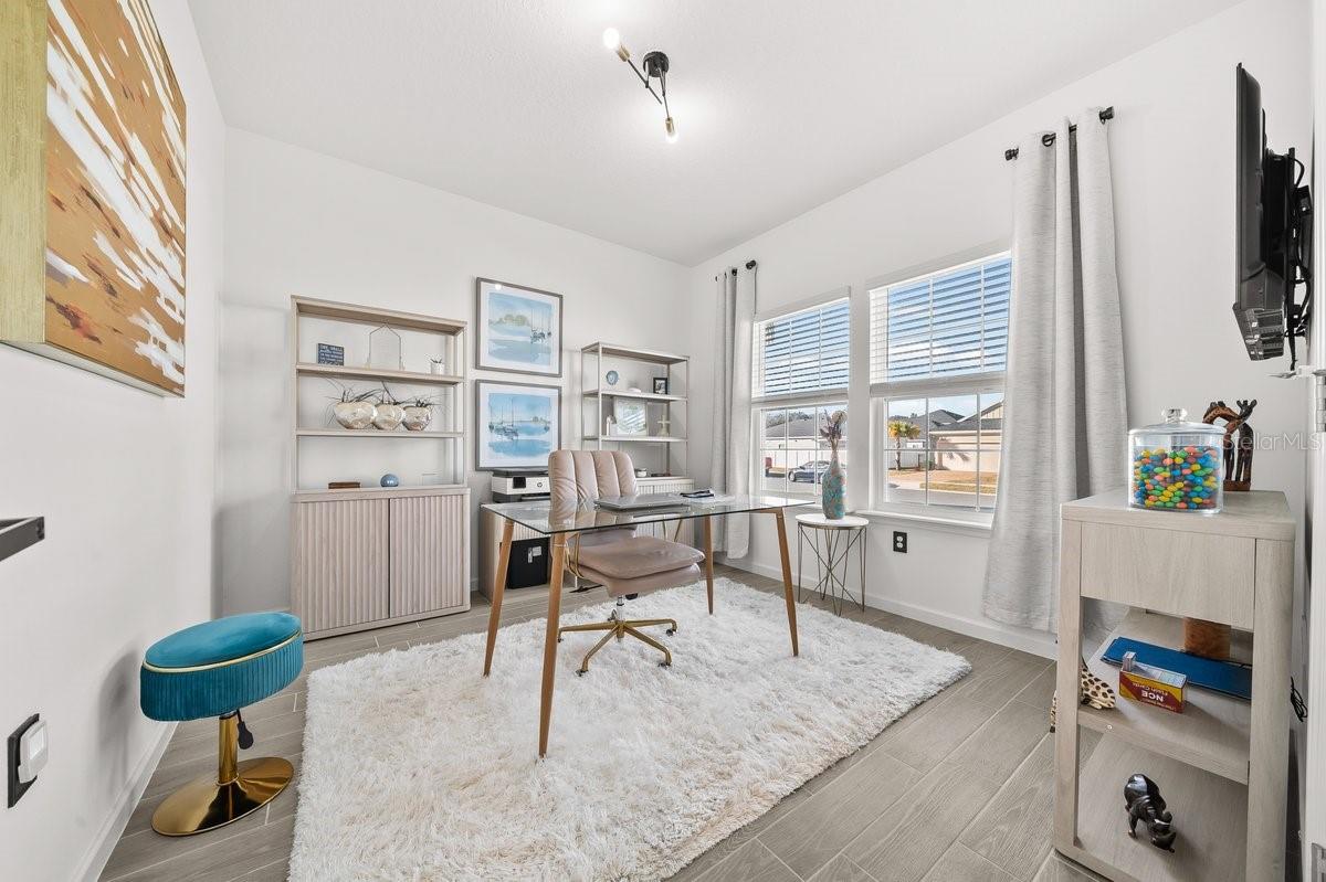 Better than new! This 2024 Heath Preserve home showcases elevated design with modern conveniences on an oversized lot. Exterior appointments include brick pavers, curated landscaping, new coach lighting, and a glass front entry door. The natural light-filled interior offers a 3 bed /2 bath open layout plus a bonus room with French doors. The heart of this home features quartz counters, stainless steel appliances, glass tile backsplash and a frosted glass double-door pantry. Other enhancements include under-cabinet motion lighting, upgraded hardware, built-in soap dispensers, dimmer switches, and modern ceiling fans throughout. The laundry room includes added cabinetry and a utility sink. Raised outlets throughout the home and lanai allow for seamless TV mounting. The living area is designed for both relaxation and entertaining, featuring a color-changing electric fireplace and sliding glass doors that open to a cabana-style screened-in lanai. An extended paver patio with landscaping creates a serene outdoor living space, perfect for enjoying Ocala’s indoor-outdoor lifestyle. This property has no rear neighbors, and there is plenty of room for a pool. Must see to appreciate!! The location offers convenient access to I-75, golf courses, shopping, dining, hospitals, Historic Downtown Ocala, and the World Equestrian Center! Sellers will consider all reasonable offers. TVs, window treatments, and all indoor and outdoor furniture are negotiable.