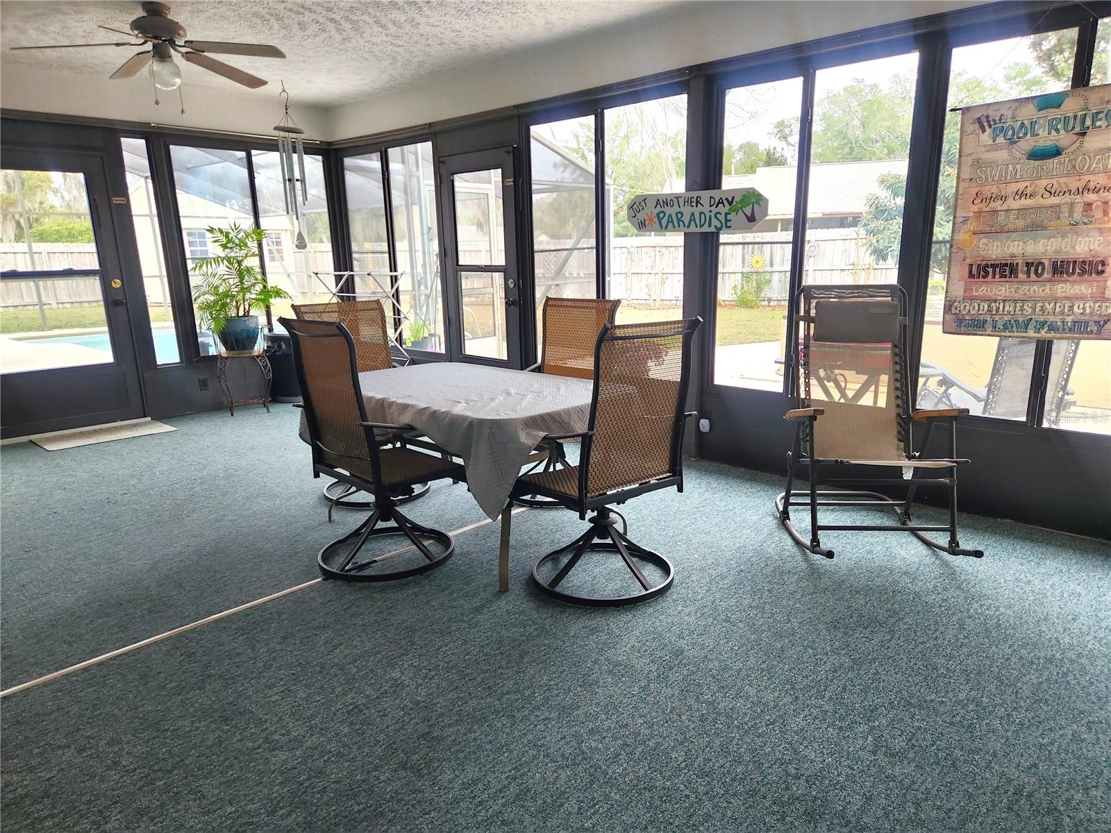 Lovely pool home on a corner lot with great curb appeal and so much to offer. This 3/2 split plan home features a 2 car garage, wood burning fireplace in the living room, light and bright kitchen with all appliances, large primary bedroom with a walk-in closet, a tiled step-in shower in the primary bathroom and a large glass enclosed porch that's perfect for entertaining. For your outdoor enjoyment you'll find a solar heated screened pool, a pergola area for cookouts or a future hot tub and a storage shed. Recent updates include: New Roof in 2024, New Refrigerator and Pool Rescreened in 2025, New Water Softener in 2023, New Solar Pool Heater and Storage Shed in 2022. Water heater, pool heater and the house run off solar panels for energy efficiency. Well maintained home that is move-in ready.