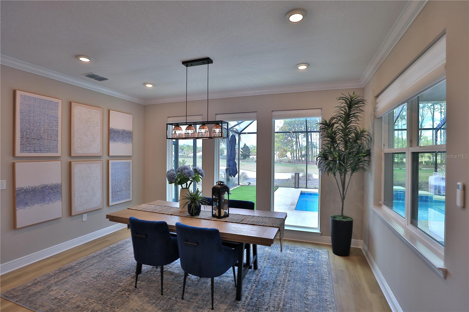 Experience the Florida lifestyle in this stunning Dunbar model! This home boasts a desirable triple-split floor plan featuring three bedrooms and three full baths, providing both privacy and functionality for relaxation and entertaining. Completed in fall 2024, this beautifully designed home is located in Longleaf Ridge Phase V, of On Top Of The World, a 55+ community offering refined new-construction living with thoughtful upgrades throughout. The upgraded flooring and countertops, premium appliances, and custom-built cabinetry and a beverage bar enhance both the style and storage of the home. Plus a full-house water softener and filtration system. Positioned on a golf-course tee-box view lot, the open living areas flow seamlessly into a screened-enclosed, heated saltwater pool and lanai, with professionally designed landscaping creating the perfect space for entertaining or unwinding while enjoying tranquil views. Includes ceiling fans and a natural gas hookup for grilling. This move-in-ready residence combines modern finishes, quality construction, and a prime Ocala location, delivering comfort, sophistication, and low-maintenance living in a sought-after community. Residents have access to the resort-style community at On Top of the World, featuring multiple golf courses, golf cart-friendly streets, on-site restaurants, cafes, and shops. With vibrant social hubs, fitness centers, and wellness programs, it’s a convenient and lively place to live. Don’t miss out on this exceptional opportunity!