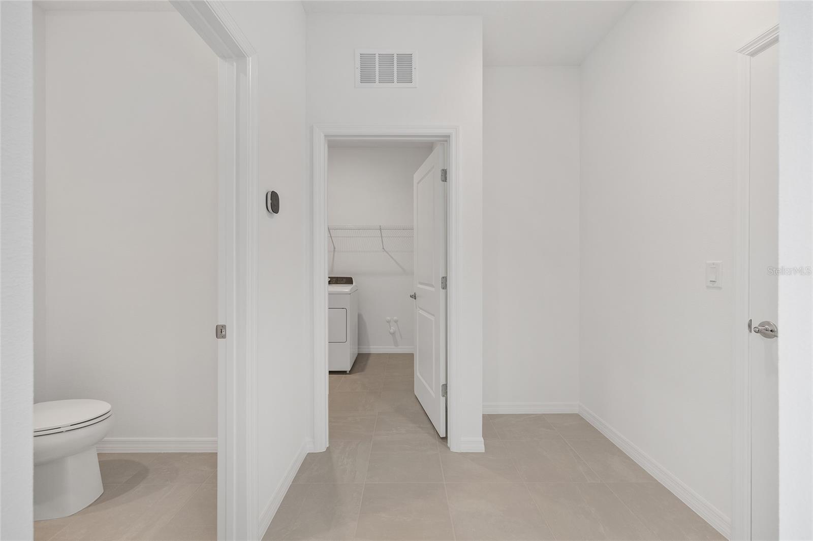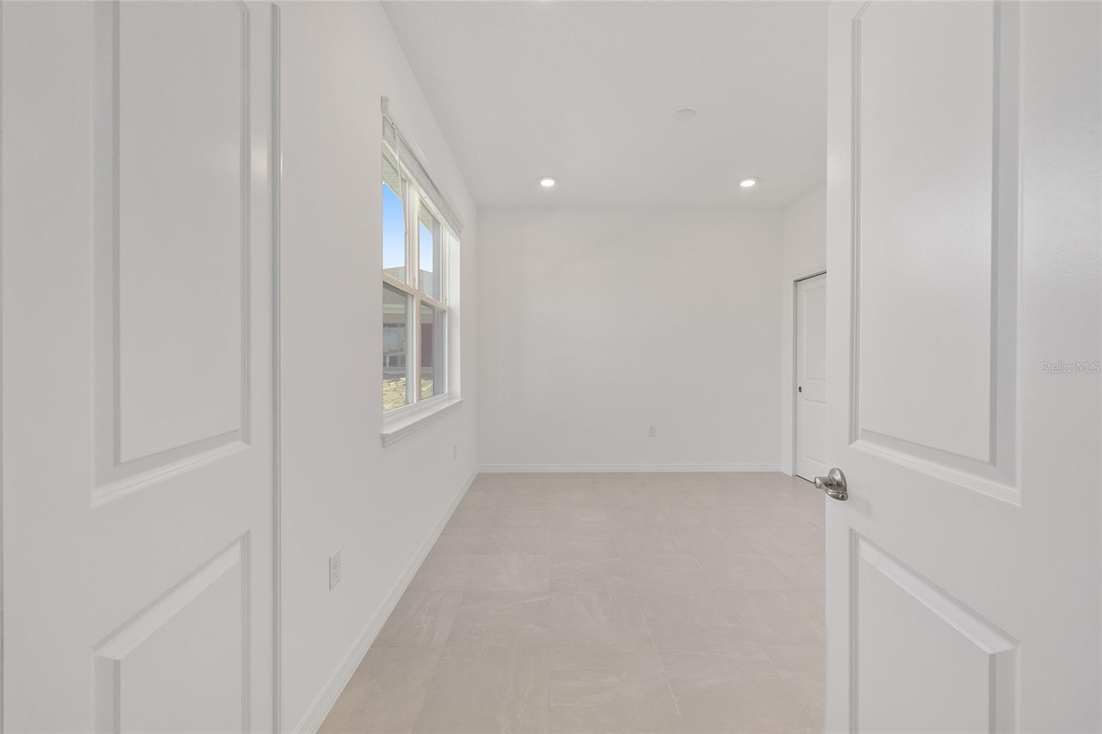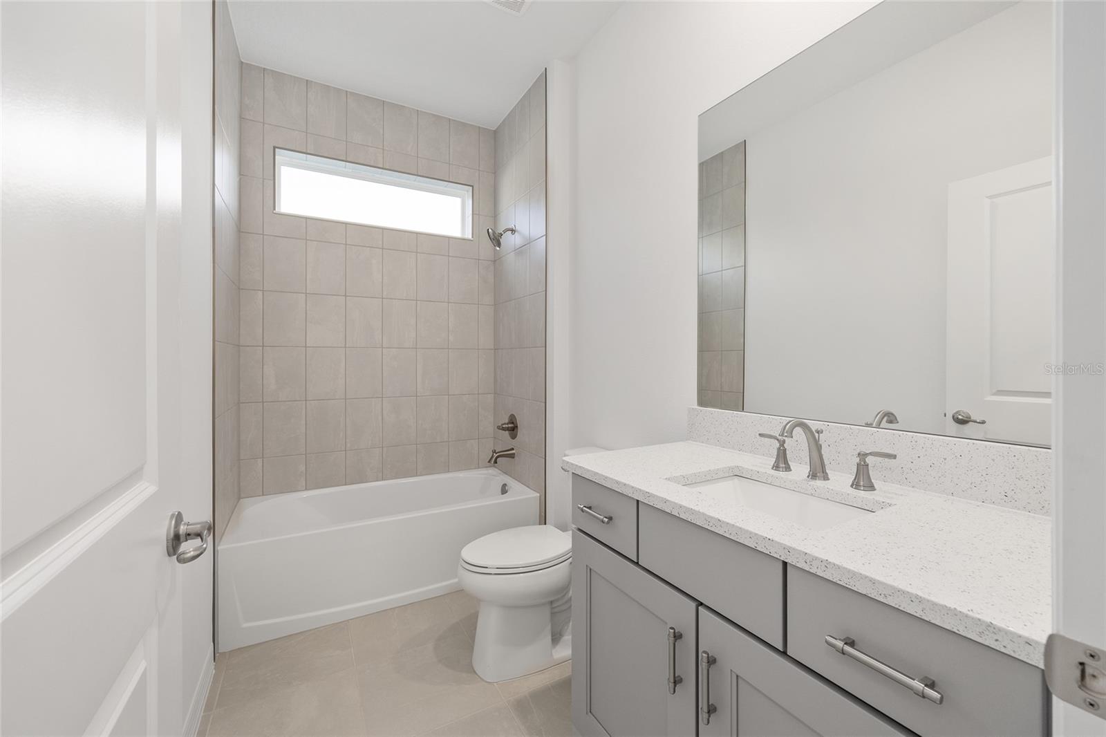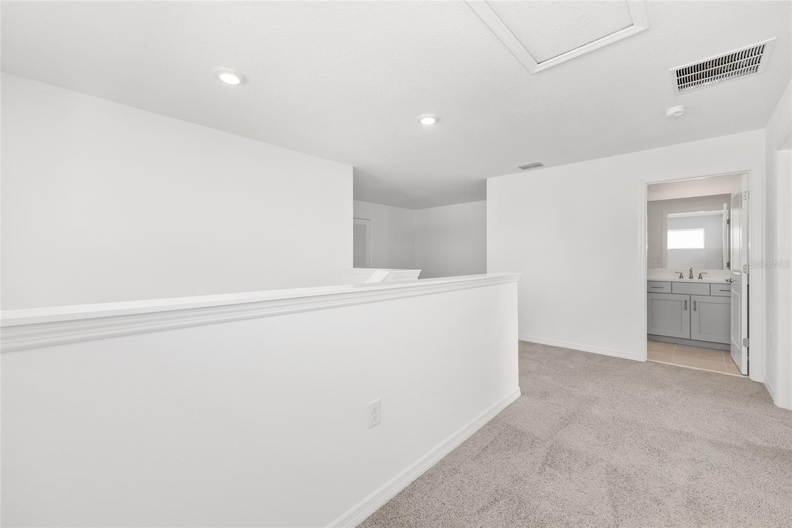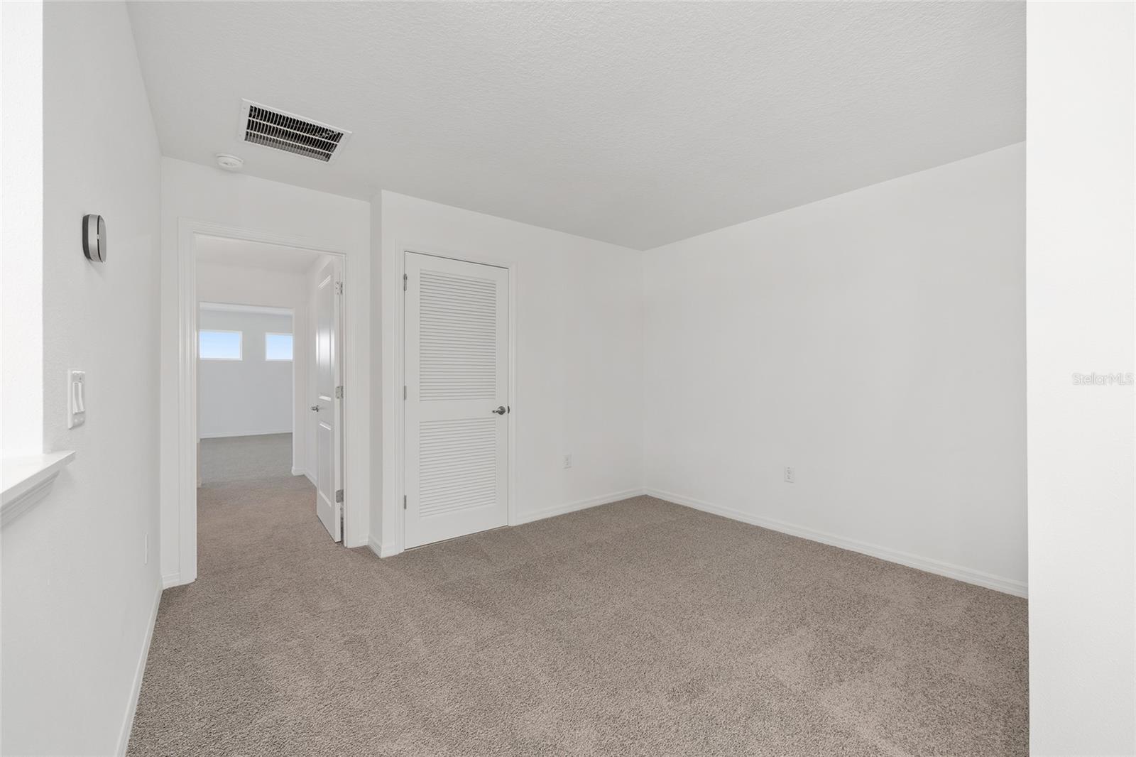 Welcome to the Marigold, a beautifully crafted new-construction home offering 5 bedrooms, 3.5 baths, and 3,374 sq. ft. of living space in the highly desirable Calesa Township community. The first floor features tile flooring throughout and is designed for both everyday living and entertaining. The open-concept layout includes a spacious great room, dining room, and a stylish kitchen with and oversized island and pantry. A private nest provides the perfect space for a home office or flex room. Sliding doors open to a generous covered back patio, complemented by a covered front porch, laundry suite, and a 3-car tandem garage. Upstairs, plush carpeting enhances comfort throughout the second floor, where the private owner’s suite serves as a true retreat. The spa-inspired owner’s bath features dual vanities with quartz countertops, modern cabinetry, and expansive mirrors. A glass-enclosed walk-in shower with designer tile surround creates a clean, contemporary feel, while the spacious layout offers both function and elegance—ideal for a relaxing start or end to the day. A large walk-in closet completes the suite. The second level also includes a central loft, two additional bedrooms, and a full bathroom, offering ample space for family and guests. With nearly 5,000 total square feet including garage and covered outdoor living areas, this home blends modern finishes, thoughtful design, and quality construction within a vibrant master-planned community offering resort-style amenities, scenic trails, and an exceptional lifestyle.