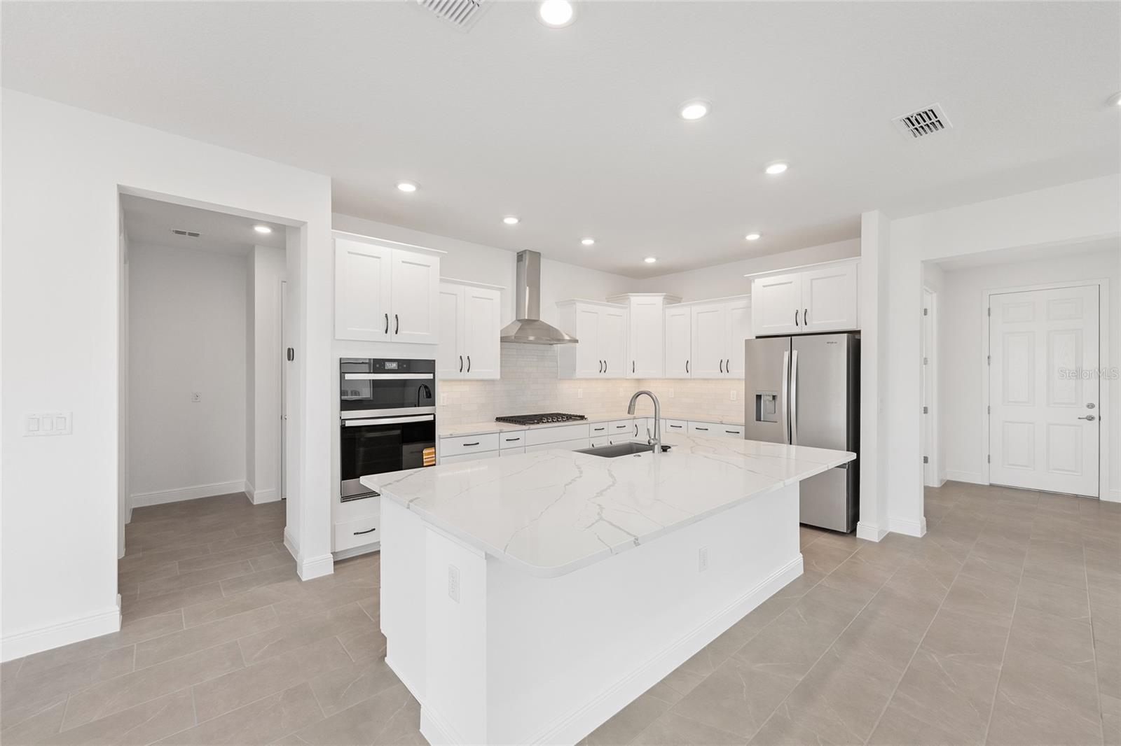 Welcome to this stunning new construction Ariana model in the desirable LongLeaf Ridge community at On Top of the World. This home features 2 bedrooms, 2 bathrooms, and a versatile flex room with French doors. The open-concept floor plan flows seamlessly with tile flooring throughout and a modern kitchen boasting stainless steel appliances, built-in oven and microwave, center island, and quartz countertops. The spacious master suite offers an en suite bathroom with double vanity, zero-entry tiled walk-in shower, and a walk-in closet. Step through the sliding glass door to a screened lanai and enjoy the indoor-outdoor living. This home combines modern style, functionality, and comfort in an active-adult community with resort-style amenities. Call for your private showing today!