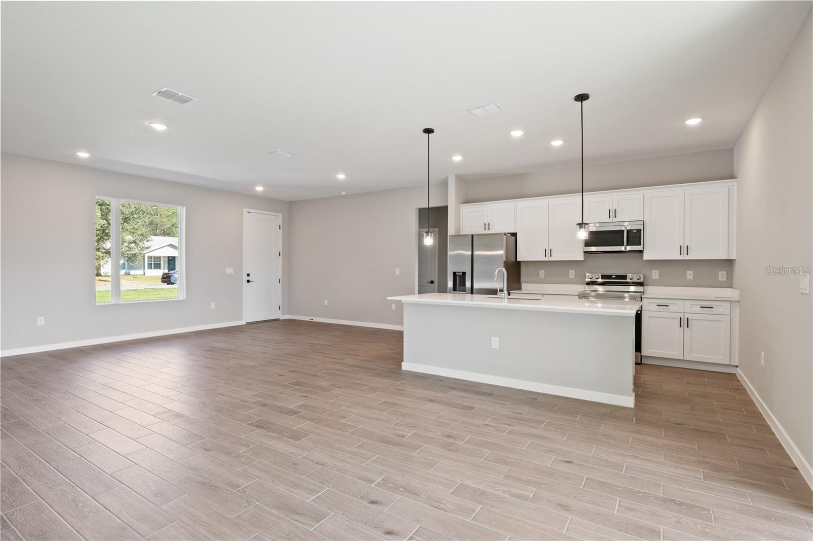 One or more photo(s) has been virtually staged. BUILDER WILL CONTRIBUTE UP TO $15,000 TOWARDS BUYERS CLOSING COSTS/PREPAIDS AND/OR A MORTGAGE RATE BUYDOWN (with a Preferred Lender). Bimini- This amazing home boasts a large open floorplan with tall ceilings and plenty windows and an 8 ft slider for a bright, airy, open feeling. This elegant home offers 3 Generous sized bedrooms and 2 baths. Enter the home to a wide & open entry leading to the massive great room including a spacious dining area. The large chef’s kitchen overlooks the great room & dining area and includes quartz counter atop solid wood cabinets with soft closed doors and drawers with elegant hardware. A large, centered island completes this dream room. Just off the kitchen is a walk-in pantry and laundry room. The Primary bedroom is spacious and has a top tier bathroom with a tiled walk-in shower, dual sinks and a massive walk-in closet and separate room w/ toilet. There are 2 more spacious bedrooms. The entire family can comfortably spread out in the expansive great room. There is solid surface flooring throughout the home for easy cleaning. Upgraded raised height vanities and toilets in all bathrooms. Extra-large covered lanai for enjoying the Florida weather. Don't miss out on this incredible opportunity to own this beautiful home. Call Today!!! Please check in at our model home located at 5069 SW 109th Loop.
