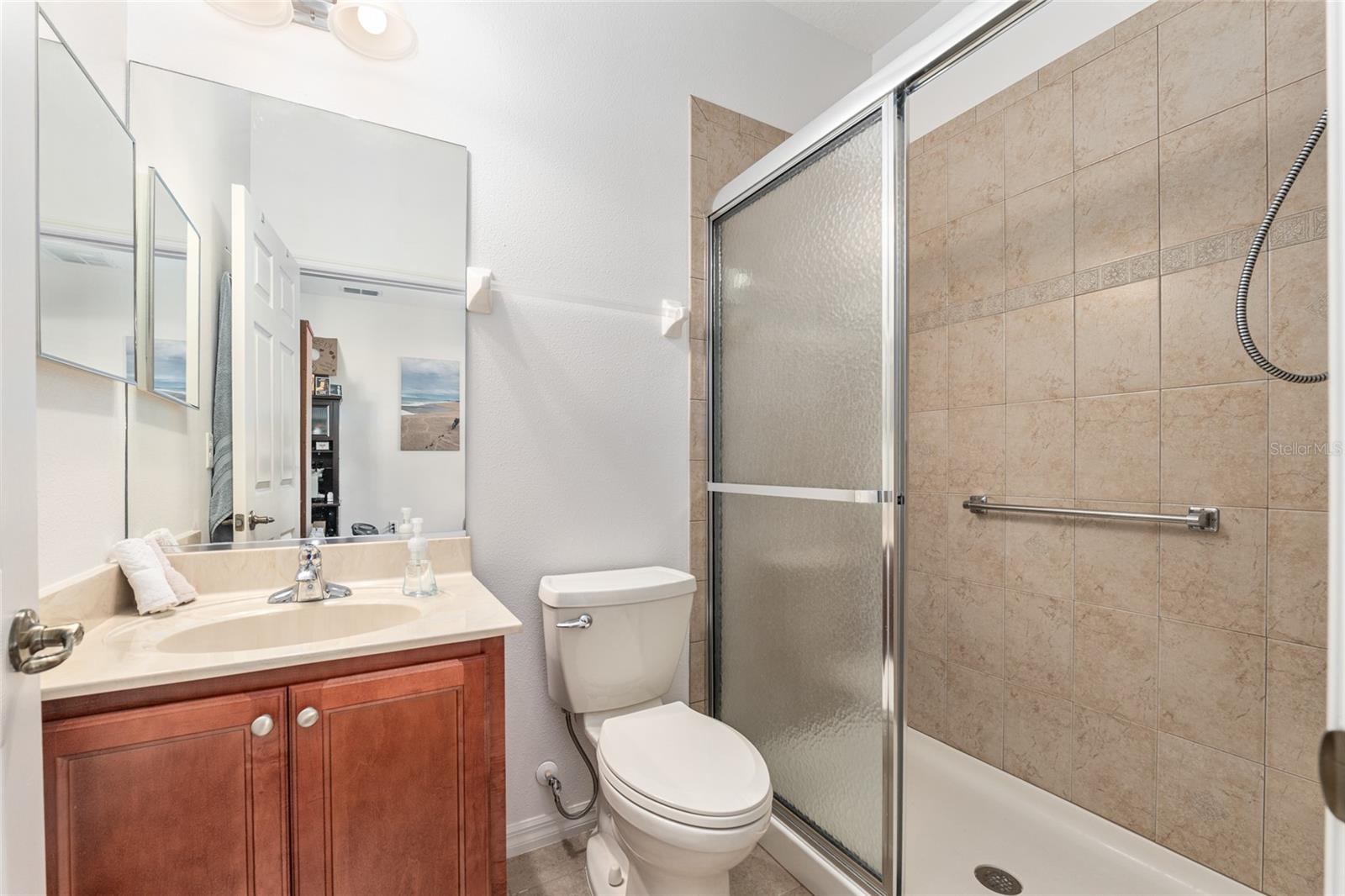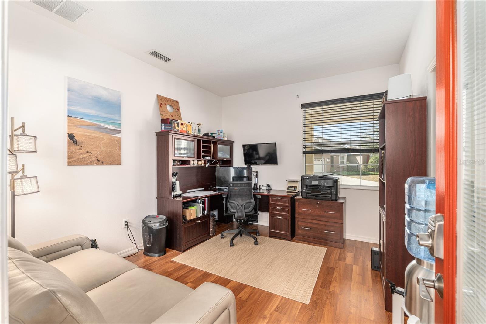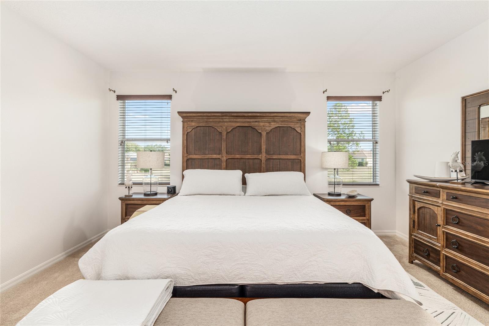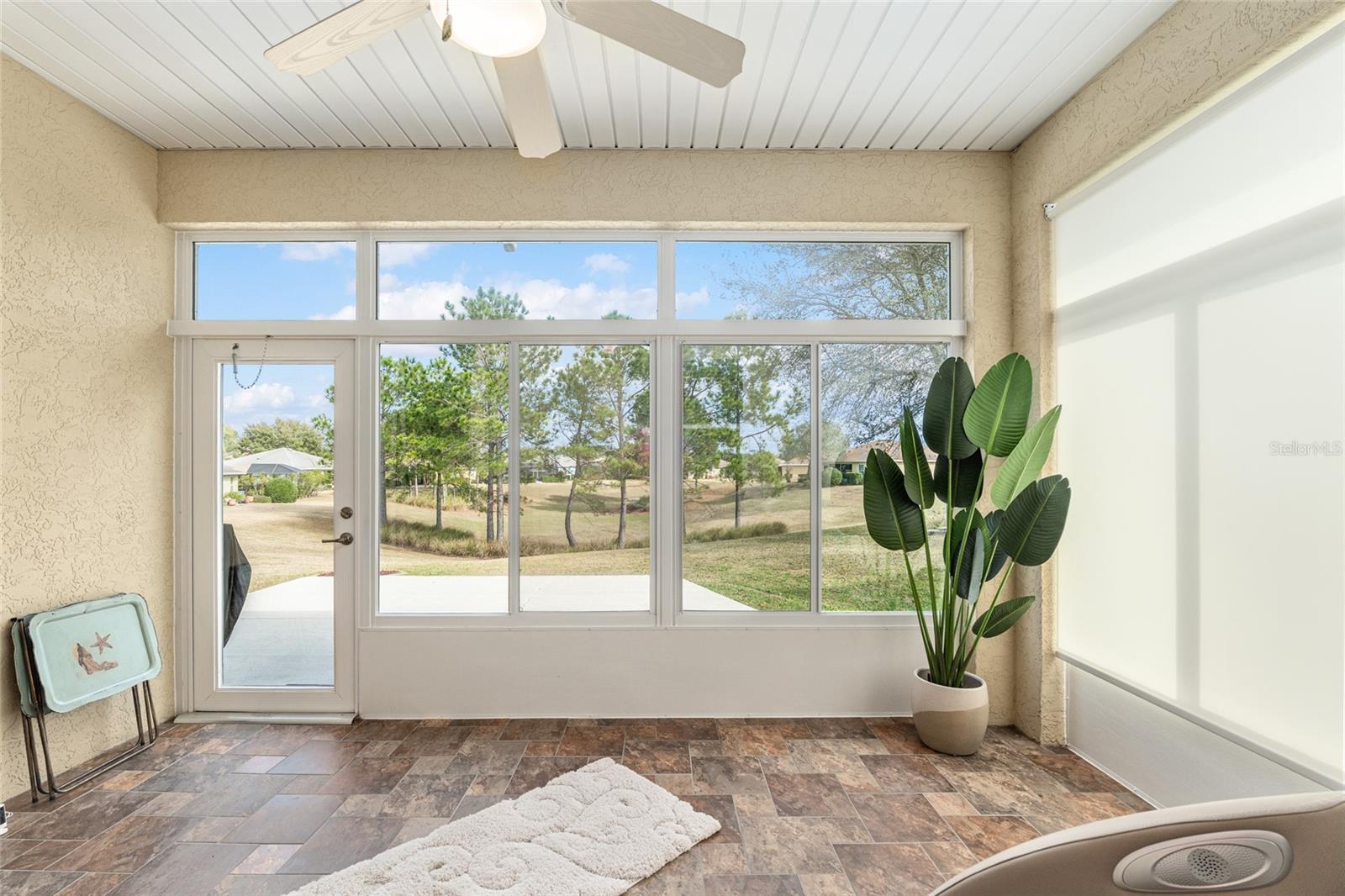 HYDRANGEA model home with casita/in-law quarters on a water retention, scenic, private lot in the much sought after area of Windsor East, On Top of the World. This 3-bedroom, 3-bathroom, 2-car garage, Estate Hydrangea model home, features a private courtyard with new Hot Springs spa and it includes a 2023 Bintelli 4-seat golf cart with full price offer! Imagine unwinding in your brand new $15K, 220V, HOT SPRINGS spa (equipped with an IQ system for water monitoring) in your private courtyard or just kick back in the hammock. This space is perfect for both entertaining and relaxing. Interior painted 2023, large format tile floors with stain-resistant grout 2022, kitchen sink, faucet, high-powered disposer, LG large capacity French door refrigerator, Samsung air fryer range, super quiet KitchenAid dishwasher, LG washer and dryer, dump sink, window screens, and a spacious concrete patio off the tiled Florida room! The Florida room features sunshades on one side and sliding windows that open up to screens. The great room is open and airy. The kitchen boasts a large island, and all exhaust fans, including the one over the stove, are ducted to keep the air fresh. There’s even a generously sized pantry! The master suite is spacious with dual walk-in closets. The ensuite bathroom is a dream, with a tiled walk-in shower that has a glass-block feature, dual sinks, two linen closets, and a separate water closet. The second bedroom has a queen bed and is conveniently located across from the full guest bath. There is a detached, private third bedroom (casita), located just across the 670 square foot paver courtyard. Plus, this third bedroom can double as an office or guest suite with its own full bathroom with a walk-in shower and a spacious walk-in closet! The laundry area is equipped with newer LG washer and dryer, a dump sink, and an extra storage cabinet. And just when you think it couldn’t get any better, this two-car garage comes with a mini-split AC/heater to keep you comfortable while you work at your included workbench. It’s well-lit and features a pristine epoxy floor! The HVAC system is tucked away in a closet, and the water heater is in the corner, making maintenance a breeze. You’ll also find a second refrigerator and a stand-up storage cabinet. Open up the garage door and let the breeze in because the entire opening is covered by screen sliders. The controller for the 9-zone sprinkler system is also here. Plenty of parking space in the driveway as well. Massage chair available as well. Close to the amenities in OTOW via your golf cart: indoor/outdoor pools, 3 golf courses, 2 restaurants, multiple exercise facilities with plenty of top of the line equipment, water aerobics, yoga, exercise classes, steam and sauna, Pickleball courts, RC plane airport, RC car track, min golf, wood working, 100’s of clubs and continuing education, bocce, horseshoes, shuffleboard, billiards, game room. Social activities galore with great residents. The amenities are too much to list. On Top of the World is Ocala's premier, gated, active 55+ community, loaded with amenities and includes golf cart access to three shopping centers.