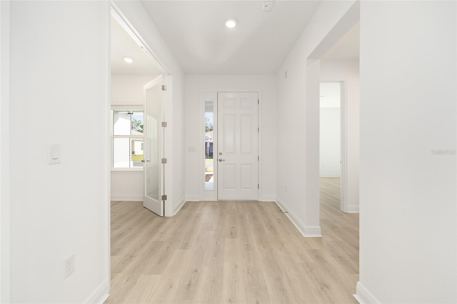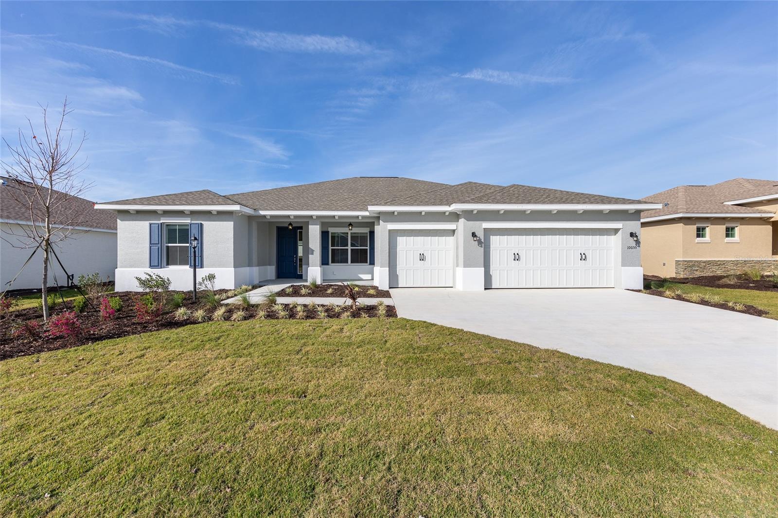 The Beatrix is a thoughtfully designed new construction home offering 2 bedrooms, 2 baths, a flex room, and a dedicated laundry suite. The open living area is bright and inviting, creating a comfortable space for both everyday living and entertaining. The flex room adds versatility and can easily serve as a home office, den, or hobby room. The private owner’s suite provides a relaxing retreat with an en-suite bath, while a secondary bedroom and full bath offer comfort for guests. Enjoy Florida living year-round from the covered and screened lanai, complemented by a charming covered front porch. Additional highlights include a 2-car garage with golf cart space, energy-efficient construction, and approximately 2,142 sq. ft. of A/C living space within 3,214 total sq. ft.