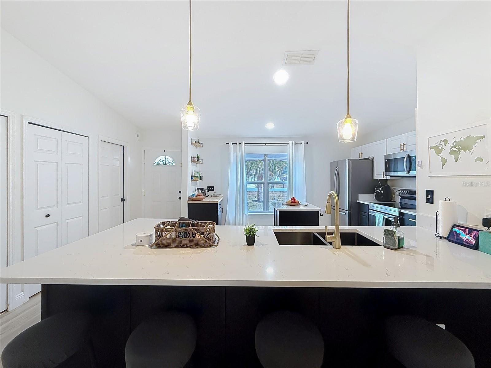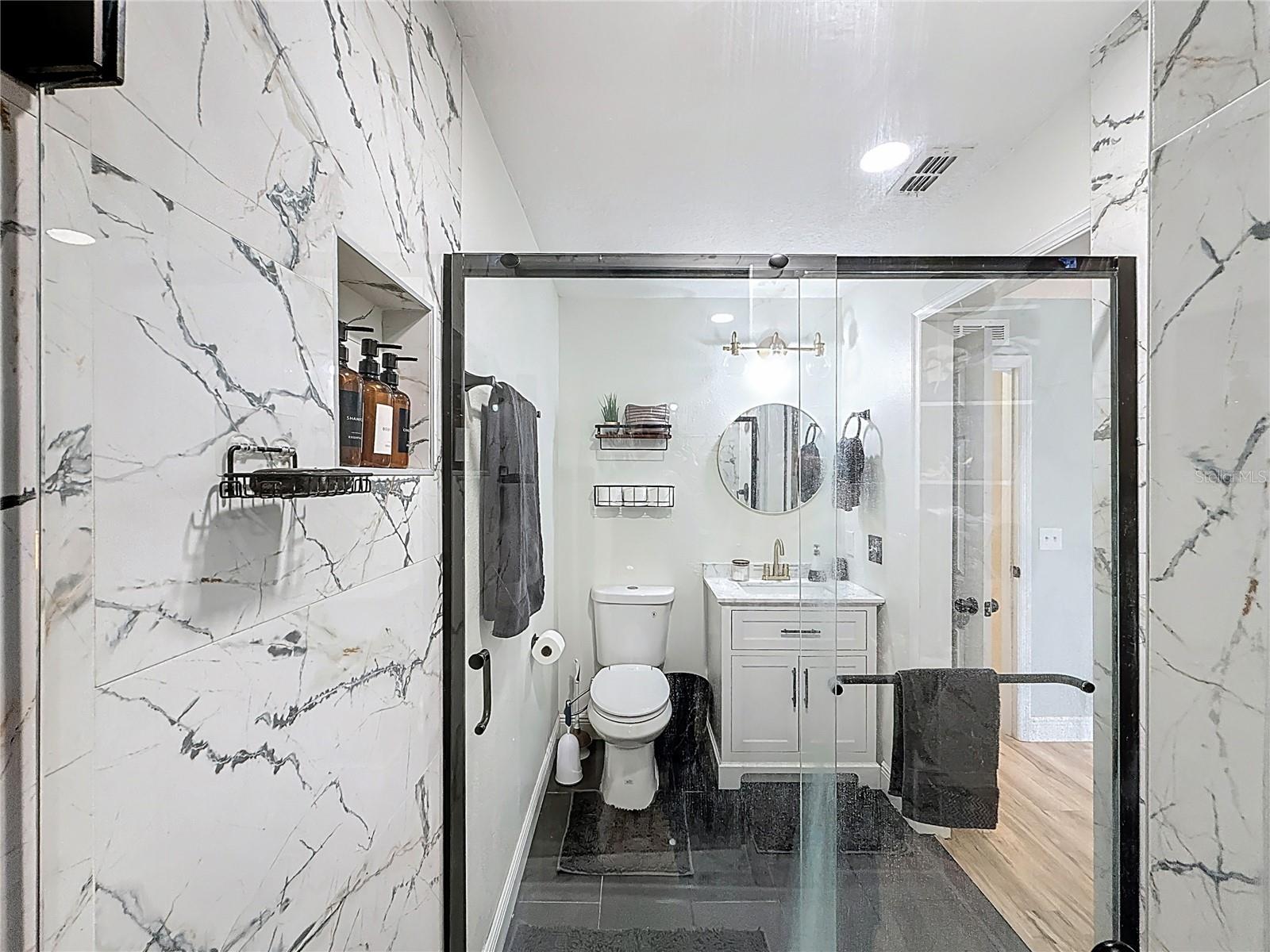 $15,000 BUYER CREDIT OFFERED — use toward closing costs, rate buy-down, or upgrades! Major upgrades for peace of mind include: - New HVAC (2026) - New Water Heater (2026) - New Roof (2025) Welcome to this fully rehabbed 4-bedroom, 3-bath home located in a quiet, peaceful neighborhood that offers both privacy and everyday convenience. Designed with a modern farmhouse aesthetic and an open, spacious floor plan, this home is completely move-in ready. The brand-new kitchen is a true centerpiece, featuring quartz countertops, soft-close drawers and cabinetry, stainless steel appliances, a walk-in French door pantry, and a dedicated coffee/wine bar. A motion-sensor kitchen sink adds a sleek, modern touch and everyday convenience. All bathrooms are completely new, showcasing elegant marble countertops and tile flooring, creating a clean, spa-like atmosphere throughout the home. The great room features luxury vinyl plank flooring, combining durability with modern style and providing a seamless flow through the main living space. This thoughtfully designed layout includes two master bedrooms with ensuite bathrooms, including a downstairs master perfect for a mother-in-law suite, private guest space, or home office. Upstairs offers three additional bedrooms, including two spacious guest rooms that share a hallway bathroom with a shower/tub combo, plus an impressive primary suite with a customized walk-in closet and a dual-sided shower. Enjoy outdoor living in the fully fenced backyard with a 6-foot vinyl privacy fence, a spacious patio ideal for entertaining and recreation, a central firepit, and a children’s playset — perfect for gatherings and relaxation. Ideally situated adjacent to schools and shopping, just 7 minutes from I-75, and a short drive to downtown Ocala. Take advantage of Ocala’s famous natural springs, scenic trails, parks, equestrian attractions, and vibrant local dining and events. Stylish, spacious, and perfectly located — schedule your private showing today and take advantage of the $15,000 buyer credit!