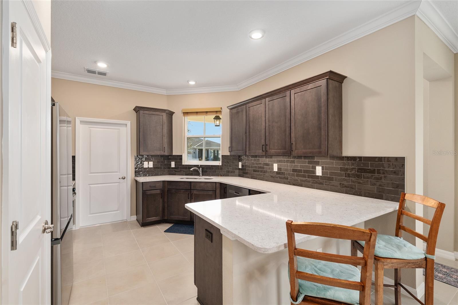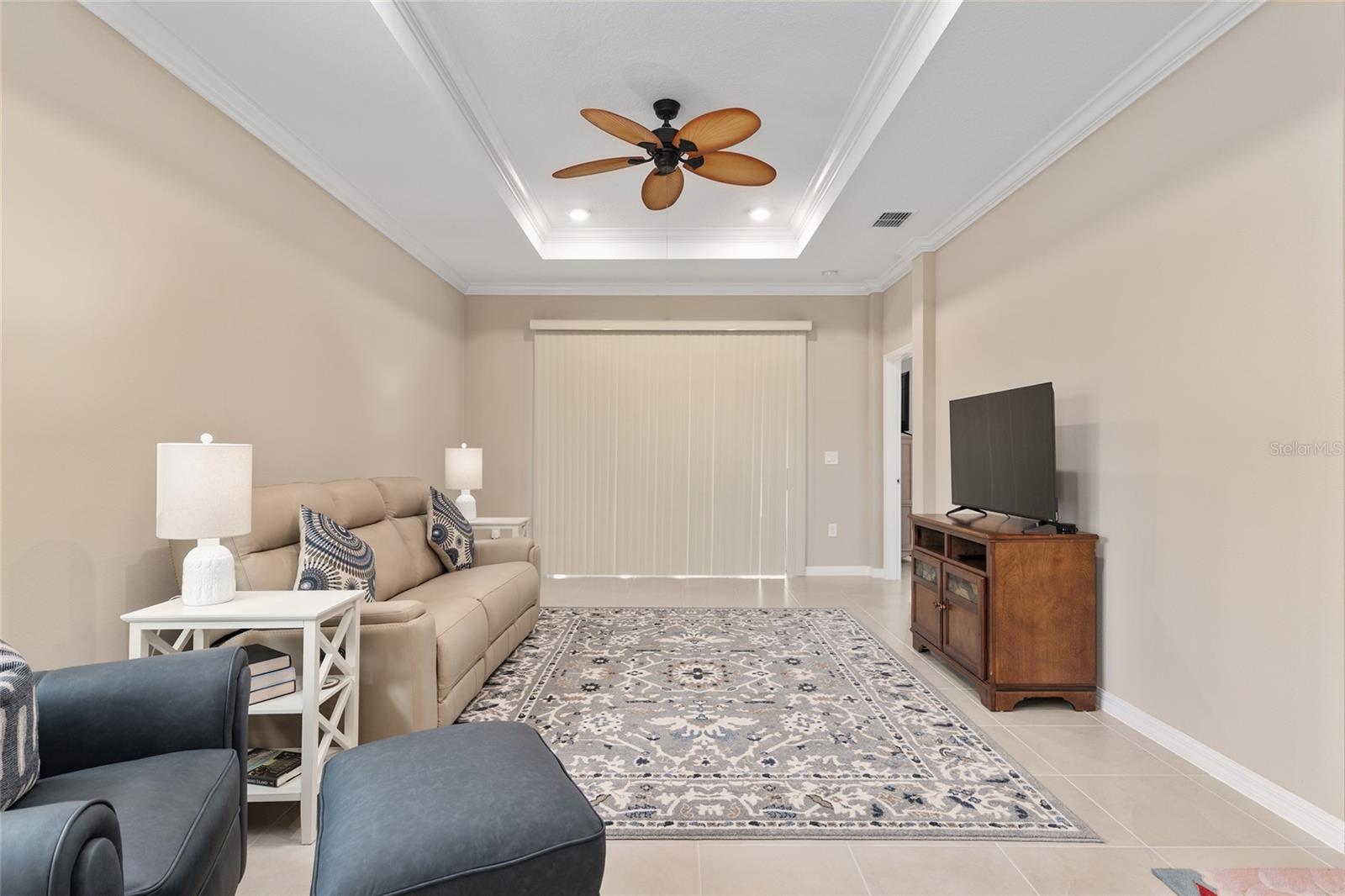 This gorgeous fully furnished 2023 Oren model home, with 2-bedrooms, 2-bathrooms, 2-car garage, located in Longleaf Ridge, On Top of the World, is loaded with builder AND after build upgrades making it BETTER THAN NEW! The location is spectacular with a very short walk to the new Summit amenity center which is currently being built. The kitchen is perfect with shaker cabinets, quartz counters, stainless steel appliances, gas range and tile backsplash. The shaker cabinets also feature crown molding and a lazy Susan. The main bedroom features a custom walk-in closet and an en-suite bathroom with quartz, dual vanity sinks, frameless shower, and designer tile. The main living space features tile, crown molding, tray ceiling and a beautiful ceiling fan to complete the luxury feeling of this home. Enjoy the screened lanai for your peaceful morning cup of coffee. Longleaf Ridge is conveniently located near the Arbors amenity center as well as the future Summit amenity center. Located in Ocala's premier, gated, active 55+ community, loaded with amenities, including golf cart access to two shopping centers.