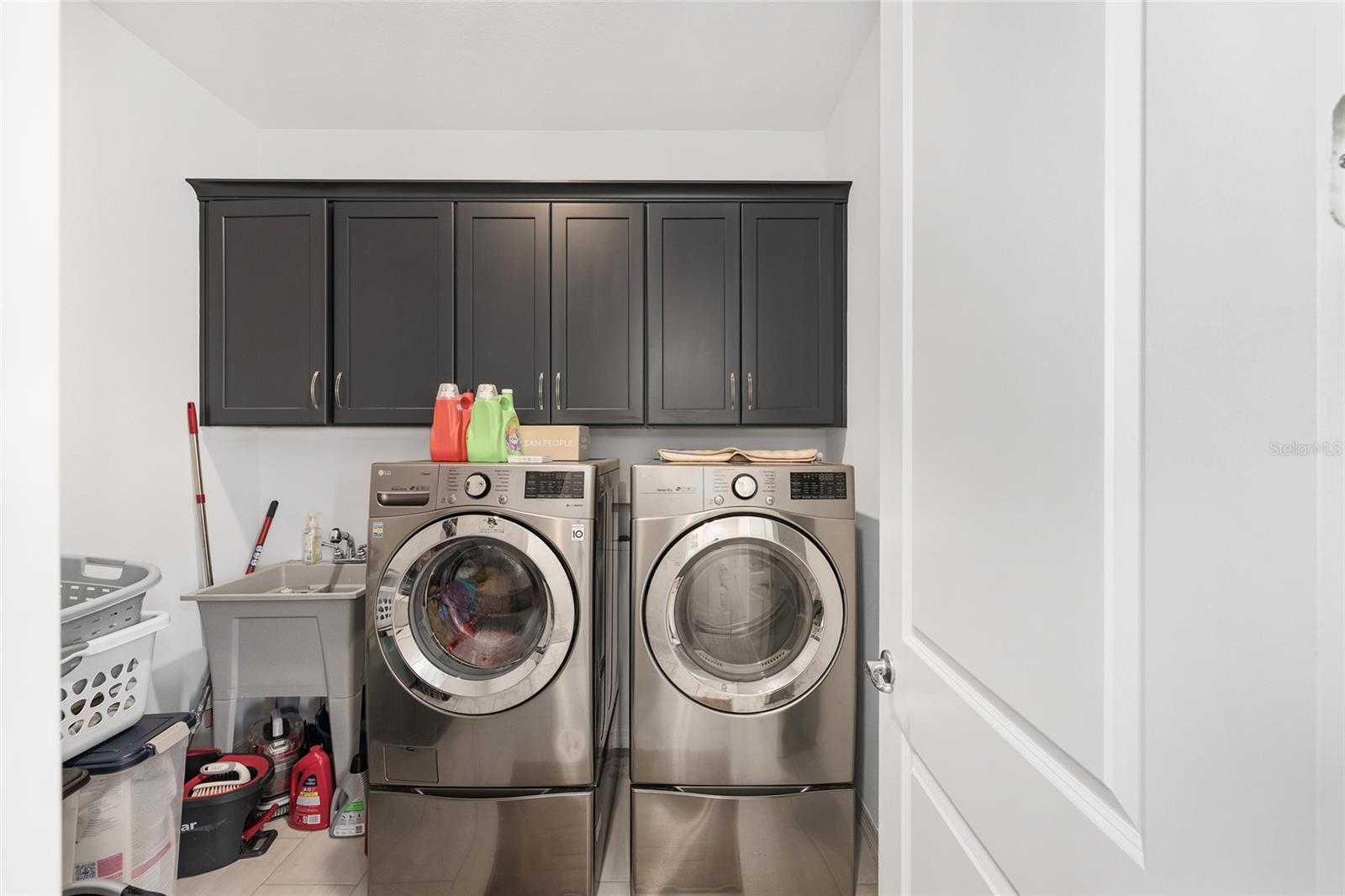 Welcome to the stunning Mulberry model in Calesa Township, offering 3,878 square feet of beautifully designed living space with 4 bedrooms, 4.5 bathrooms, and a flexible layout; ideal for modern living. From the moment you enter the elegant, tiled foyer, you'll appreciate the thoughtful details and upscale finishes throughout. The 1st floor features a spacious flex room perfect for a home office or den, a formal dining room currently used as a playroom, and a well-appointed laundry room with upper cabinetry and a utility sink. The luxurious primary suite is a true retreat, showcasing plush carpet, a tray ceiling, triple windows, dual walk-in closets, and a spa-inspired ensuite with quartz countertops, dual sinks, a glass-enclosed walk-in shower, and private water closet. At the heart of the home, the expansive great room boasts a tray ceiling and an impressive 16-foot sliding glass door, seamlessly blending indoor and outdoor living. The gourmet kitchen is designed to impress with a large island, quartz countertops, staggered blue cabinetry, tile backsplash, built-in microwave and oven, and a generous walk-in pantry. A casual dining area and a stylish wet bar with beverage refrigerator add to the home's entertaining appeal. A half bath and access to the single garage complete the main level. Upstairs, you'll find 3 additional bedrooms, each with ceiling fans and closets, along with multiple ensuite baths and a versatile loft space currently used as a sewing room. A built-in cabinet at the top of the stairs provides extra storage and functionality. Step outside to enjoy an extended screened lanai with ceiling fans and a relaxing hot tub, perfect for unwinding or entertaining year-round. The beautifully landscaped corner lot also features a paver patio, 3 gated access points, new sod, and gutters for added convenience. Located in the highly desirable Calesa Township, residents enjoy resort-style amenities including community pools, miles of trails, playgrounds, dog parks, and access to the Florida Aquatics Swimming & Training (FAST) facility. With its exceptional design, premium upgrades, and unbeatable location, this home truly has it all.