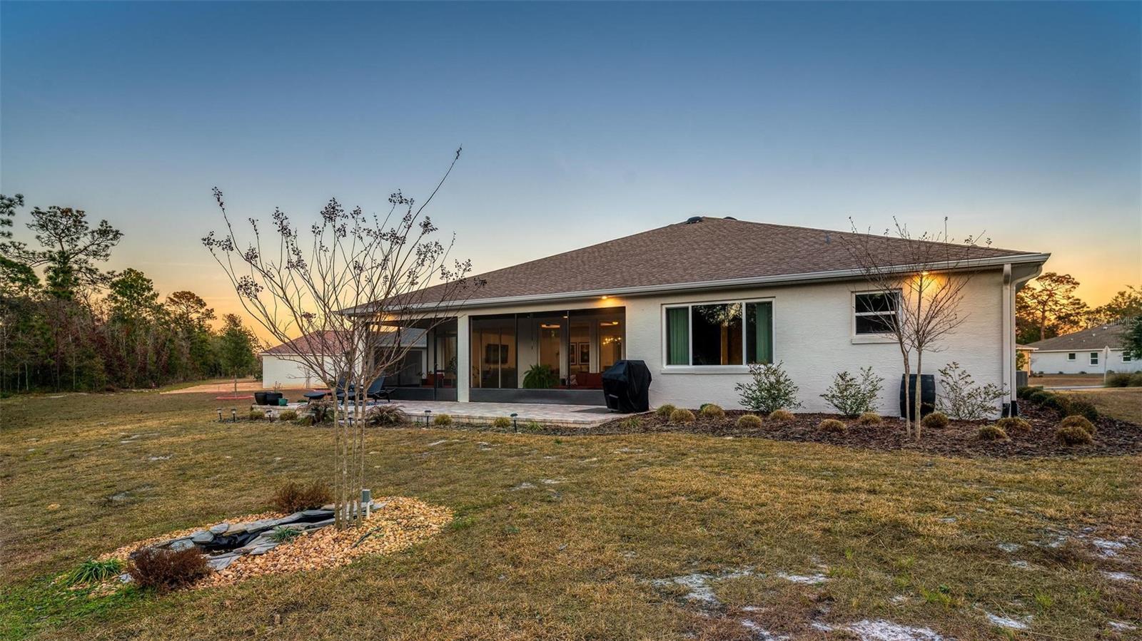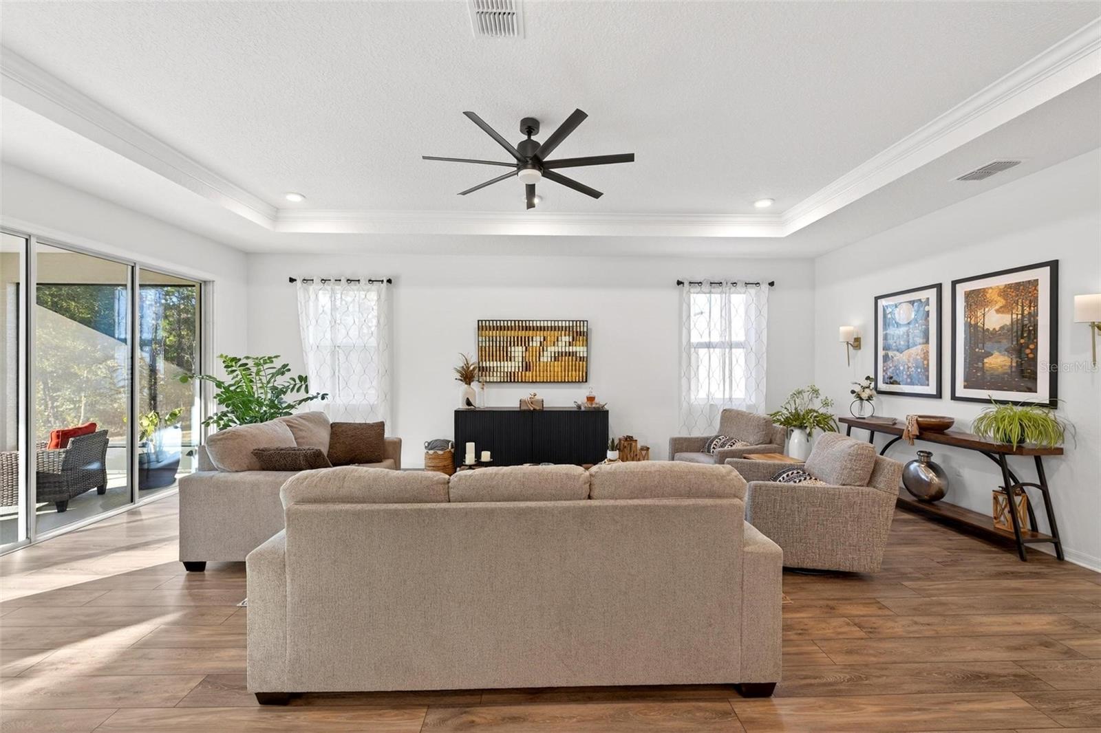 Set on a rare .32-acre privacy lot backing to a tranquil wooded preserve, this gently lived-in Magnolia model offers a peaceful retreat in On Top of the World’s desirable Longleaf Ridge, where privacy and community come together. Inside, expansive rear windows fill the home with natural light while framing serene, wooded views, creating a seamless connection to the outdoors and an ideal setting for birdwatching. The thoughtfully designed floor plan includes a primary suite with en-suite bath, a guest bedroom with a private bath, a den well-suited for a home office or quiet sitting room, an additional flex space ideal for hobbies or reading, and a convenient half bath for guests. The light and bright kitchen features quartz countertops with a coordinating backsplash, two-tone and soft close cabinetry with dedicated spice storage, stainless steel appliances, under-cabinet lighting, and a walk-in pantry. Luxury vinyl plank flooring flows throughout the home, complemented by a tray ceiling in the living room, ceiling fans, and a whole-home water softener system. Step outside to an extended patio overlooking the preserve, perfect for relaxing and enjoying the peaceful surroundings. The expanded garage includes a full two-car garage plus a separate golf cart bay, along with a built-in workbench and additional storage. Residents enjoy an unmatched lifestyle with golf-cart access to shopping, dining, swimming, clubs, pickleball, mini golf, dog parks, and more. This private, move-in-ready home offers an ideal blend of comfort, flexibility, and setting in one of Ocala’s most sought-after communities. Schedule your private tour today!