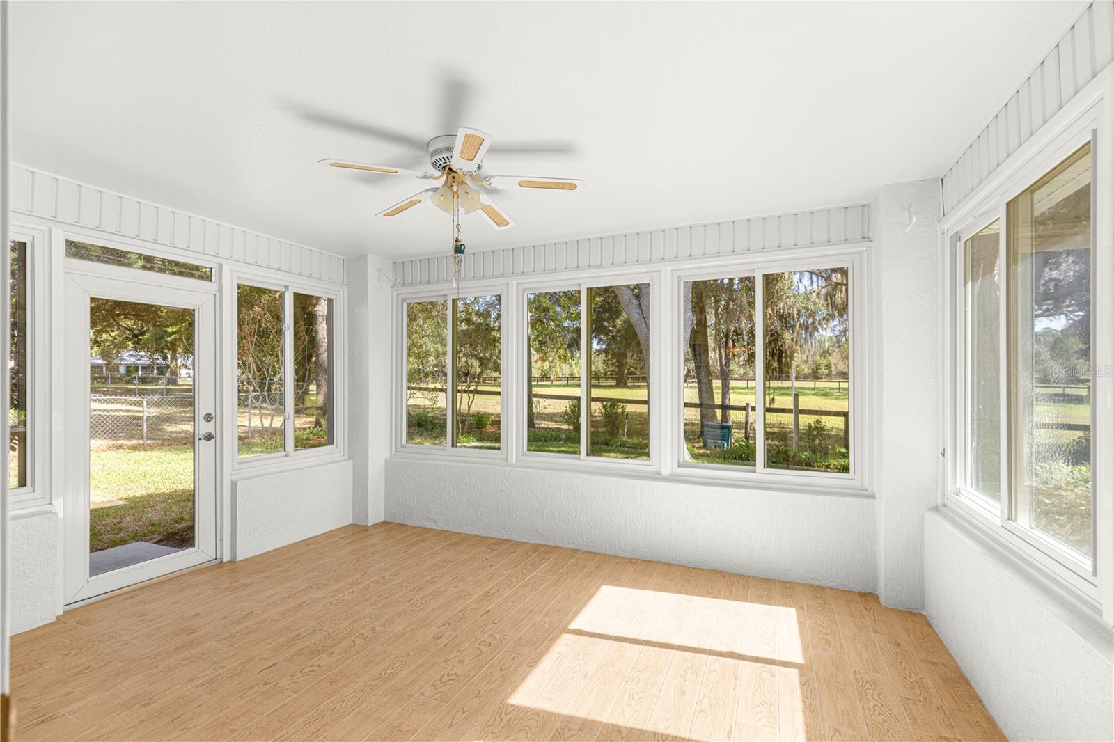 Nicely maintained and customized Cardinal ll model home that is perfectly situated on a premium lot featuring a private backyard that create enjoyable vistas of the open space pastures which is not zoned for houses. Upgrades include the extension to the back of the home two feet to allow for a linen closet in the guest bathroom additional closet space in the guest bedrooms, extra pantry that includes three -drawer lower cabinets in the kitchen and a jetted luxury tub in the master bathroom. Double-pane windows were installed in the entire house and larger windows were used in the living room and all the bedrooms. The kitchen includes all wood cabinets with granite counter tops, windowed breakfast nook and SS appliances. French Doors from the dining area open up into the Enclosed Florida room with concrete knee wall, tiled floors and access door to the landscaped backyard which offers up a very peaceful setting. The primary bedroom includes tray ceiling, walk in closet, granite top wood vanity, jetted tub and tiled shower with a glass door. There are two guest bedrooms and a guest bath close in proximity to each other. Laminate and tiled floors throughout including a coat closet in the tiled foyer. Roof repl. in 2020, AC repl 2015, Water Htr repl in 2016. New gutters with leaf gard installed 2020. There are lightning rods. This property has a lot for you to enjoy life to it's fullest. The Developer still manages the community along with the area maintenance. They charge a fee of $181.36 every month along with that the Developer contracts for their residences a very good price for the Spectrum Cable/TV, Spectrum WIFI internet and trash removal every Friday for a monthly fee of $142.75. Make your appointment today to tour this property and be sure and stop by the clubhouse.