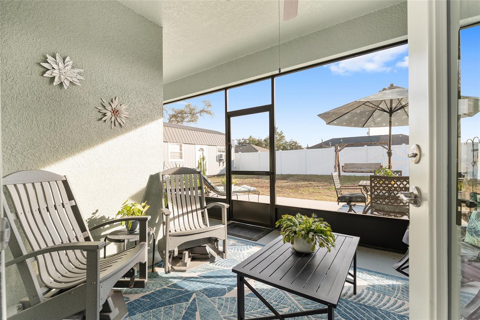 Better than new with all the extras already done! Built in 2023 and located on a quiet street in Marion Oaks, this 4-bedroom, 2-bath home offers the benefits of new construction plus valuable upgrades rarely found in most new builds. Enjoy a fully fenced backyard, a 12’ x 25’ fully wired workshop shed ready for hookup, a covered and screened lanai with ceiling fan, and an extended patio already wired for a hot tub, perfect for grilling and outdoor living. Inside, the bright open-concept split floor plan features durable Mohawk RevWood flooring throughout the main living areas. The kitchen impresses with granite countertops, stainless steel appliances, a large center island with breakfast bar, 42” soft-close wood cabinets, a stylish tile backsplash, and a spacious walk-in pantry. Function meets convenience with a guest hallway linen closet, generously sized bedrooms, and an interior laundry room. Thoughtful upgrades include an irrigation system, rain gutters, upgraded lighting, ceiling fans with remotes, a generator transfer switch, a security system and garage shelving for added storage and organization. With no HOA and move-in-ready condition, this home truly delivers comfort, convenience, and freedom.
