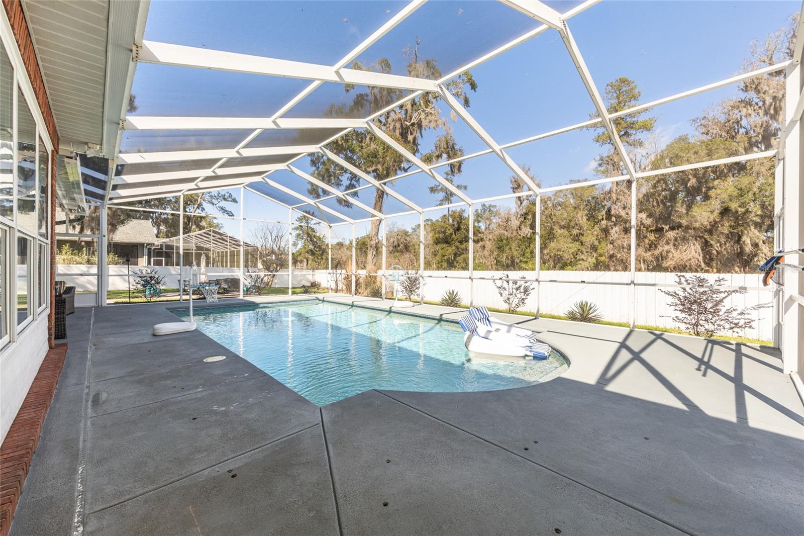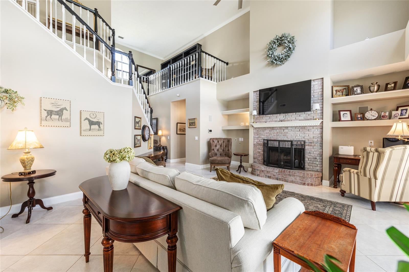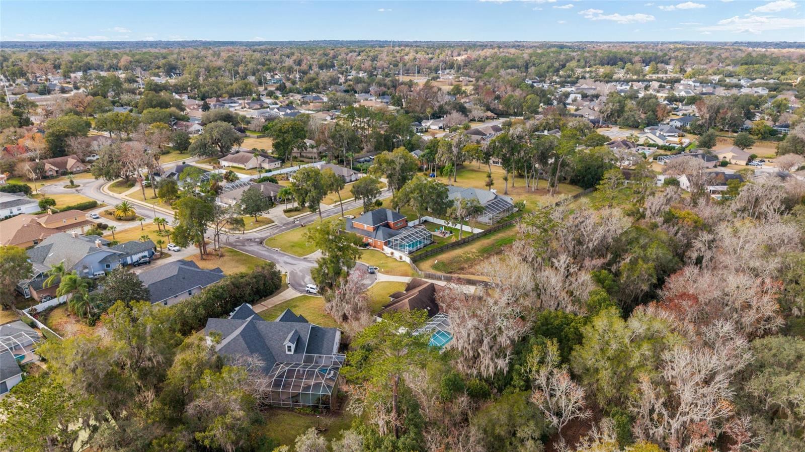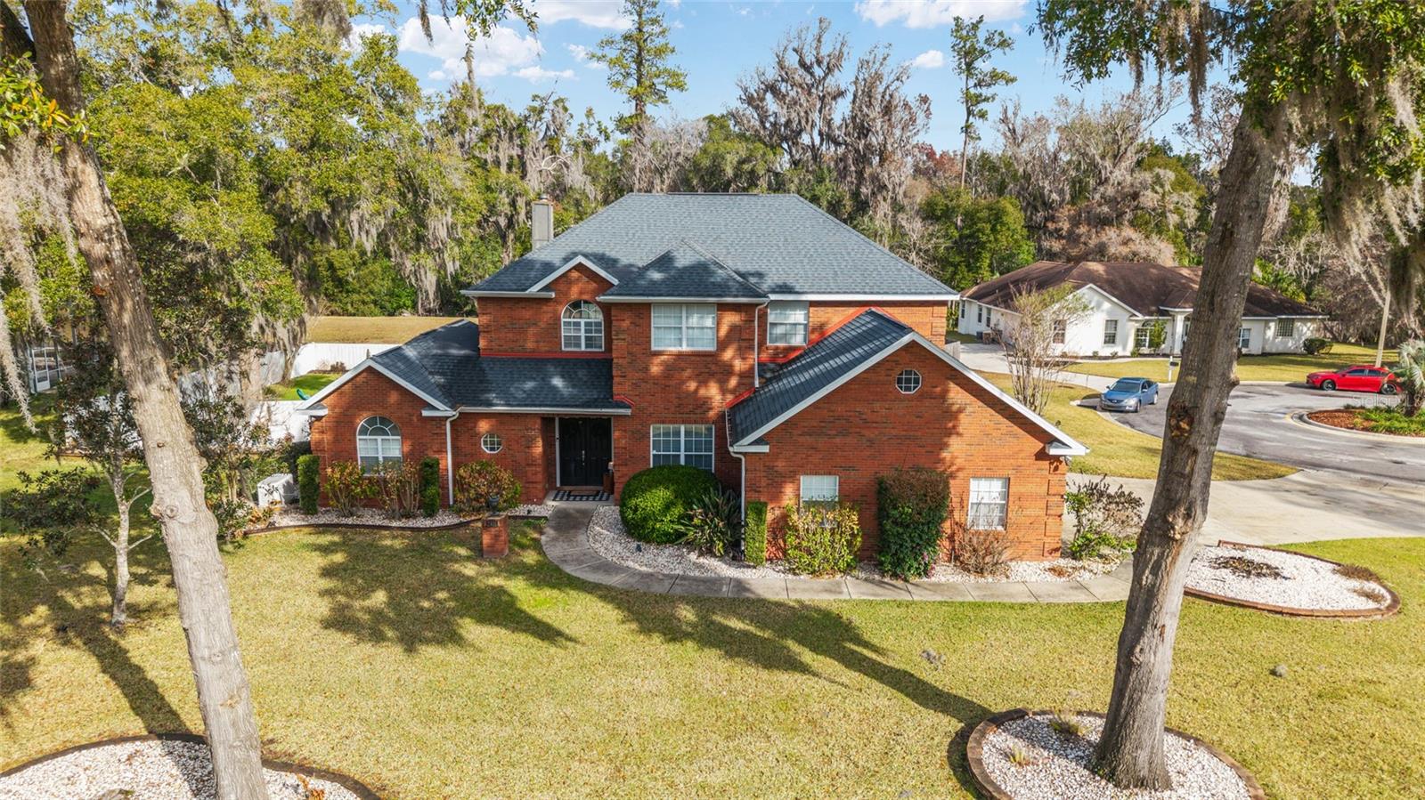 Welcome to this classic two-story estate, where traditional red brick meets timeless curb appeal. Set on a generous half-acre corner lot in a quiet cul-de-sac with no rear neighbors, this home offers both privacy and presence, with just under 4,000 square feet of living space designed for comfort and style. From the moment you enter, the home makes a grand yet welcoming impression with high ceilings, a beautiful staircase, and a spacious sitting room that feels both elegant and cozy. The living room features a fireplace with built-ins and flows seamlessly into the kitchen and dining areas, creating an ideal space for everyday living and entertaining. The updated kitchen shines with quartz countertops, a fresh backsplash, and newer appliances, while an enclosed, under-air Florida room just off the kitchen provides additional year-round living space overlooking the pool. The main level primary suite features a thoughtfully updated bath with his-and-her vanities, a luxurious soaking tub, a step-in glass-enclosed shower, private water closet, and a nice walk-in closet. Also on the main floor are a convenient half bath and an inside laundry/mudroom. Upstairs, you’ll find three additional bedrooms, an updated full bath, and a loft-style reading or library area that adds flexibility and charm. Step outside to a refreshed outdoor living area with a newly re-screened pool cage, updated landscaping, and a new high-efficiency pool pump with heater—perfect for enjoying Florida living year-round. Additional upgrades include newer water heaters (2), a whole-house Generac generator, 2019 roof, newer garage doors, three HVAC systems, updated front and French doors, and a newer irrigation system. A newer vinyl privacy fence completes the outdoor space. With a three-car garage, thoughtful updates throughout, privacy and quiet, this home delivers classic elegance with modern peace of mind while still conveniently located to downtown, schools, restaurants and hospitals.