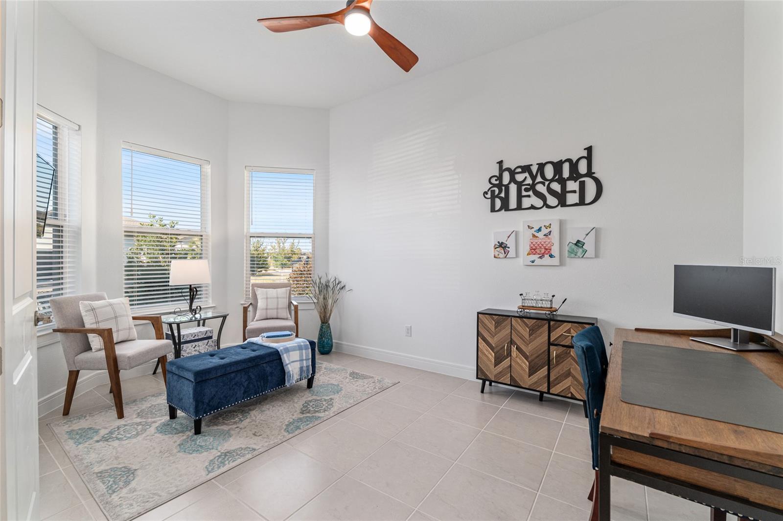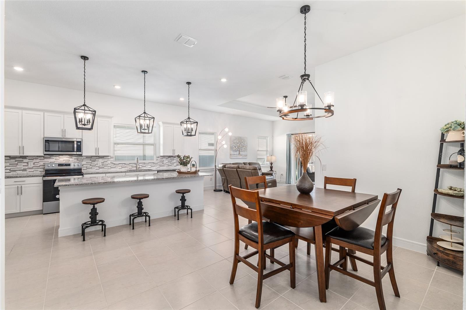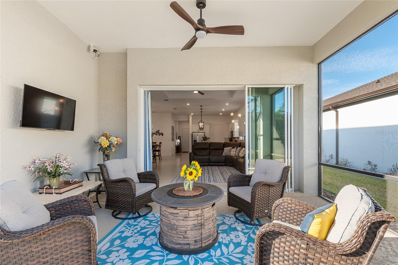 Experience elevated living in one of the most desirable 55+ communities in Ocala. Located in the Lexington neighborhood of Stone Creek you are steps away from the extraordinary amenities. The 2023 Mainstay model home is in pristine condition. With two bedroom's and a bonus flex room there is plenty of space for entertaining and also privacy. Open kitchen area with oversized pantry and 10 ft ceilings makes this home feel spacious and accommodating. Ceramic tile through out and plush carpets in bedrooms allows for a cozy at home feel. Additional features include an Eco bee smart thermostat, a MyQ wireless garage door, a water softening system, a sink in the garage, a hard-wired security camera and a TV connection on the lanai. The home also comes with a transferable termite bond. Luxury-inspired amenities include heated pools, a state-of-the-art fitness center, a spa, and relaxing hot tubs and saunas. Stay active with pickleball, bocce, tennis, and a softball field, while a dedicated lifestyle staff curates entertainment, activities, and special events to foster connections. Just beyond the gates, enjoy a golf course, pro shop, and restaurant; perfect for socializing and unwinding. This home was built with attention to detail and is a must see.