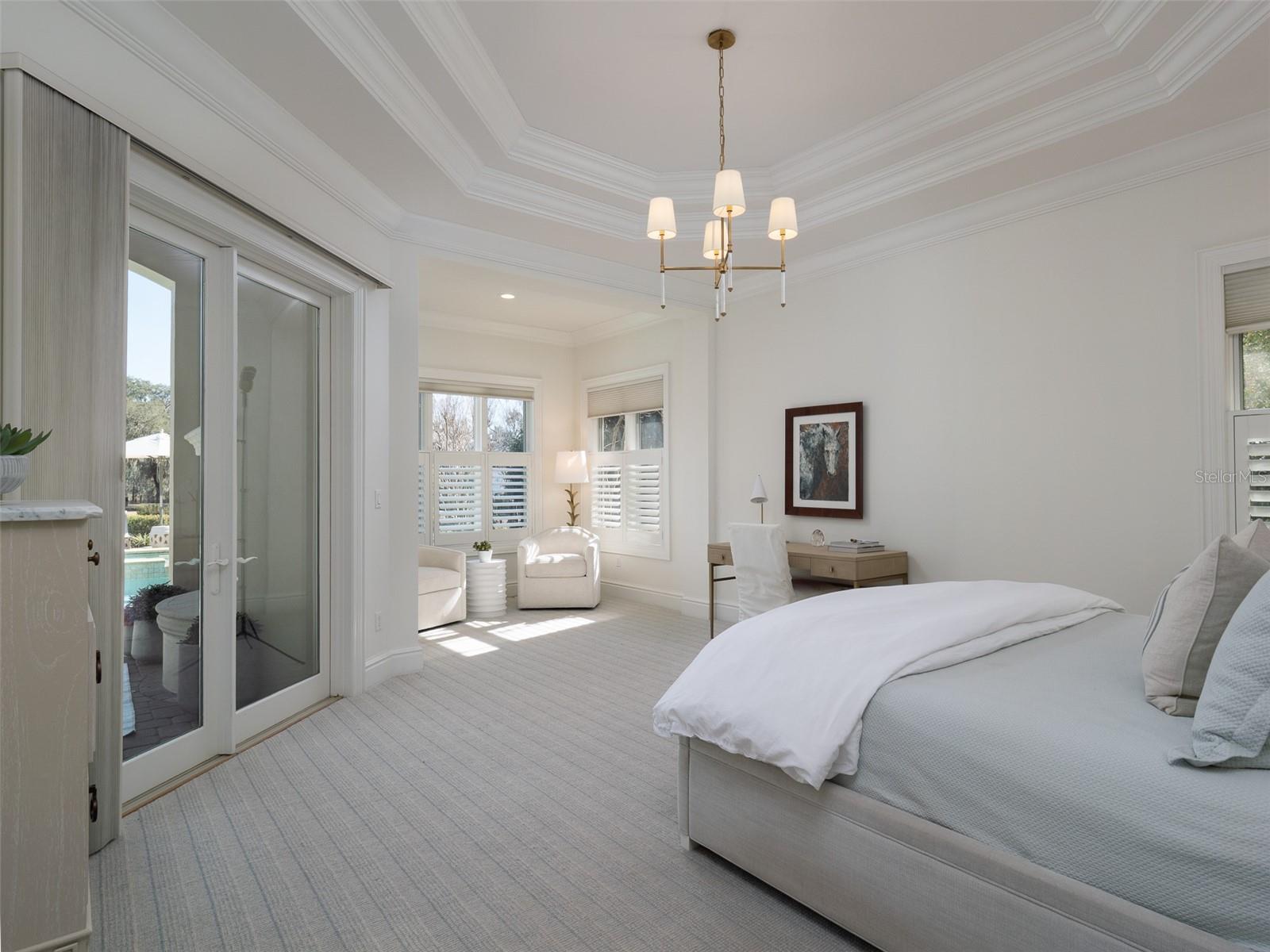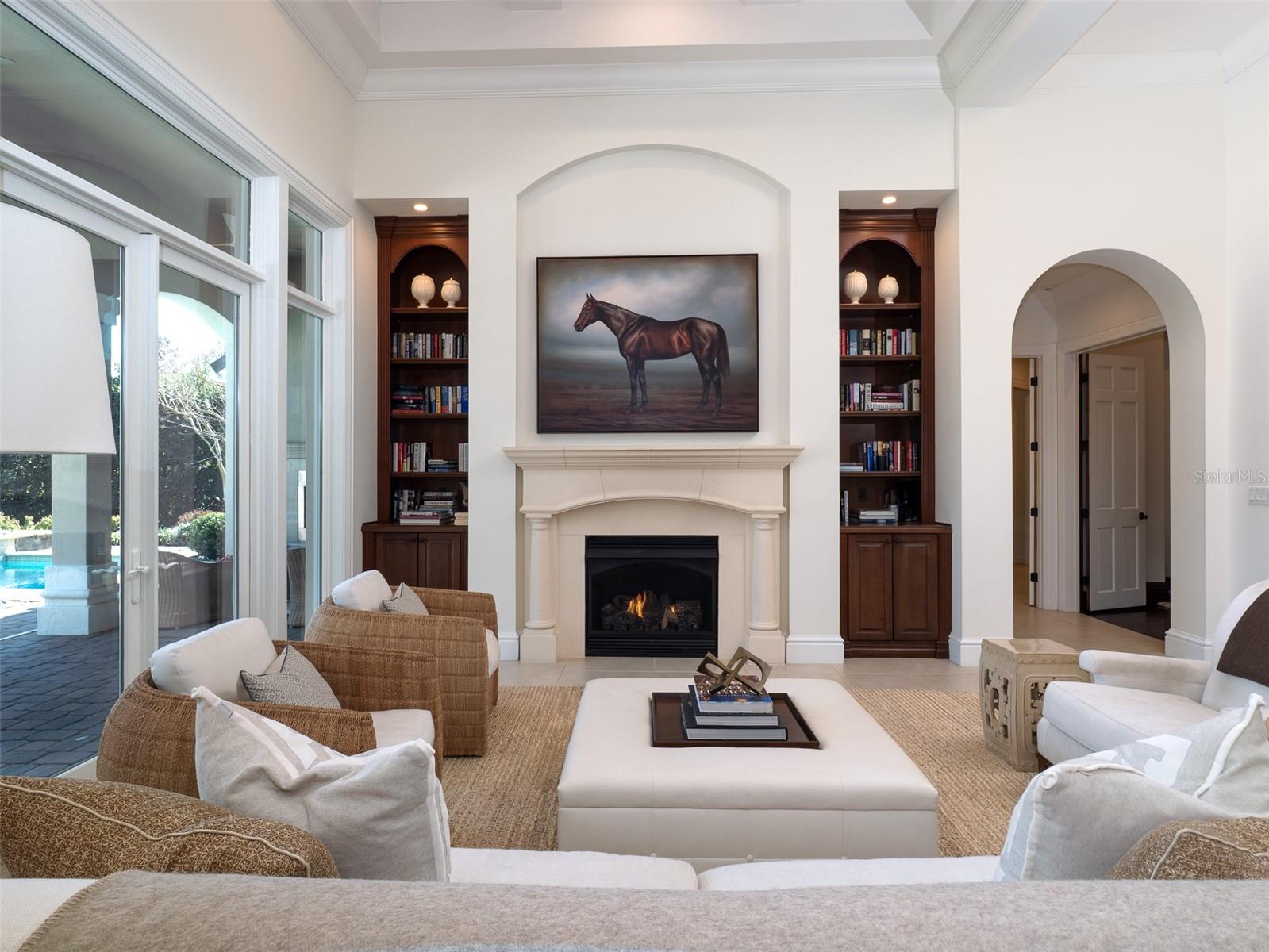 Perfectly positioned on the 13th hole in the prestigious community of Golden Ocala, this elegant residence offers refined living with exceptional privacy and breathtaking outdoor spaces. Lush, mature landscaping surrounds the home, creating privacy highlighted by a stunning pool and spa set within an expansive brick paver deck. Flooded with natural light, the interior seamlessly blends indoor and outdoor living. Expansive sliding glass doors fully retract to open onto covered entertaining areas, making this home ideal for hosting gatherings or enjoying Florida’s year-round sunshine. High tray ceilings and thoughtfully designed spaces enhance the home’s airy, sophisticated feel. The residence features 5 bedrooms, 3.5 bathrooms, and a gorgeous private study. The beautiful kitchen is complete with updated appliances, a butler’s pantry, solid wood cabinetry, and abundant counter space for effortless entertaining. Additional highlights include a gas fireplace in the living room, a stylish dry bar, and an outdoor grill. A circular drive and split three-car garages provide both convenience and impressive curb appeal. Enjoy the lifestyle Golden Ocala offers, with world-class amenities including the clubhouse, restaurants, championship golf, tennis, spa, barns, and the renowned World Equestrian Center. This is luxury living at its finest — private, polished, and perfectly positioned.