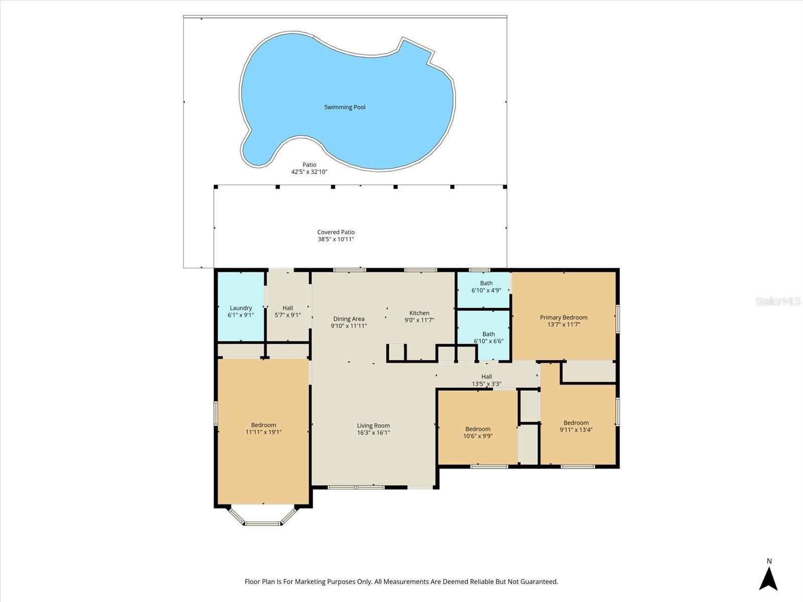 A heated pool, privacy-fenced backyard, and a thoughtfully designed four-bedroom layout set the tone for this refined SE Ocala residence. The outdoor living space is a true highlight, centered around a 9-foot-deep heated pool featuring a spa-style step area with jets, ideal for relaxing or entertaining year-round. A rear patio awning provides shaded outdoor seating adjacent to the pool area, creating a comfortable space to enjoy Florida days and evenings. Inside, the home offers a clean, functional layout supported by key updates including a roof replaced in 2021, HVAC updated in 2016, and a brand-new water heater, providing peace of mind and long-term value. The kitchen is well appointed with a counter that opens naturally to the dining area, offering ease for casual meals and hosting, and all appliances remain under warranty. A spacious family room anchors the interior and leads down the hallway, where two additional bedrooms are positioned alongside a conveniently located guest bathroom. The primary suite is privately situated at the end of the hall and features its own ensuite bathroom with shower. The fourth bedroom provides flexibility as a guest room, home office, or bonus space, enhanced by large bay windows and natural light. An attached laundry and utility room off the dining area adds everyday efficiency. Ideally located in SE Ocala, this home offers close proximity to shopping, dining, medical facilities, parks, and major roadways while maintaining a quiet residential setting. With recent surveys and septic servicing already completed, this move-in-ready property presents a polished opportunity to enjoy comfortable Florida living.
