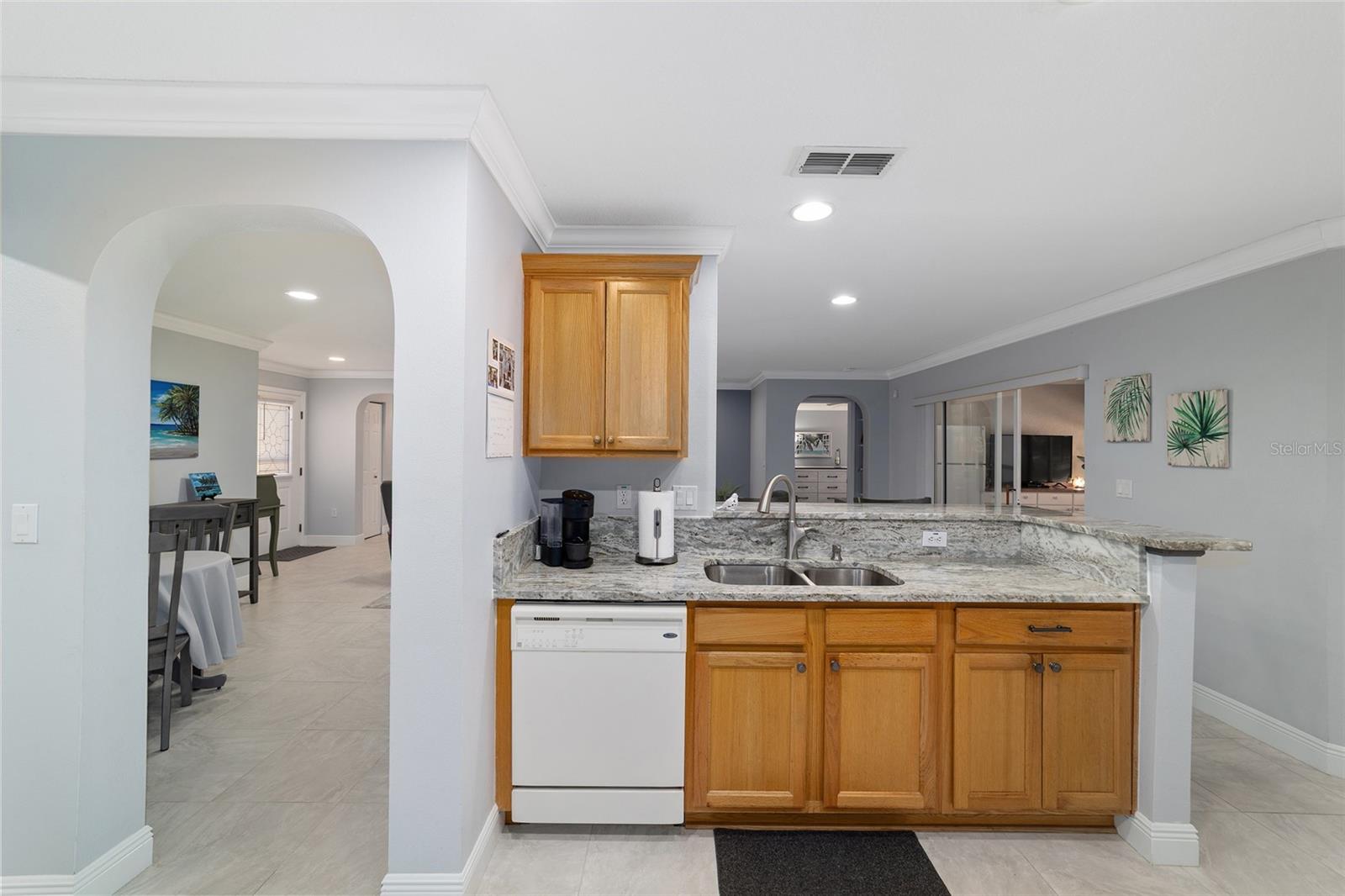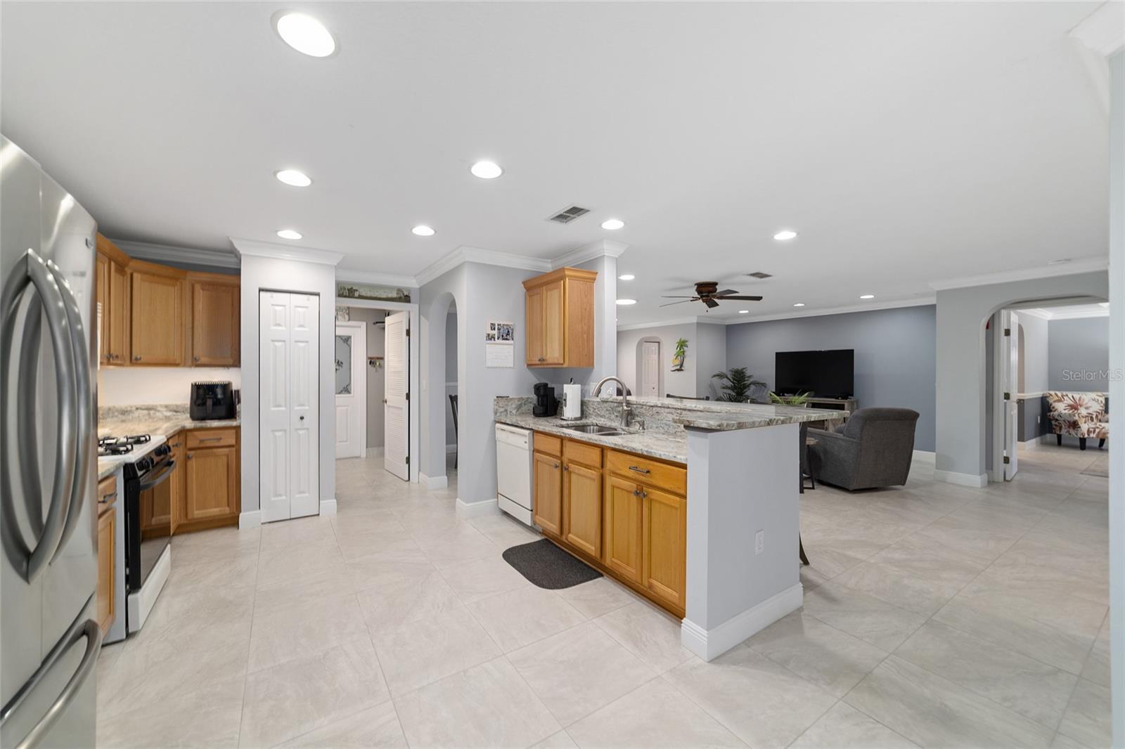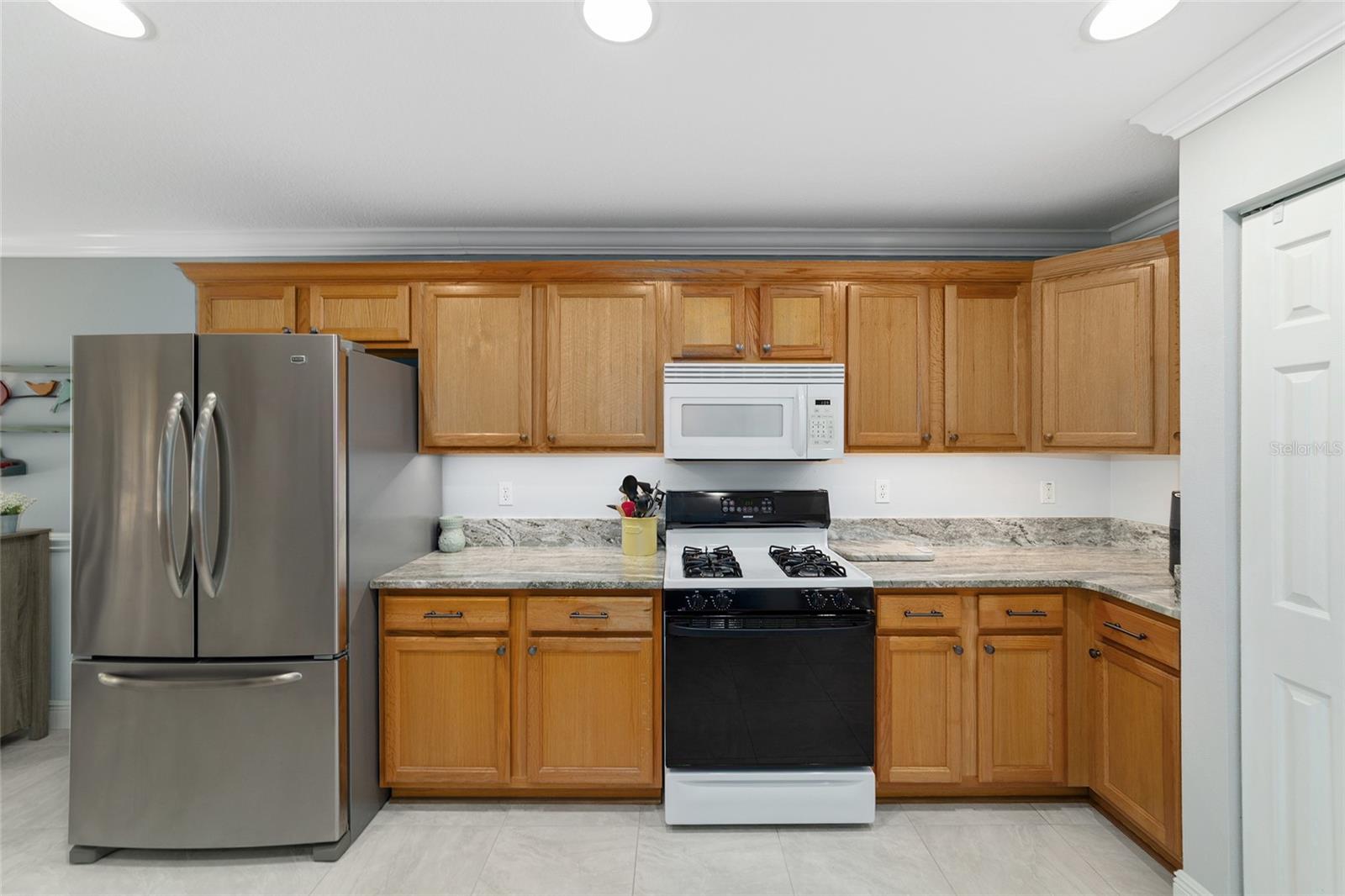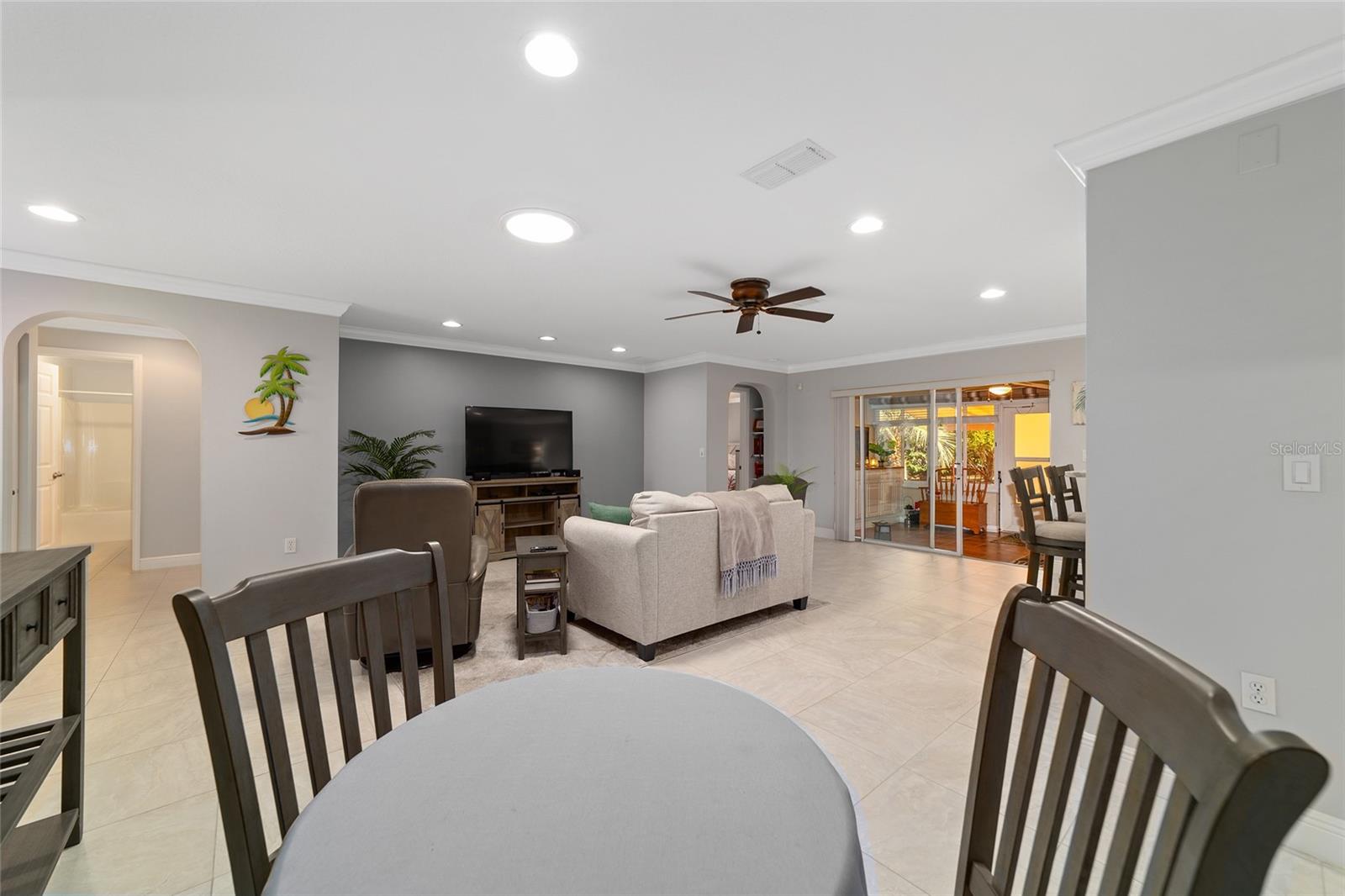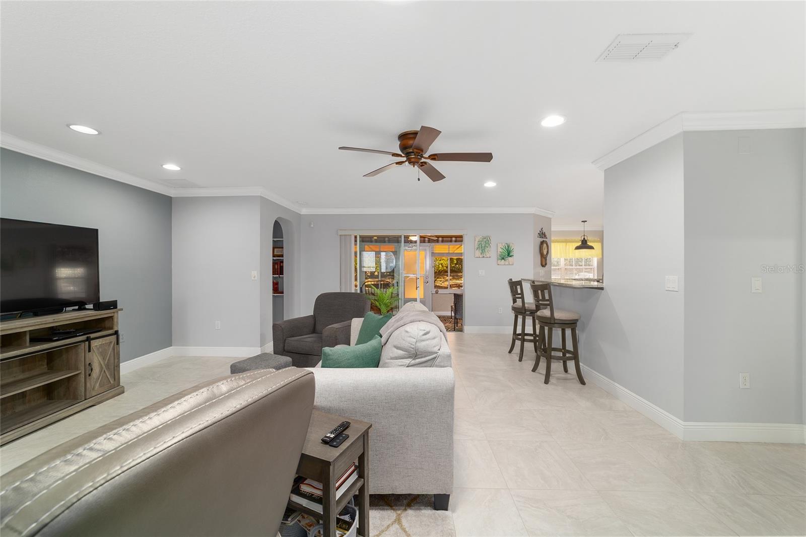 PRIVATE CORNER LOT | NEW ROOF | WHOLE-HOUSE GENERATOR | 1-YEAR HOME WARRANTY: Located on a private corner lot in the desirable gated Indigo East community, this beautifully maintained "snowbird" Pennyroyal Gold model offers over 1,700 square feet of stylish, move-in-ready living. With a brand-new roof (2025), a whole-house generator, and a 1-year home warranty, this home delivers comfort, quality, and peace of mind. A welcoming courtyard entrance invites you inside to a soothing gray-and-white palette, tile flooring throughout (carpet only in the guest bedroom), crown molding, specialty millwork, recessed lighting, and solar tubes that fill the home with natural light. The spacious great room has been freshly painted and is ideal for both everyday living and entertaining. The updated kitchen features granite countertops, solid oak cabinets with pull-out shelving and crown molding, a pantry, and a breakfast bar overlooking the great room. The primary suite serves as a relaxing retreat with a coffered ceiling, crown molding, chair-rail detail, dual walk-in closets, and an en-suite bath offering double vanities, a large walk-in tiled shower with bench seating, and a soaking garden tub perfect after a day on the nearby Candler Hills golf course. The guest bedroom is equally generous in size. Enjoy Florida living year-round in the enclosed lanai, complete with a dry bar, roll-down room-darkening shades, and eastern exposure. Outside, the brick-paver rear lanai offers specialty lighting, a retractable awning, and no rear neighbors, creating a private outdoor retreat with the community garden nearby. The two-car garage impresses with epoxy flooring, pull-down attic access, an insulated door, sliding garage screens, and a dedicated panel box for the generator. The home's zero-scape landscaping with sculpted earth-tone stone enhances curb appeal while keeping maintenance to a minimum. For added convenience, the like-new furniture is available for purchase. Residents of Indigo East enjoy private amenities including two pools, a hot tub, clubhouse, fitness center, dog park, and miles of walking trails, along with curbside mail and waste collection. As part of the On Top of the World community, homeowners also enjoy access to OTOW'S Square and Master the Possibilities. On Top of the World is Ocala's premier 55+ golf-resort community, offering golf-cart access to shopping, dining, entertainment, health, and beauty services.